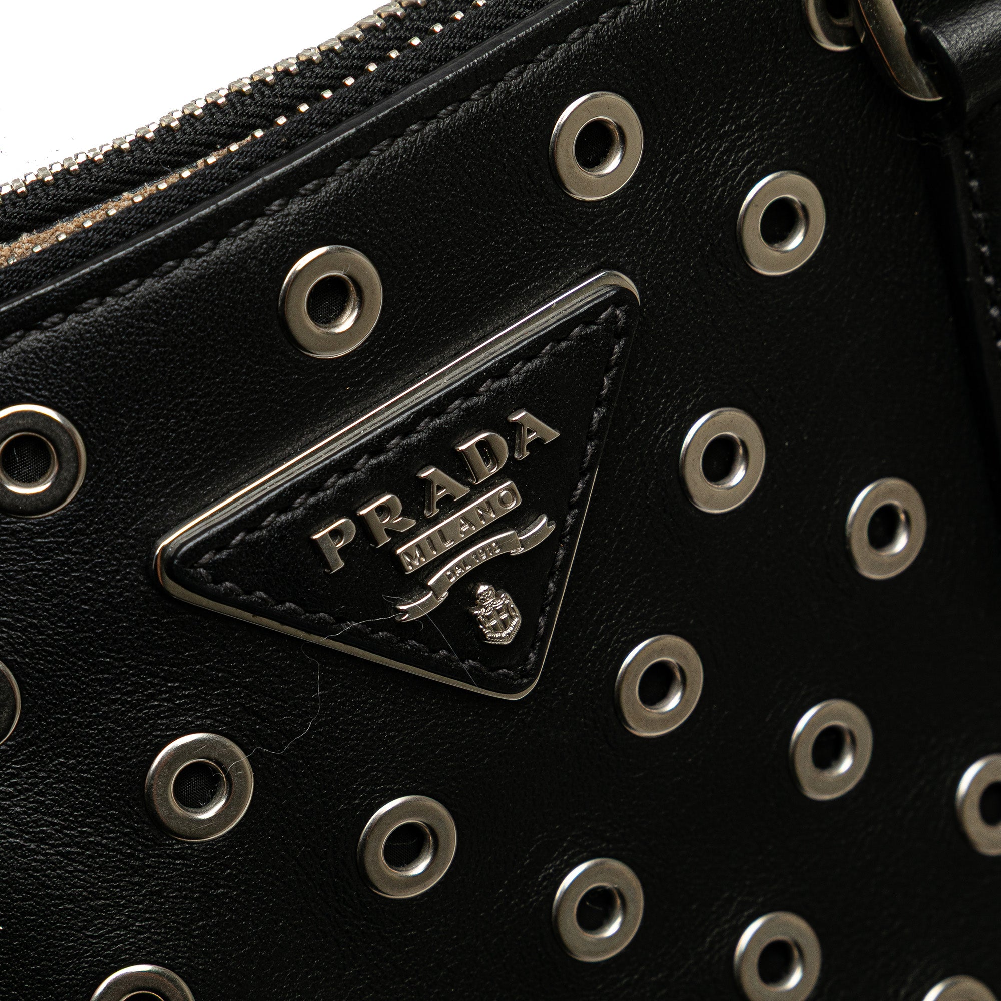 Prada Large City Calf Grommet Galleria Double Zip Tote