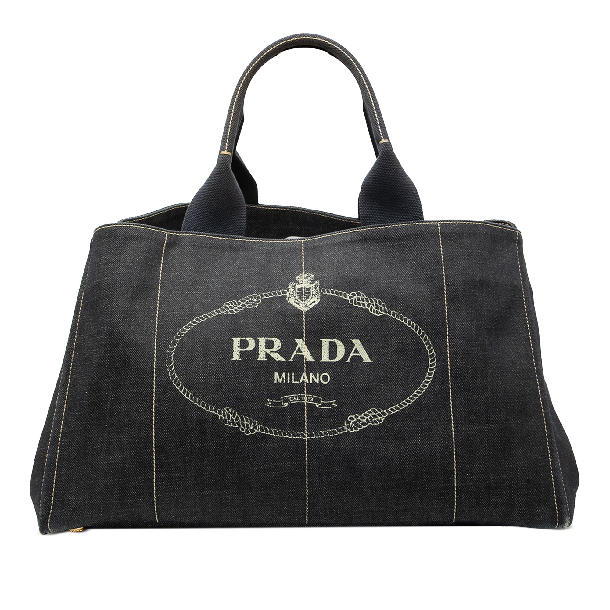 Prada Large Denim Canapa Logo Satchel Secondhand