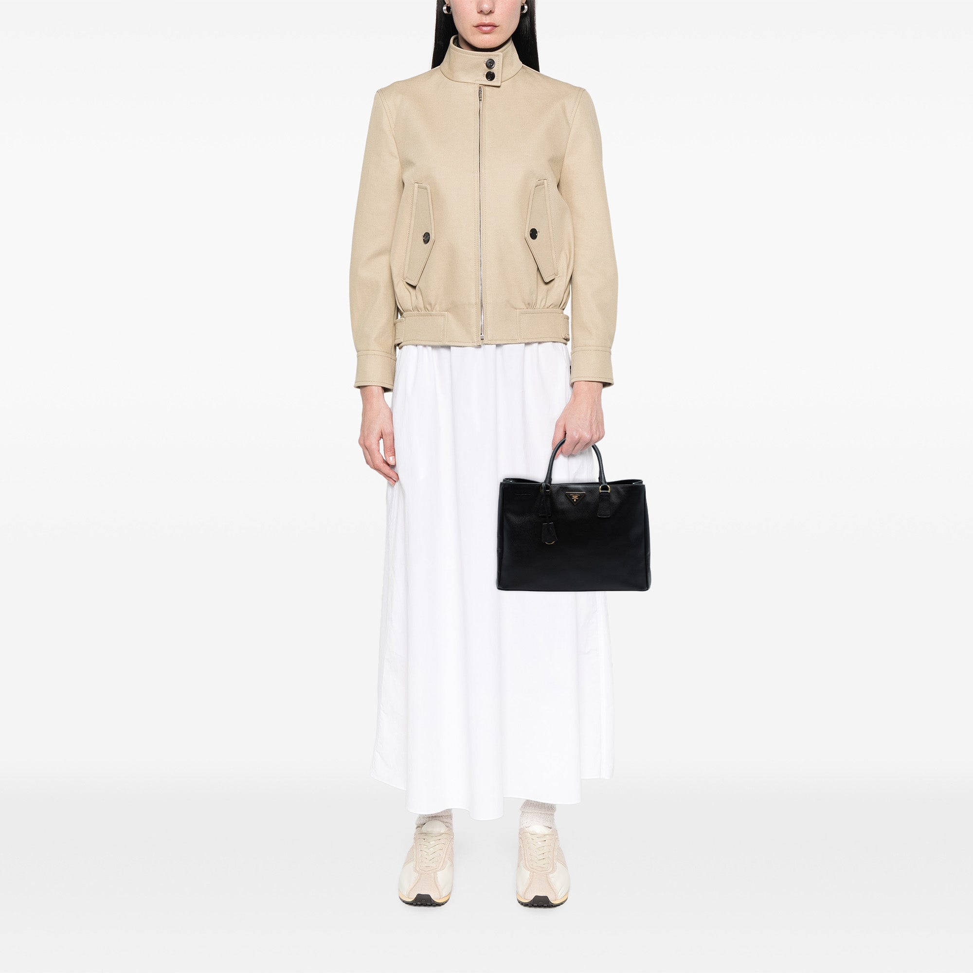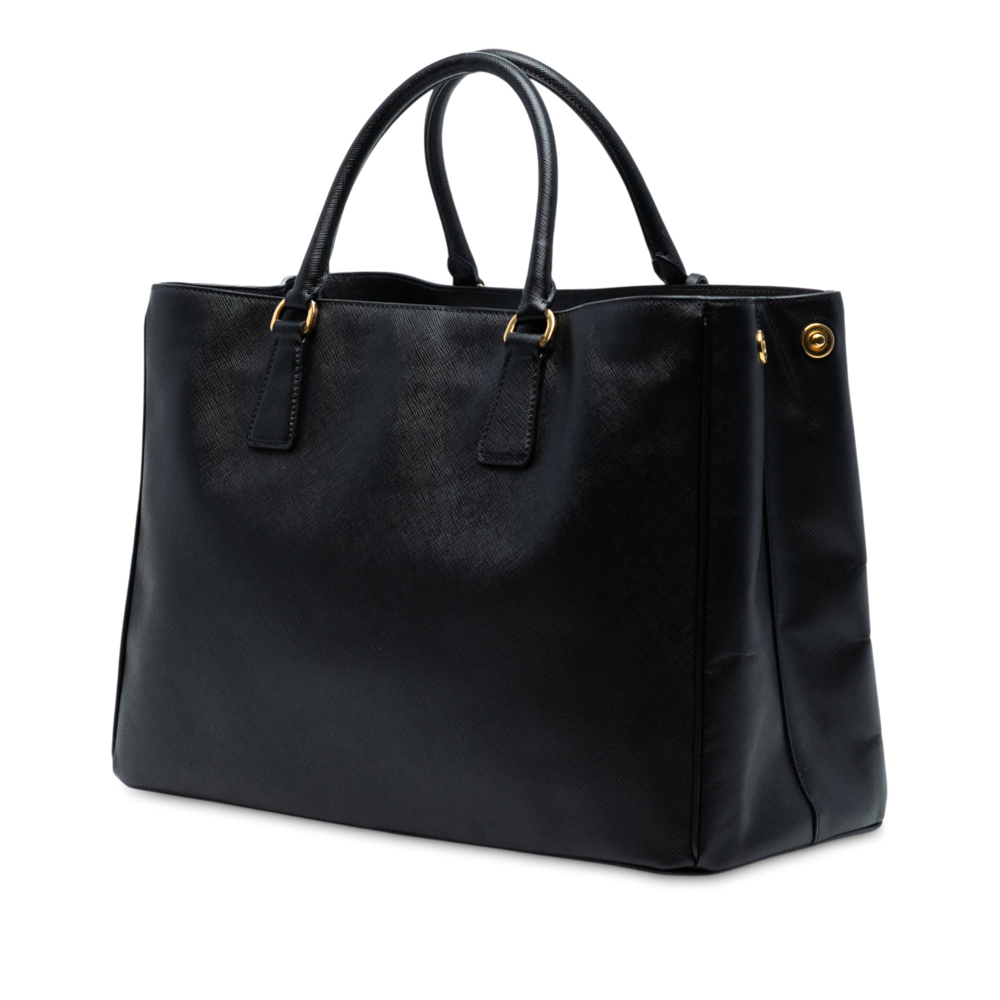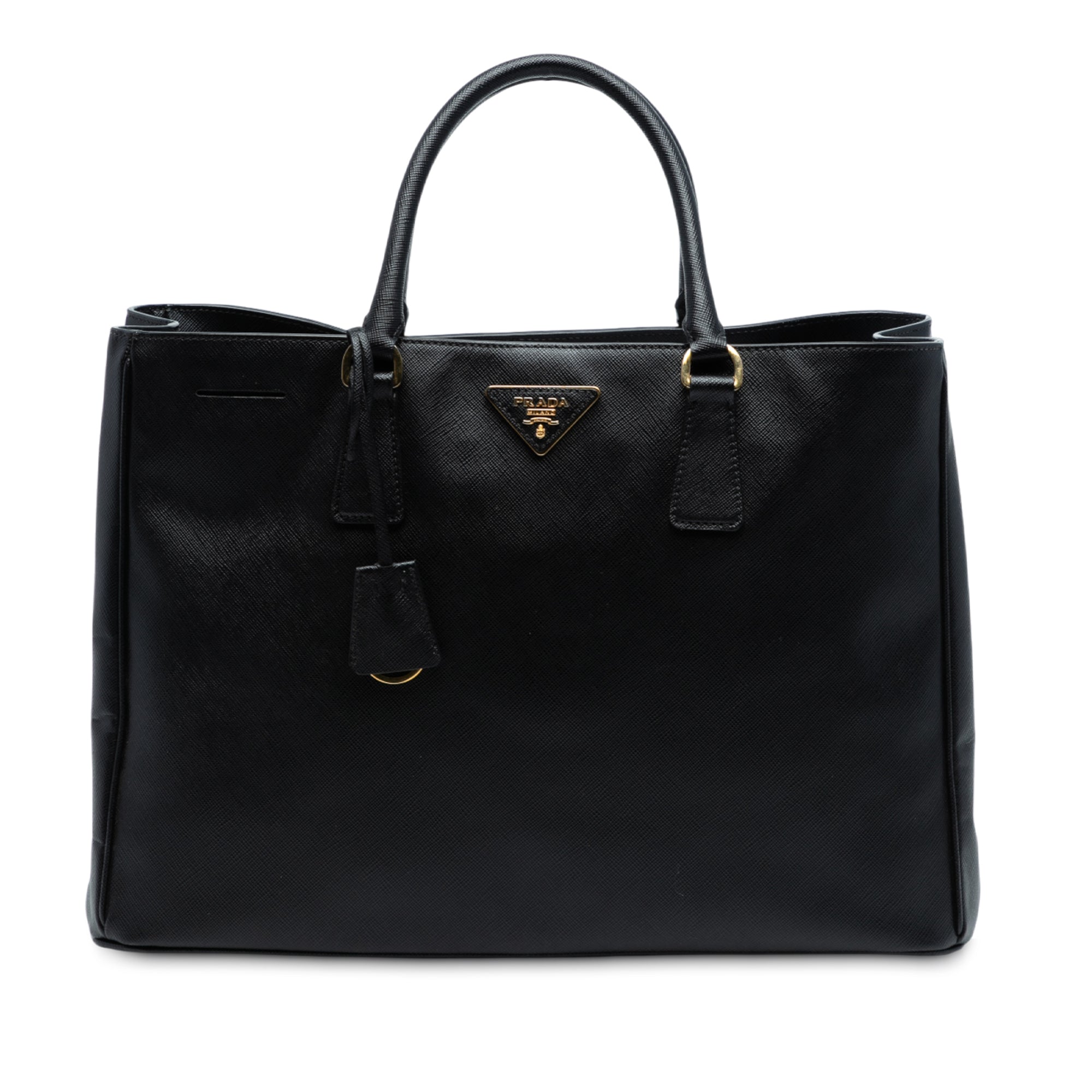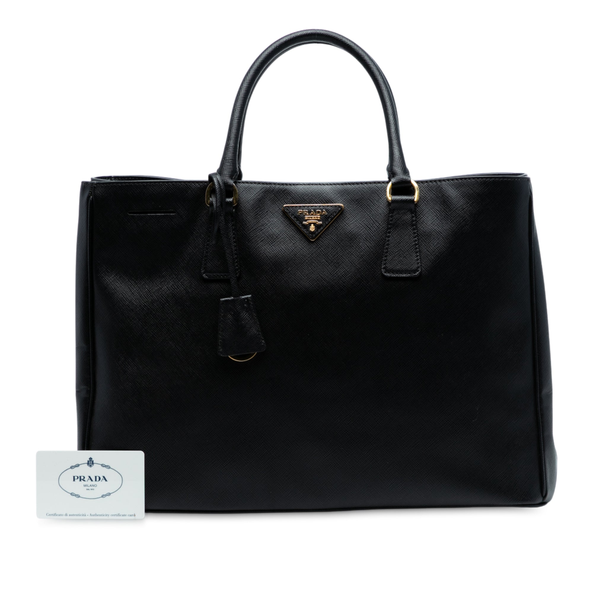 This tote bag features a saffiano leather body, rolled handles, an open top with magnetic snap closure, and interior zip and slip pockets. Inclusion: authenticity card. Retail Price: 2390.00