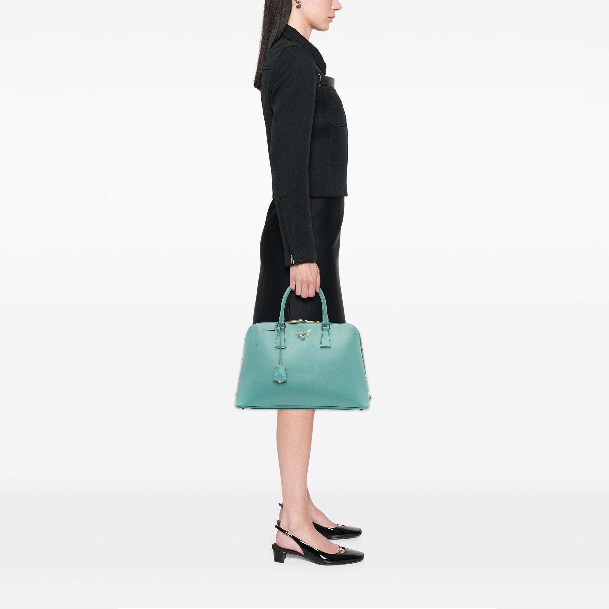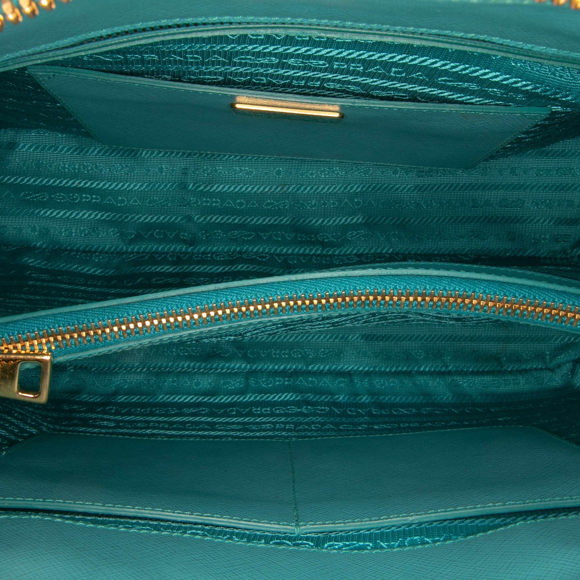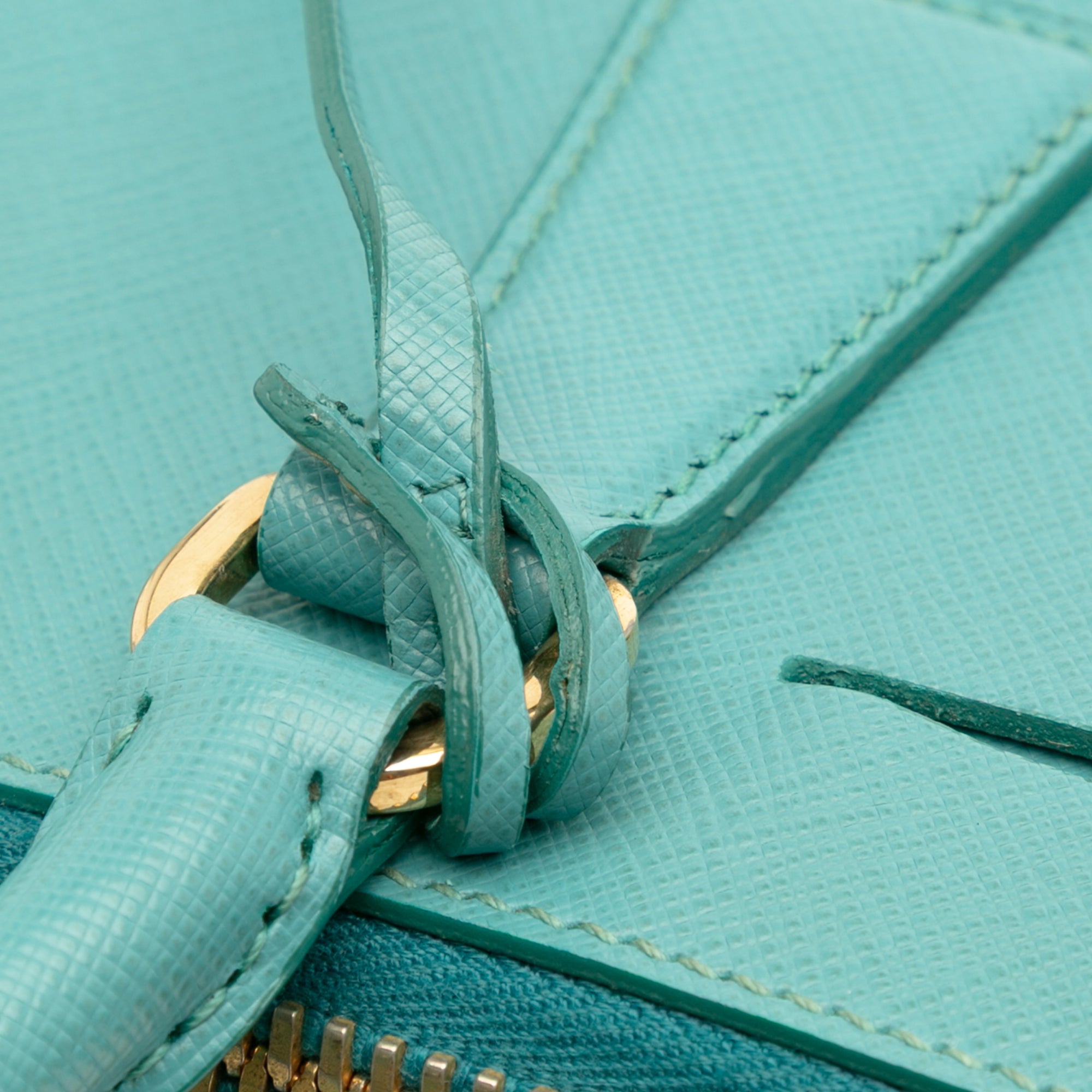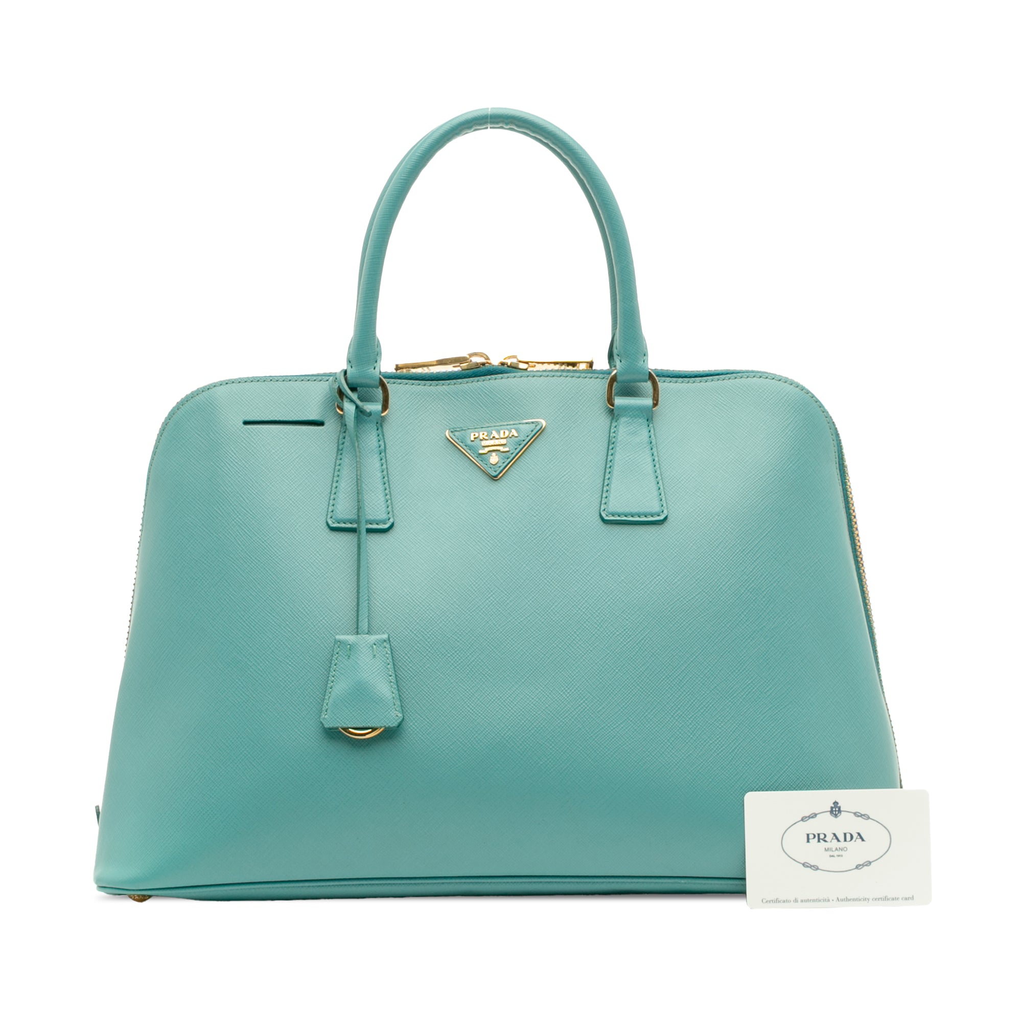 The Promenade features a saffiano leather body, rolled leather handles, a top zip closure, and interior zip and slip pockets. Inclusion: authenticity card. Retail Price: 2200.00