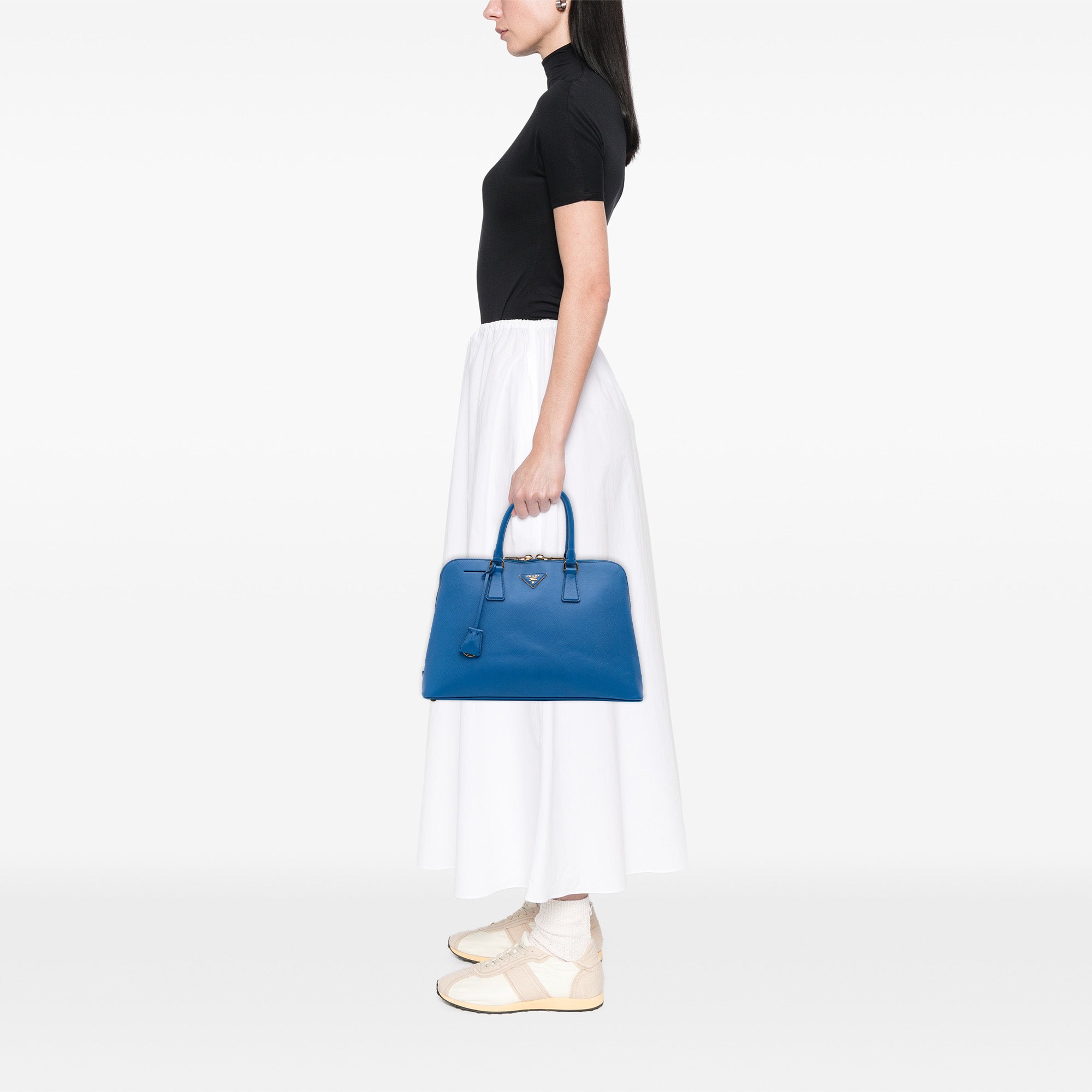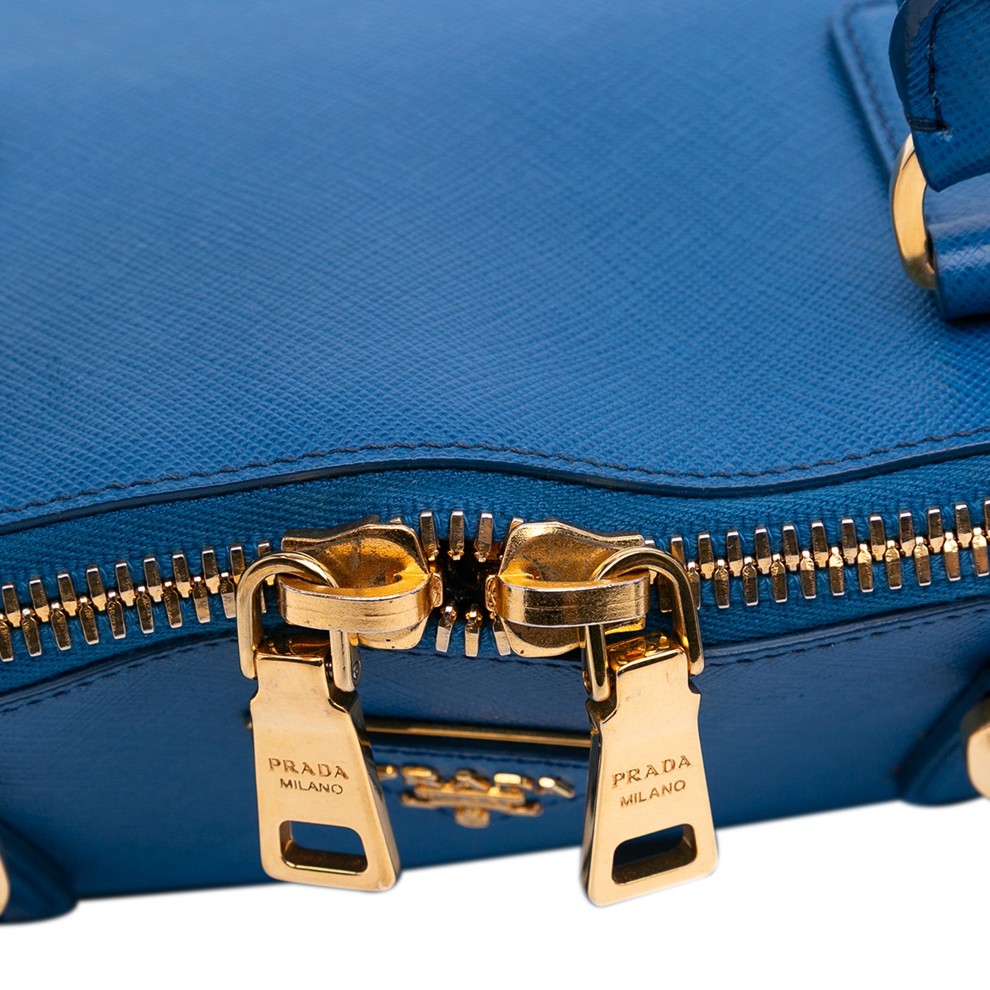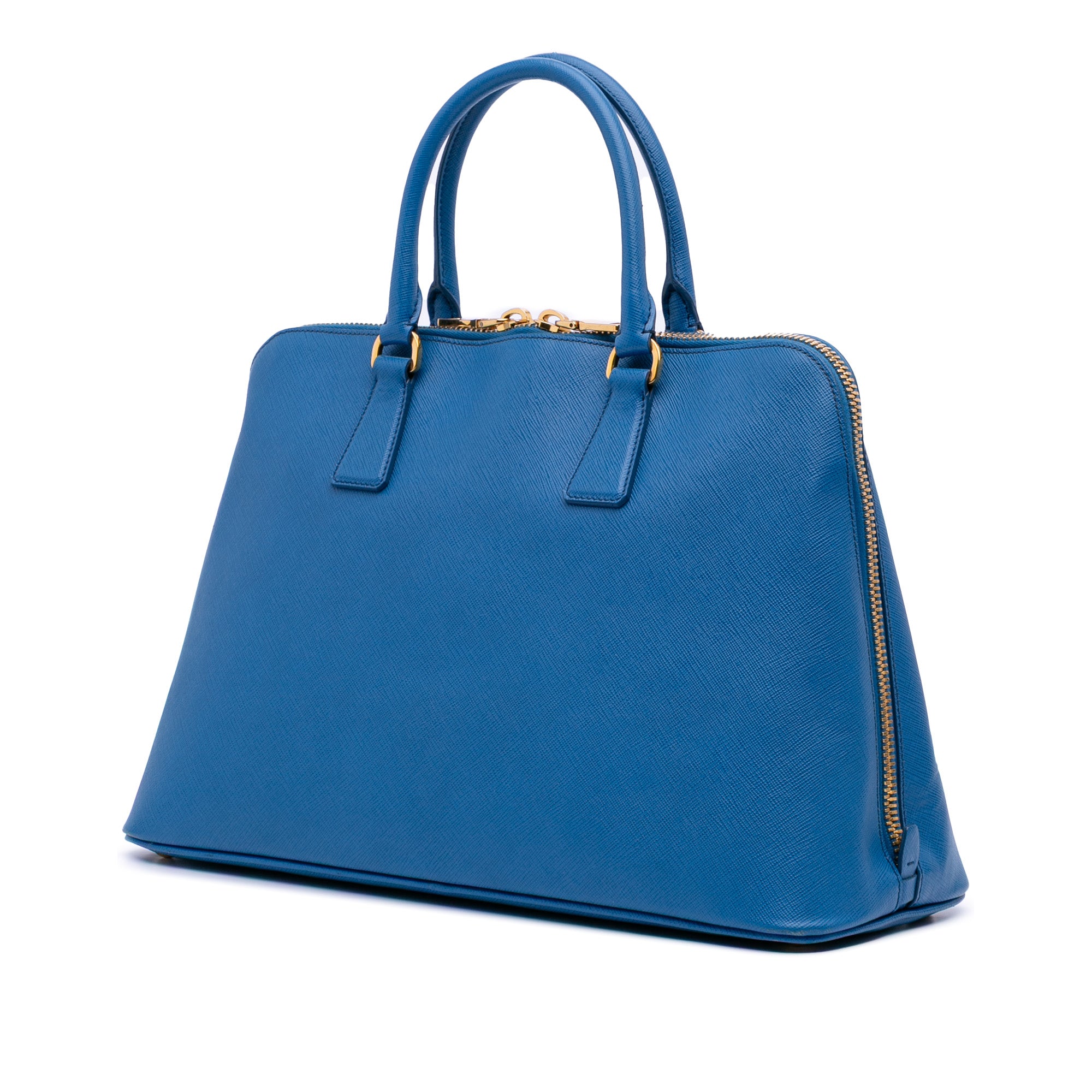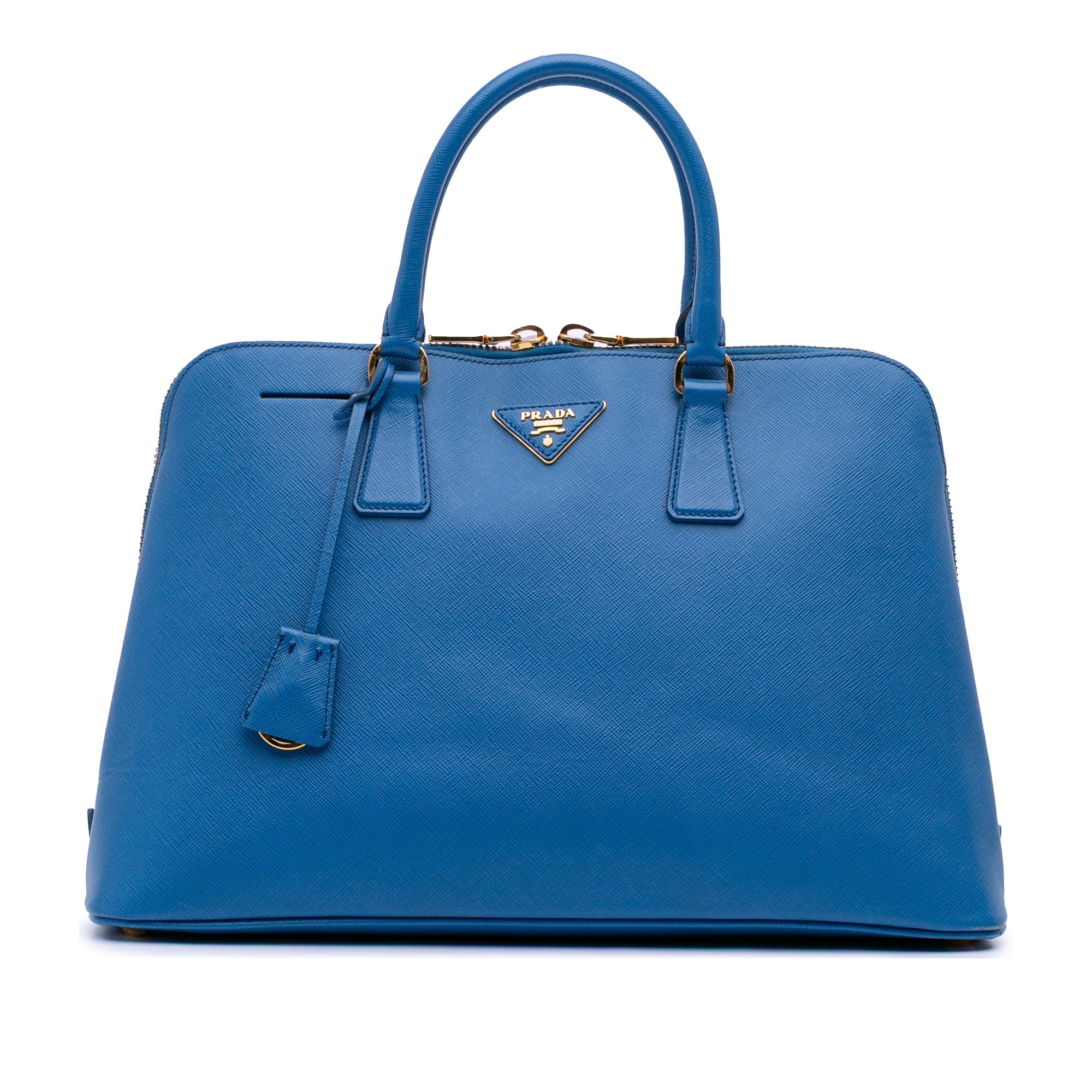 The Promenade features a saffiano leather body, rolled leather handles, a double zip around closure, an interior center zip compartment, and interior zip and slip pockets. Inclusion: Dust bag, authenticity card. Retail Price: 2200.00