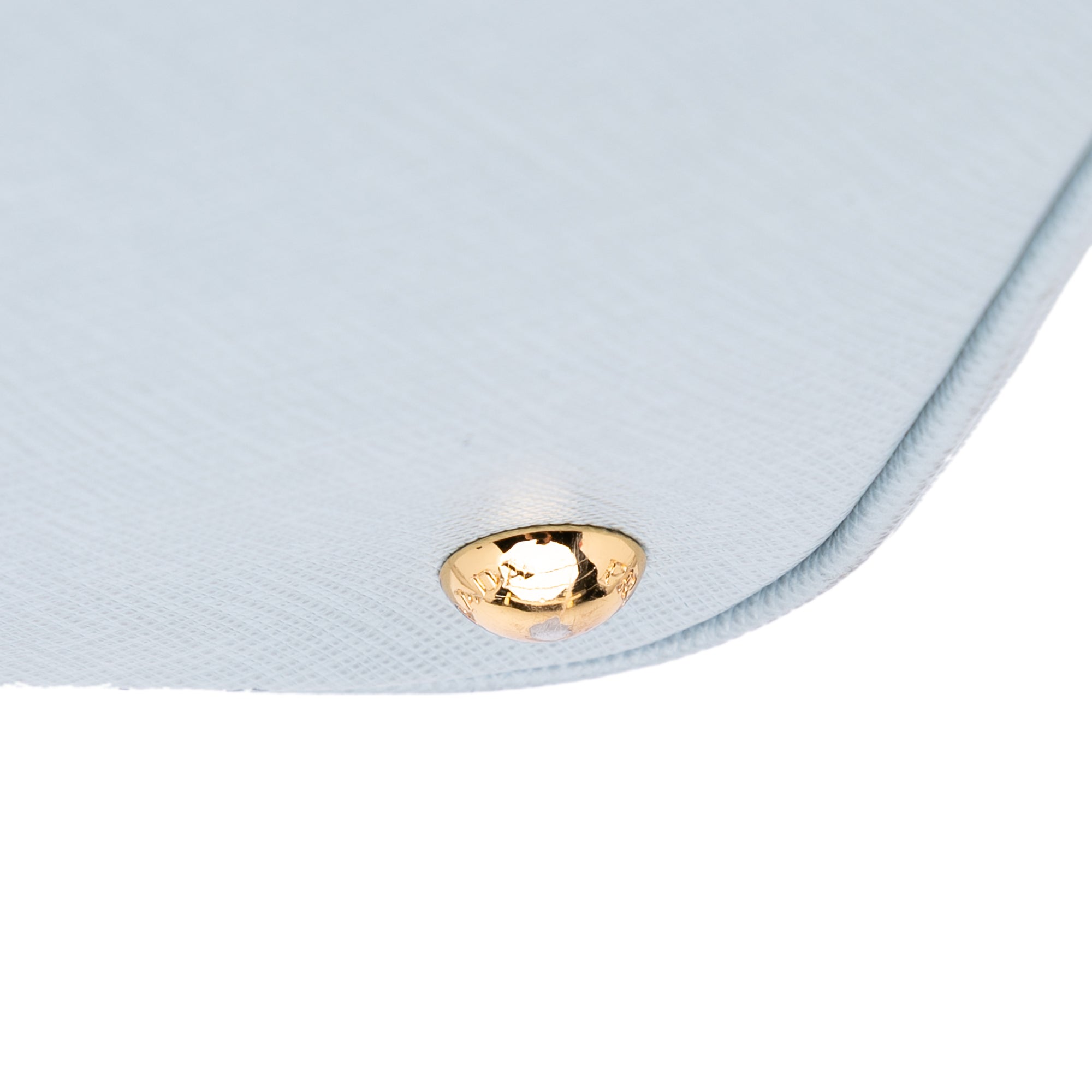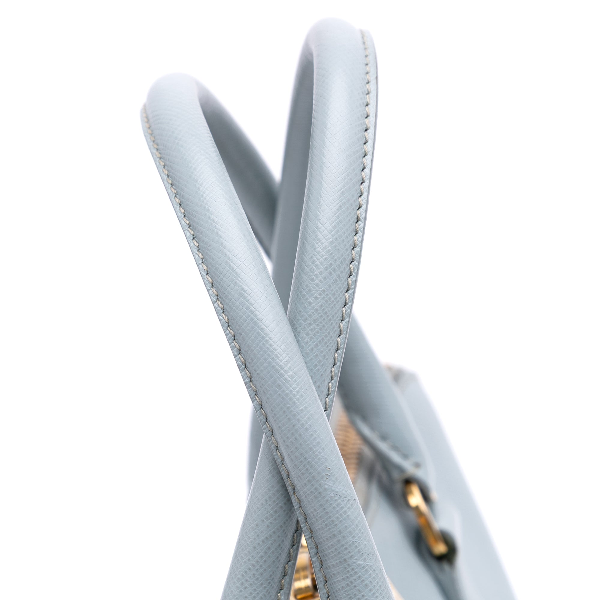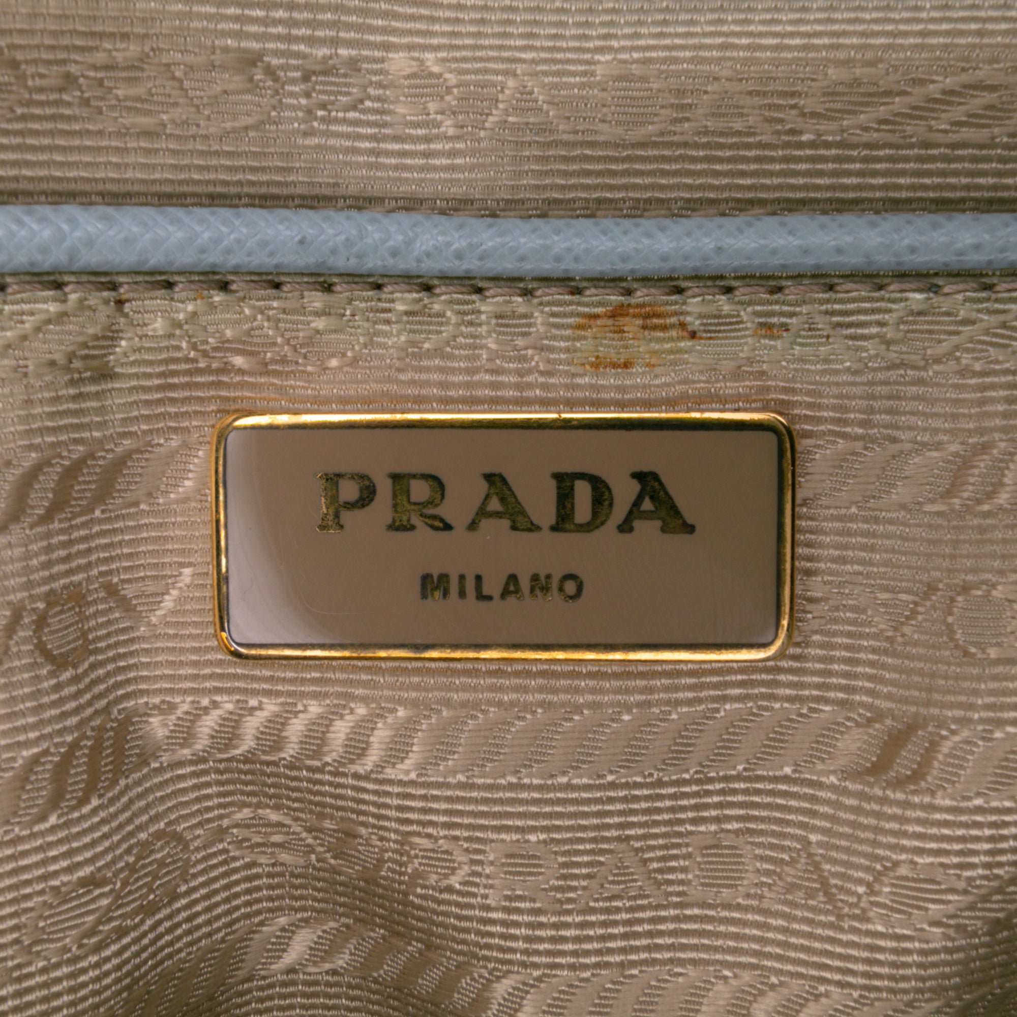 The Promenade features a saffiano leather body, rolled leather handles, a double zip around closure, an interior center zip compartment, and interior zip and slip pockets. Retail Price: 2200.00