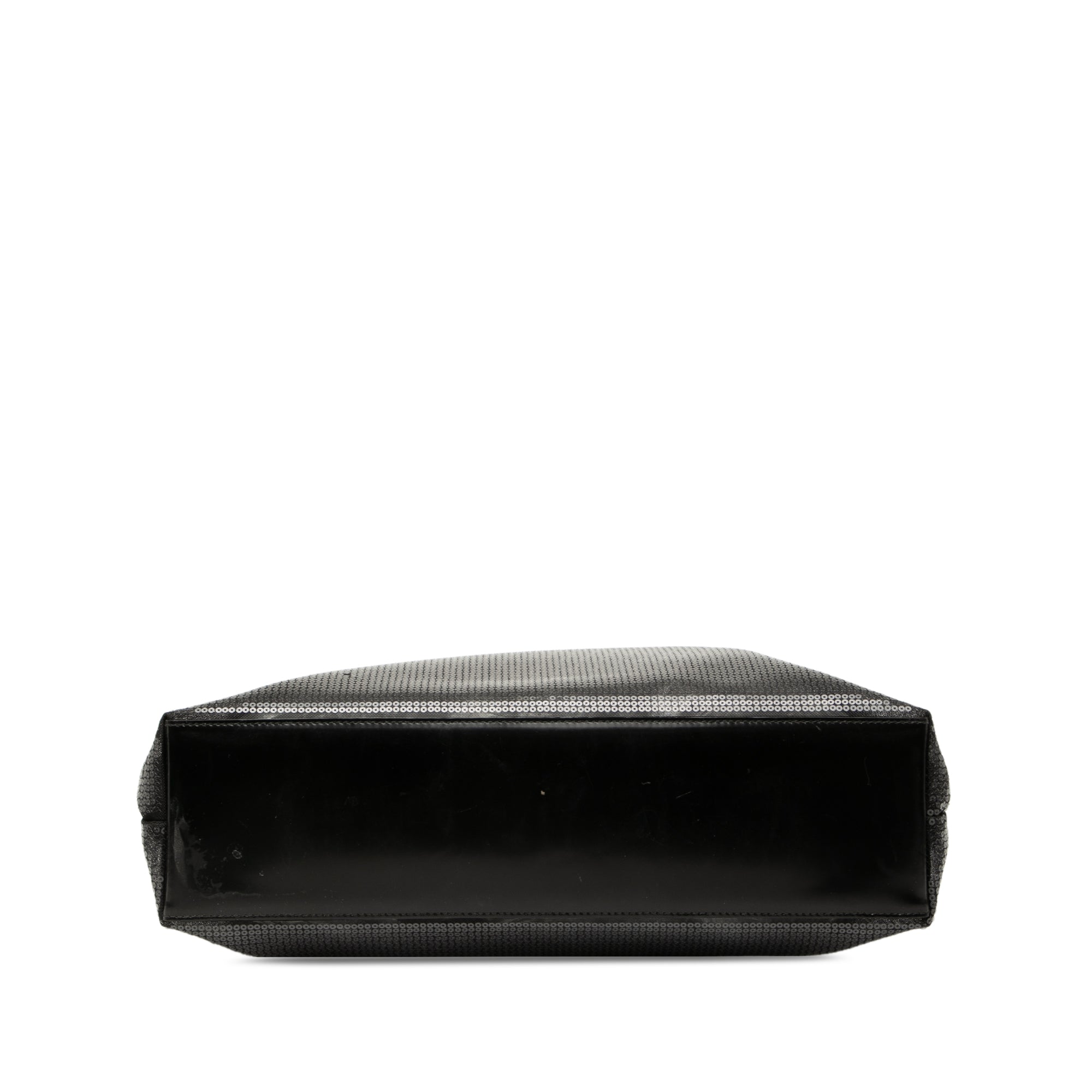 This tote bag features a sequin-embellished mesh body with leather trim, flat leather handles, an open top, and a detachable zip pouch. Inclusion: Dust bag, authenticity card. Retail Price: 1992.00