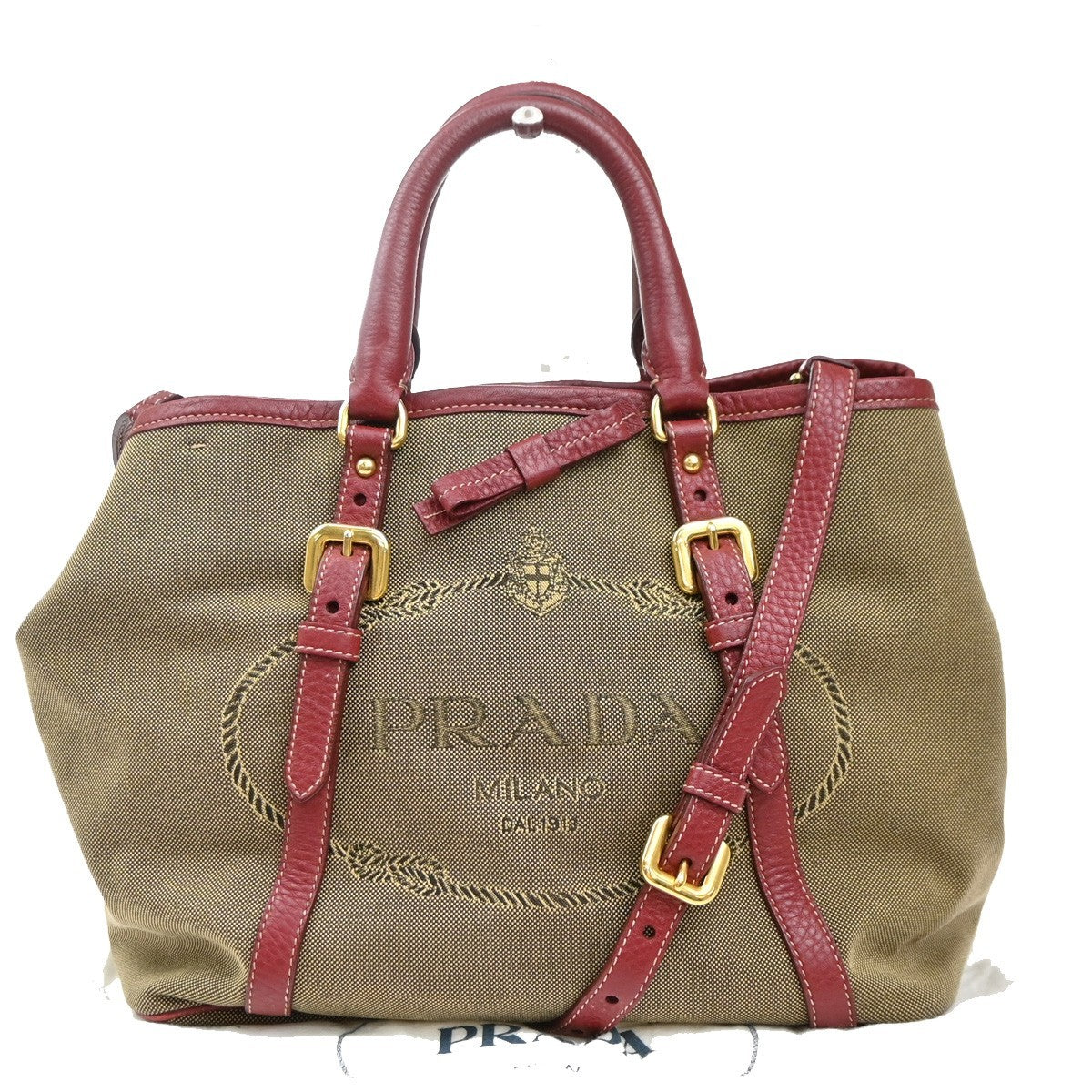 Brand : Prada Model : Logo convertible tote Style : Canvas with leather Dimensions (W x H x D) : 28cm x 23cm x 16cm Serial number : 194a Inclusions : Shoulder strap,dust bag