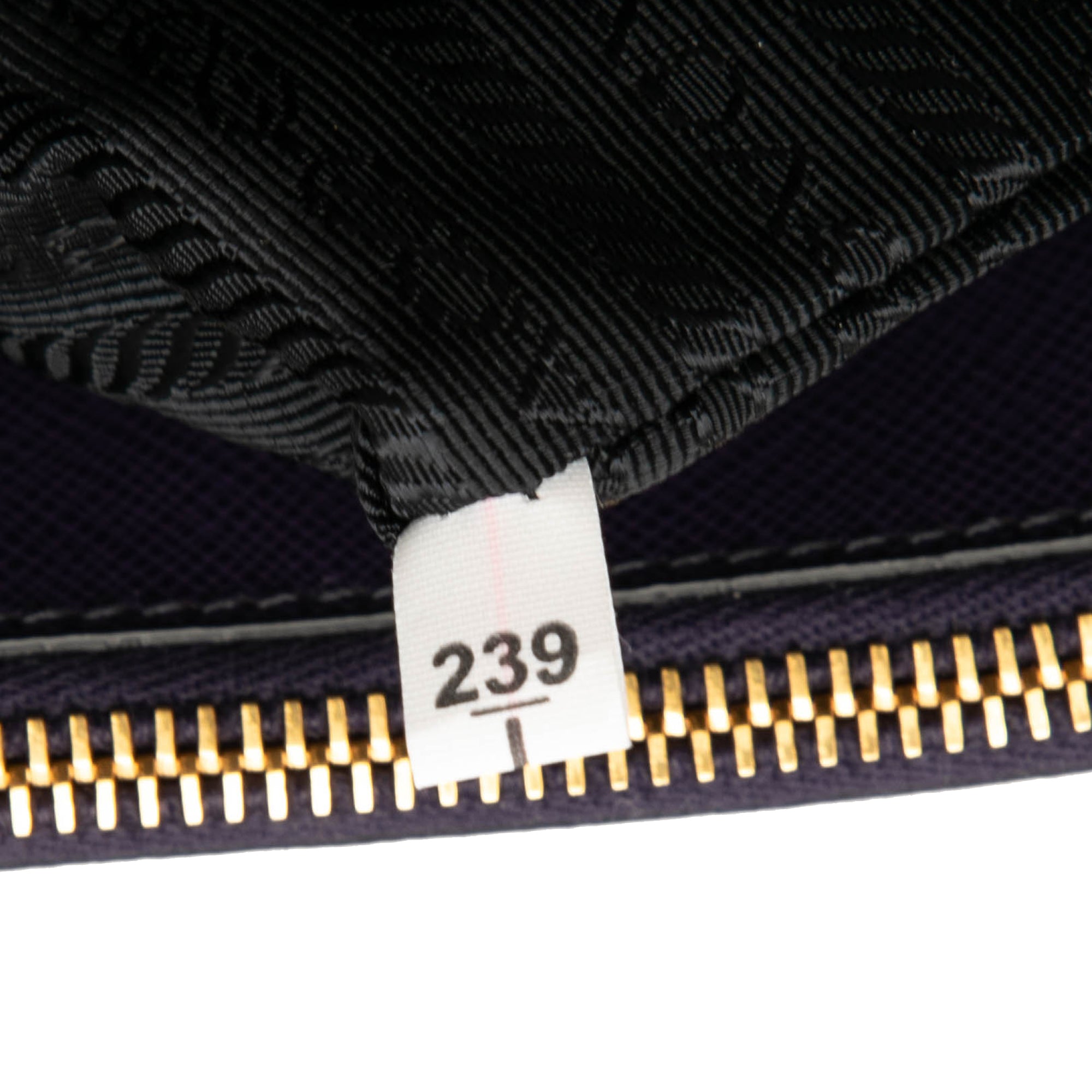 The Saffiano Lux Galleria features a leather body, a clochette, rolled leather top handles, a detachable and adjustable flat leather shoulder strap, an open top, top zip compartments, and interior zip and slip pockets. Inclusion: Dust bag. Retail Price: 4600.00