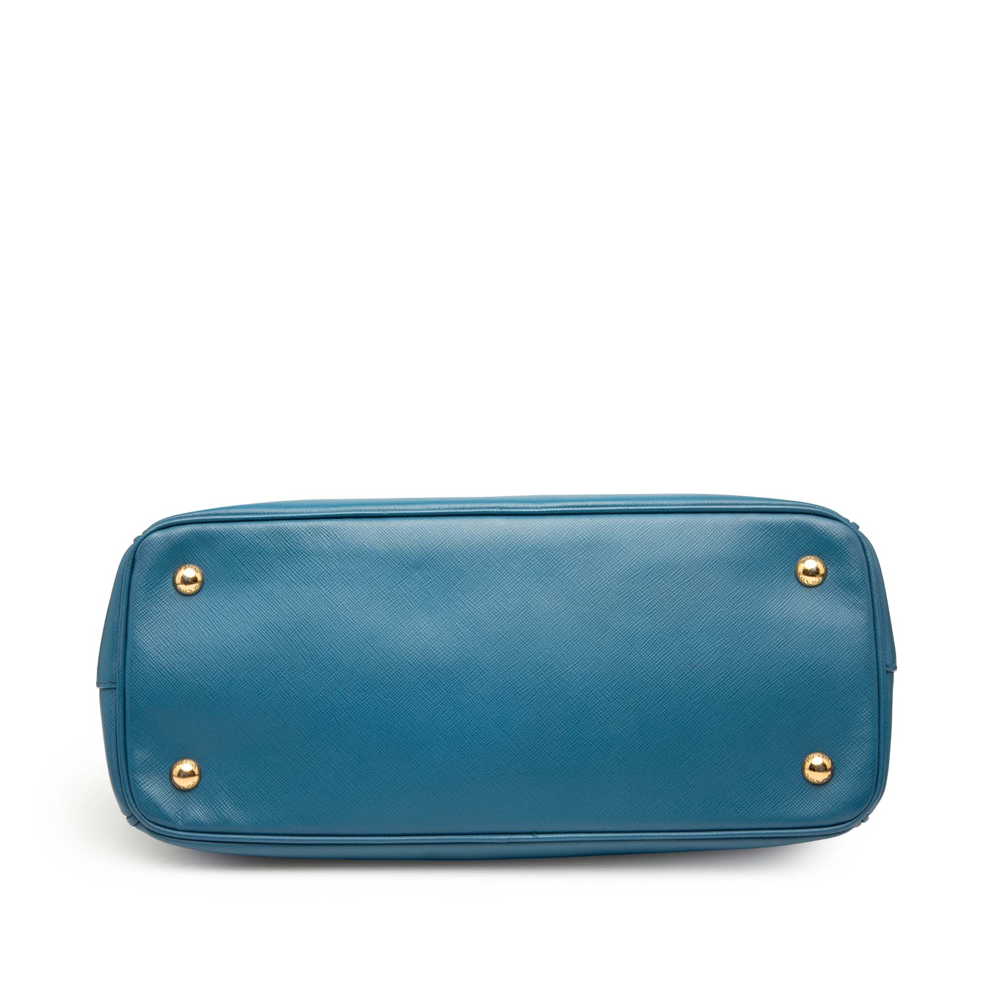 The Galleria satchel features a saffiano leather body, rolled leather handles, a detachable flat leather shoulder strap, an open top with snap closure, an interior zip compartment, and interior zip and slip pockets. Retail Price: 3762.00