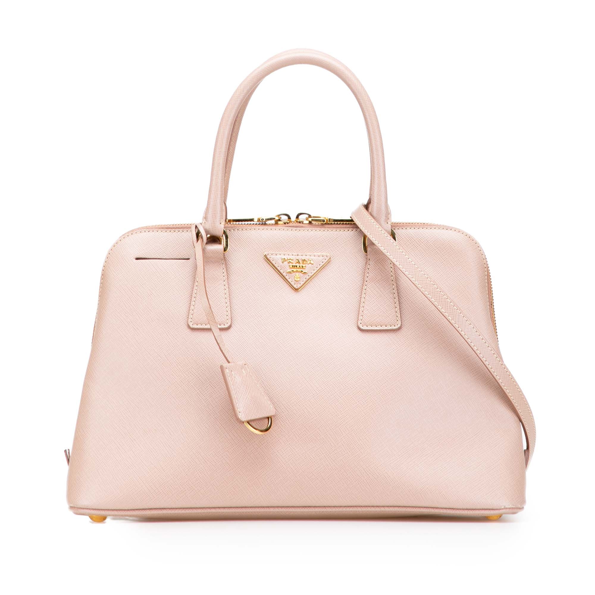 The Promenade satchel features a saffiano lux leather body, rolled leather handles, a detachable flat leather strap, a top zip around closure, and interior zip and slip pockets. Inclusion: authenticity card. Retail Price: 2200.00