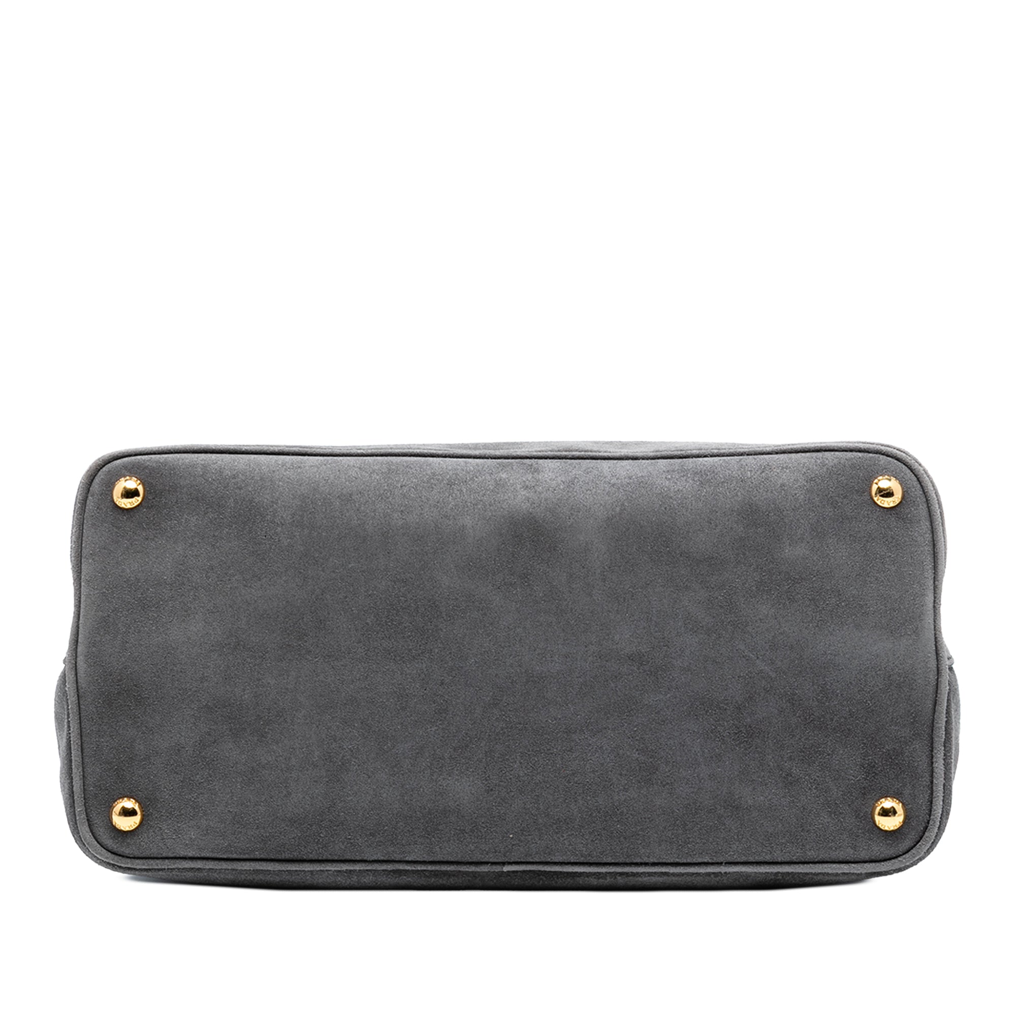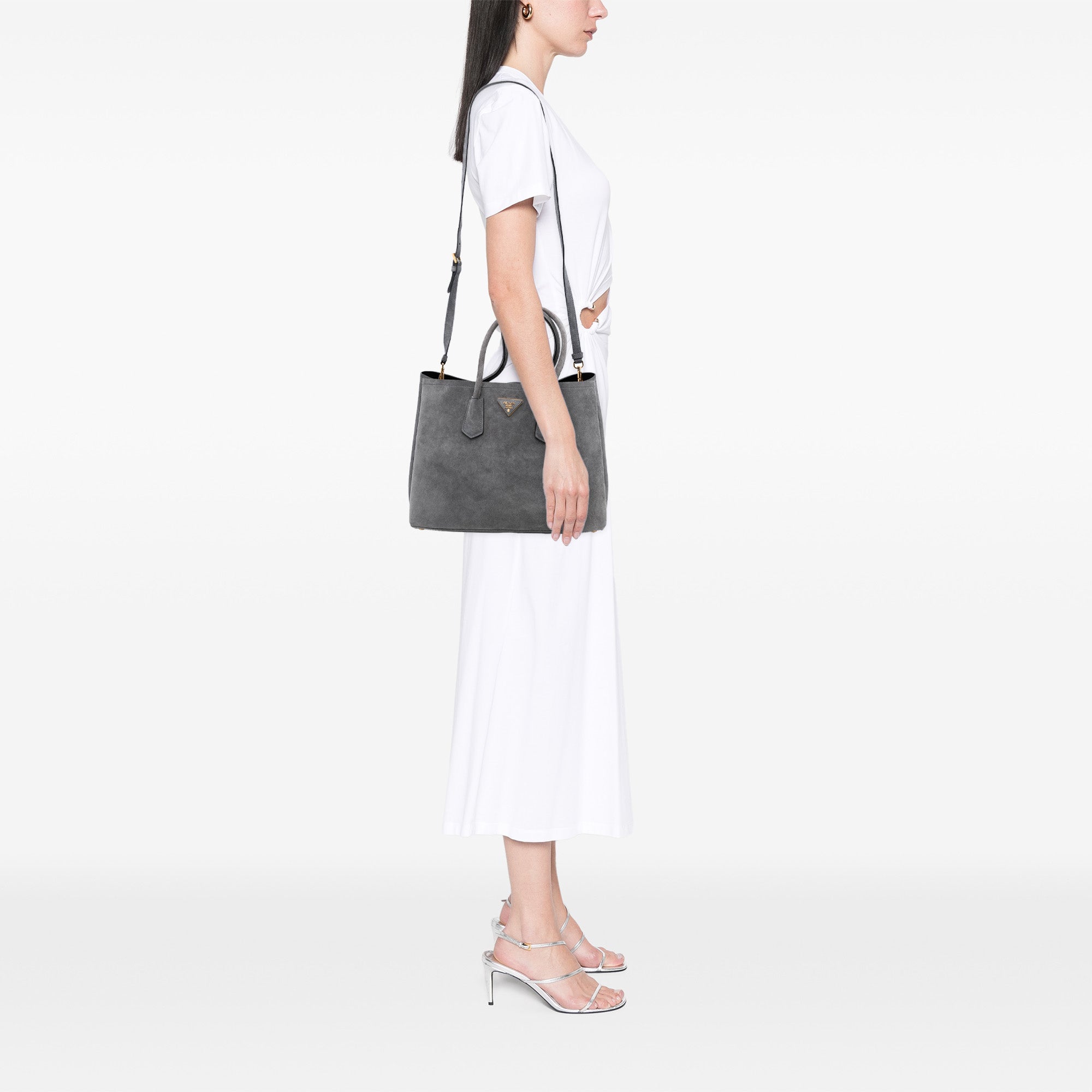 This satchel features a suede leather body, rolled leather handles, a detachable flat leather shoulder strap, an open top, and an interior flap pocket. Retail Price: 1995.00