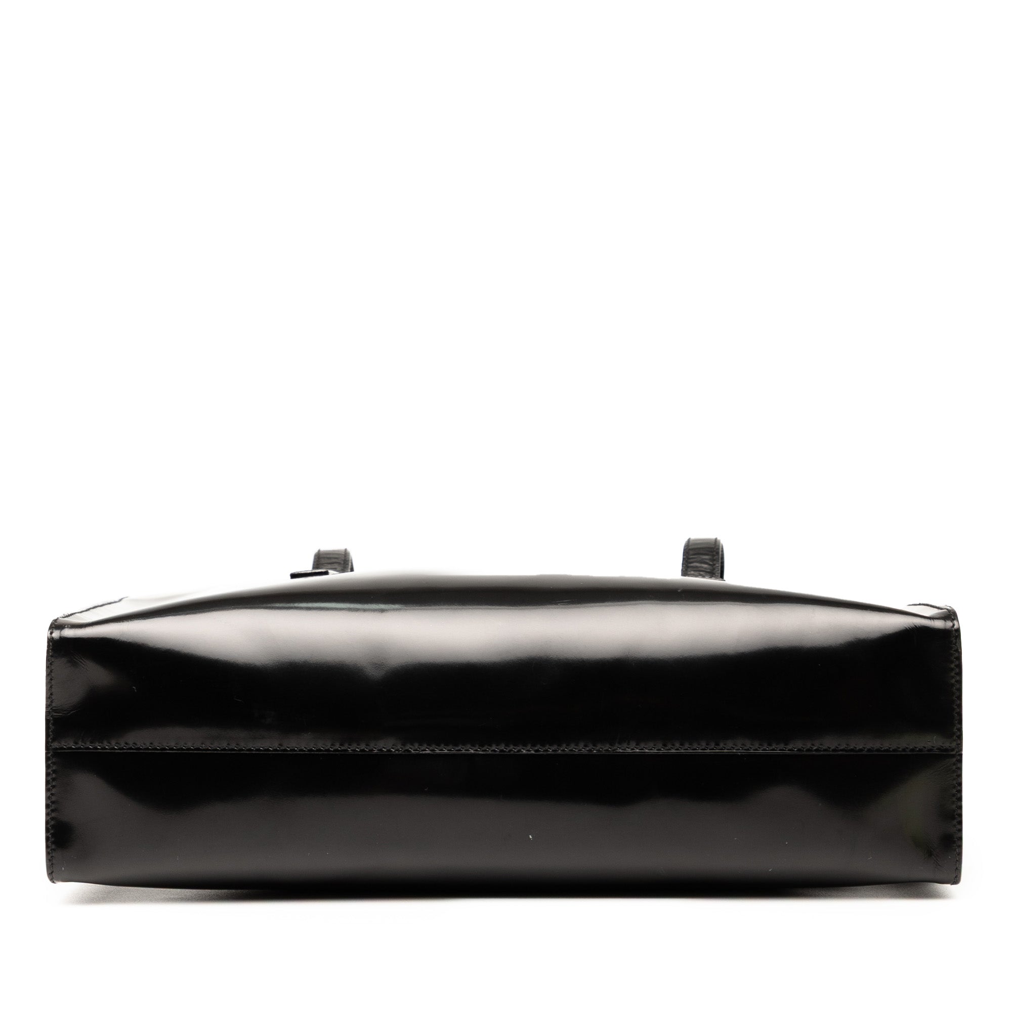 This tote features a leather body, flat straps, a top zip closure, exterior slip compartments, and interior zip and slip pockets. Retail Price: 3700.00