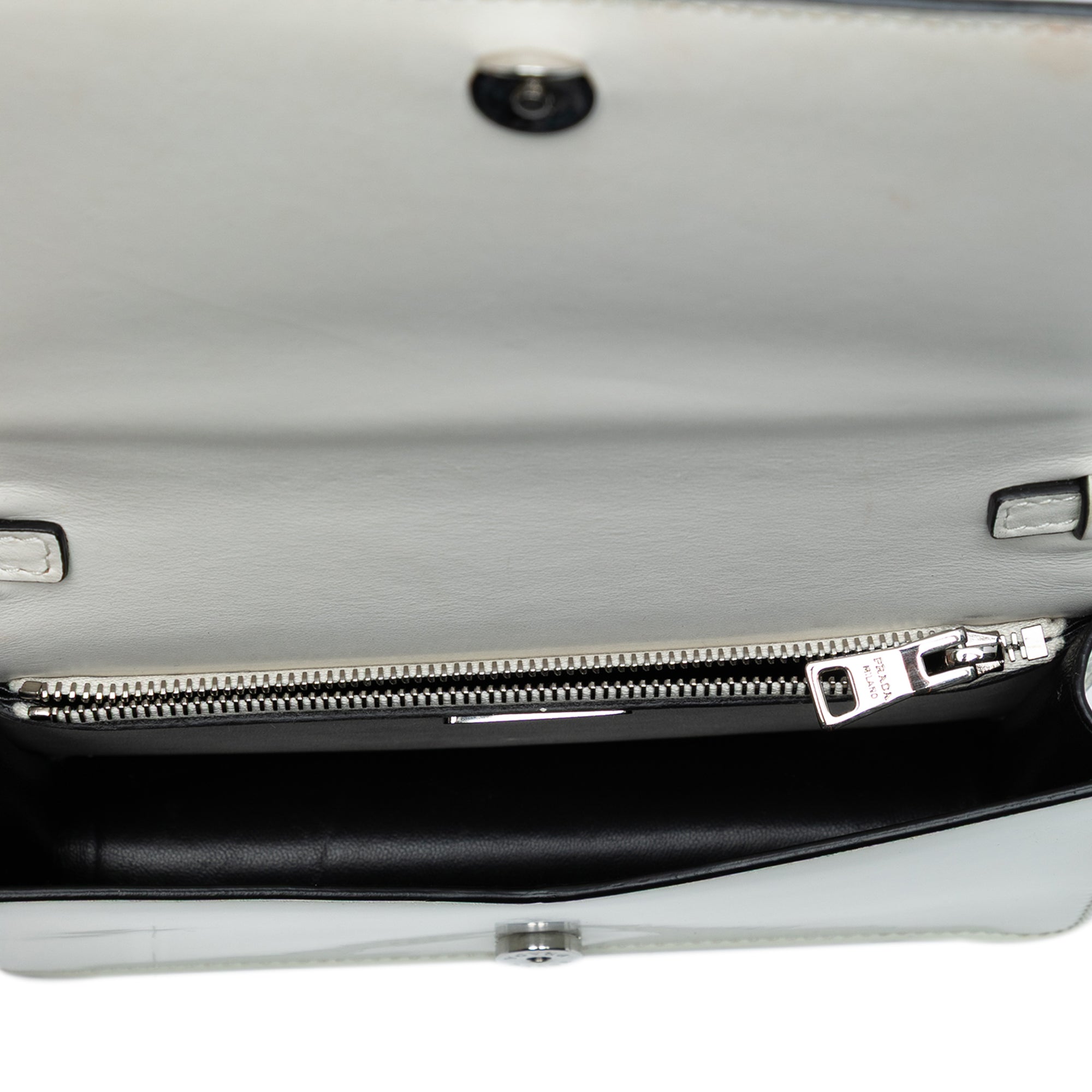 This crossbody features a leather body, a silver-tone chain shoulder strap, a front flap with magnetic snap closure, and an interior zip compartment. Retail Price: 1445.00