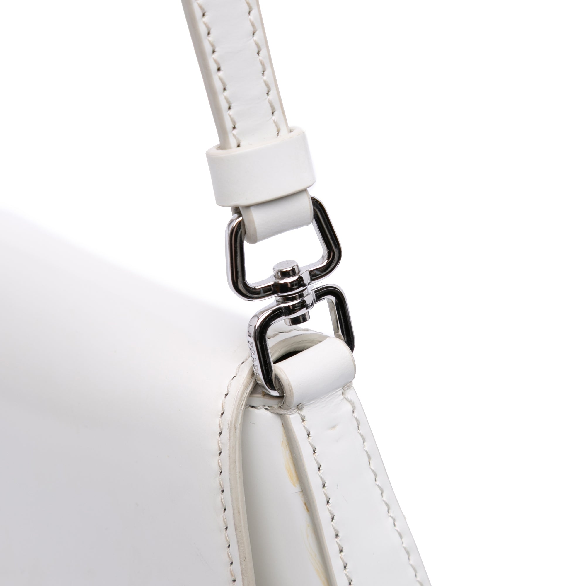 This crossbody bag features a leather body, an adjustable flat leather strap, a front flap with magnetic closure, and interior slip pockets. Retail Price: 3250.00