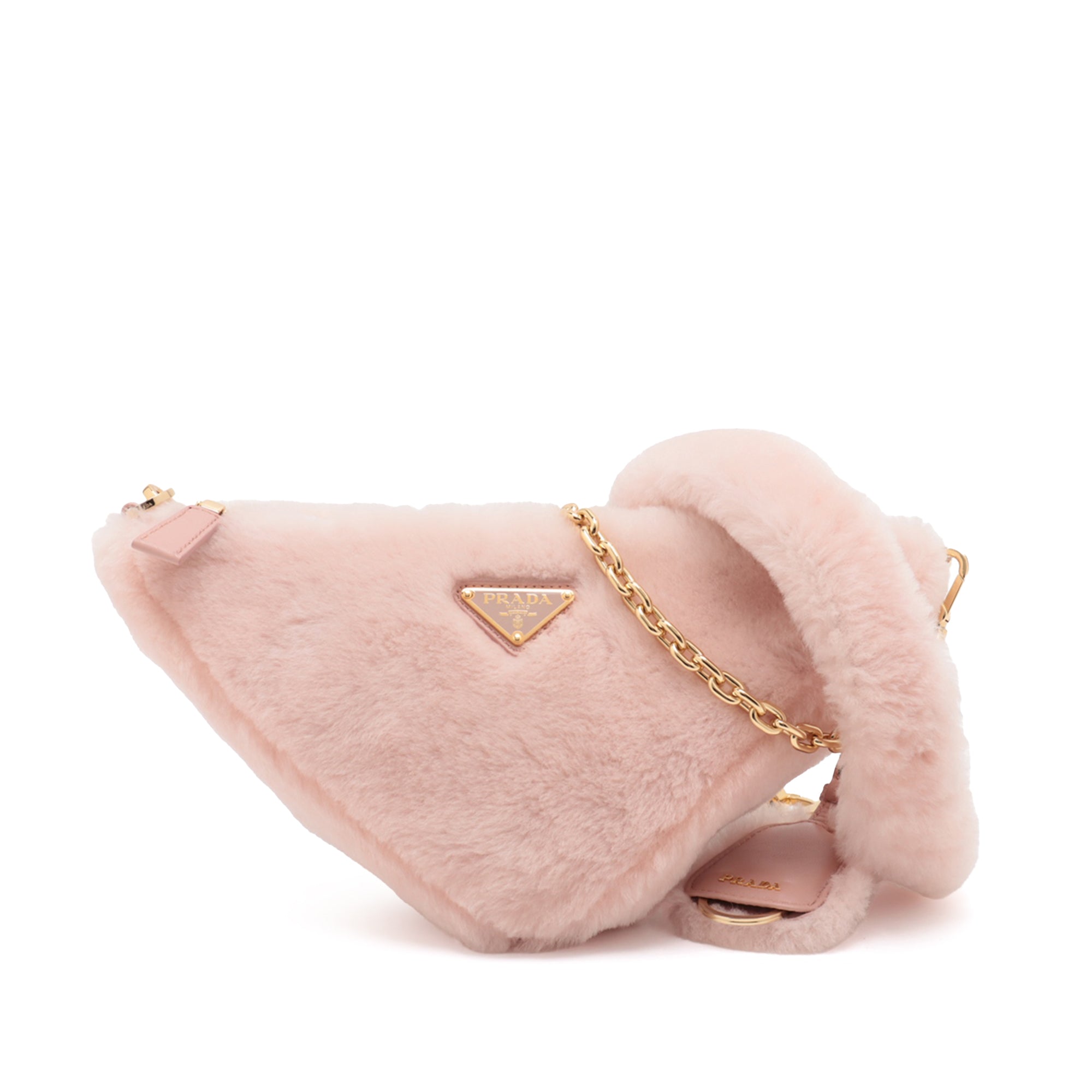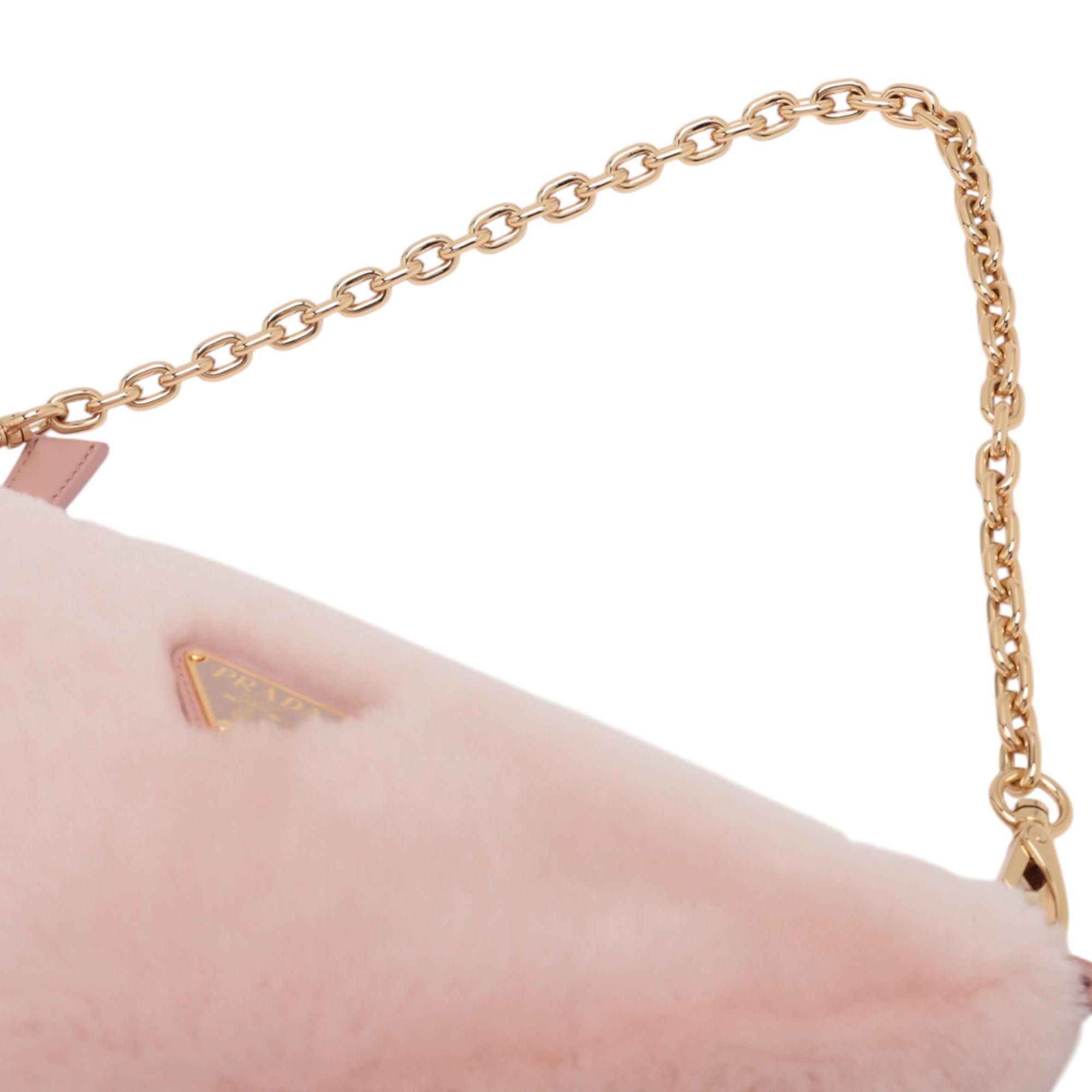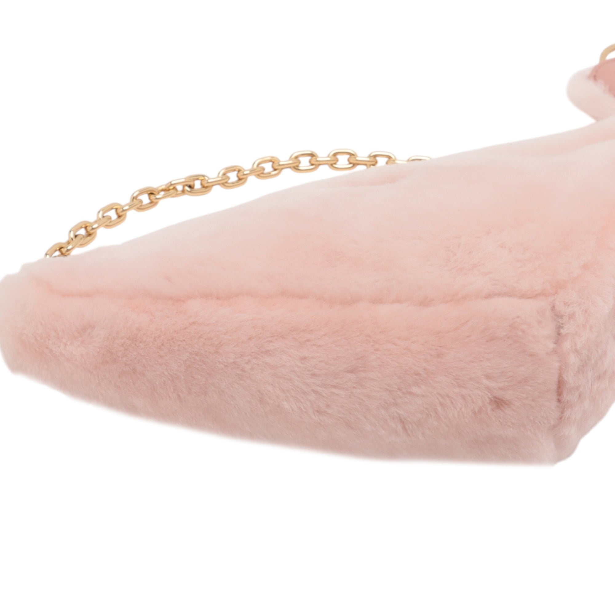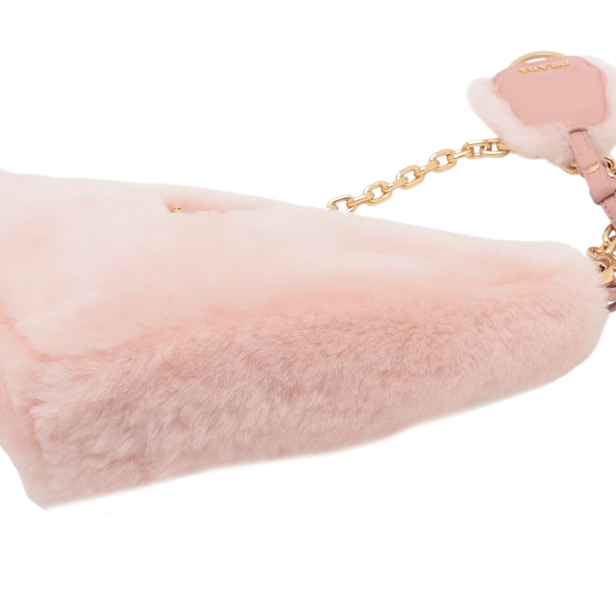 This satchel features pink shearling, a detachable shearling handle, a detachable strap, and a top zip closure. Inclusion: Dust bag, box. Retail Price: 4400.00