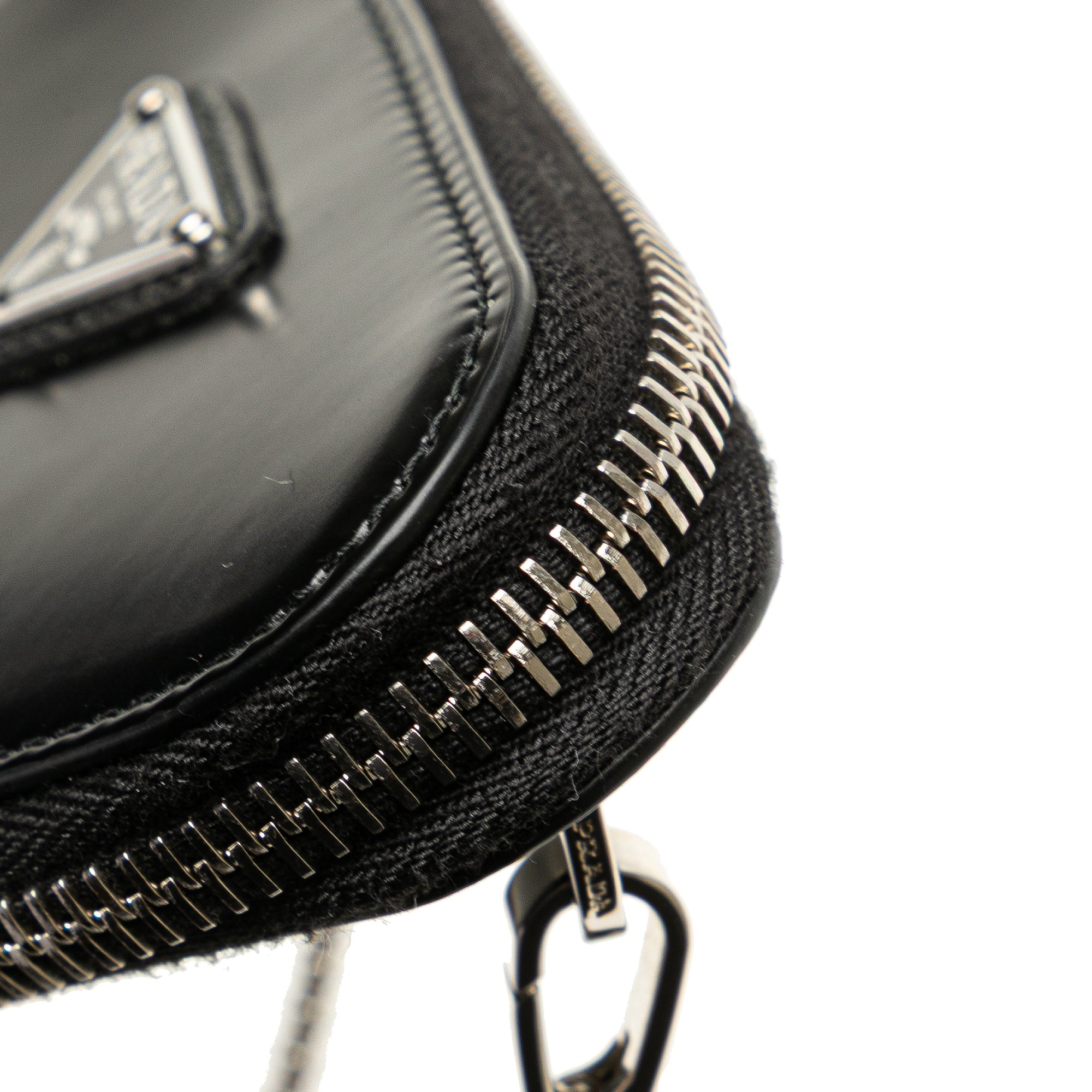 Prada Mini Spazzolato Leather Triangle Chain Crossbody