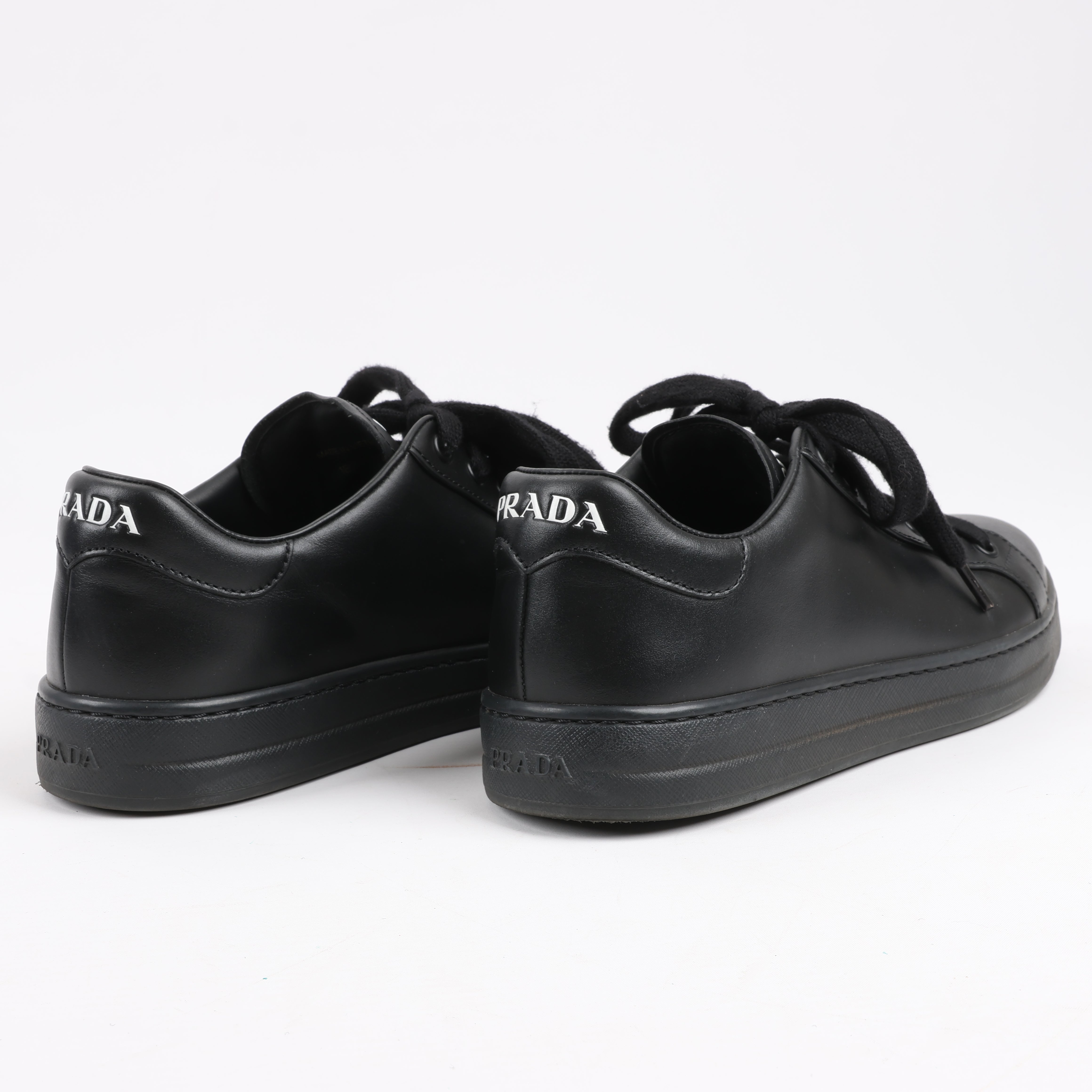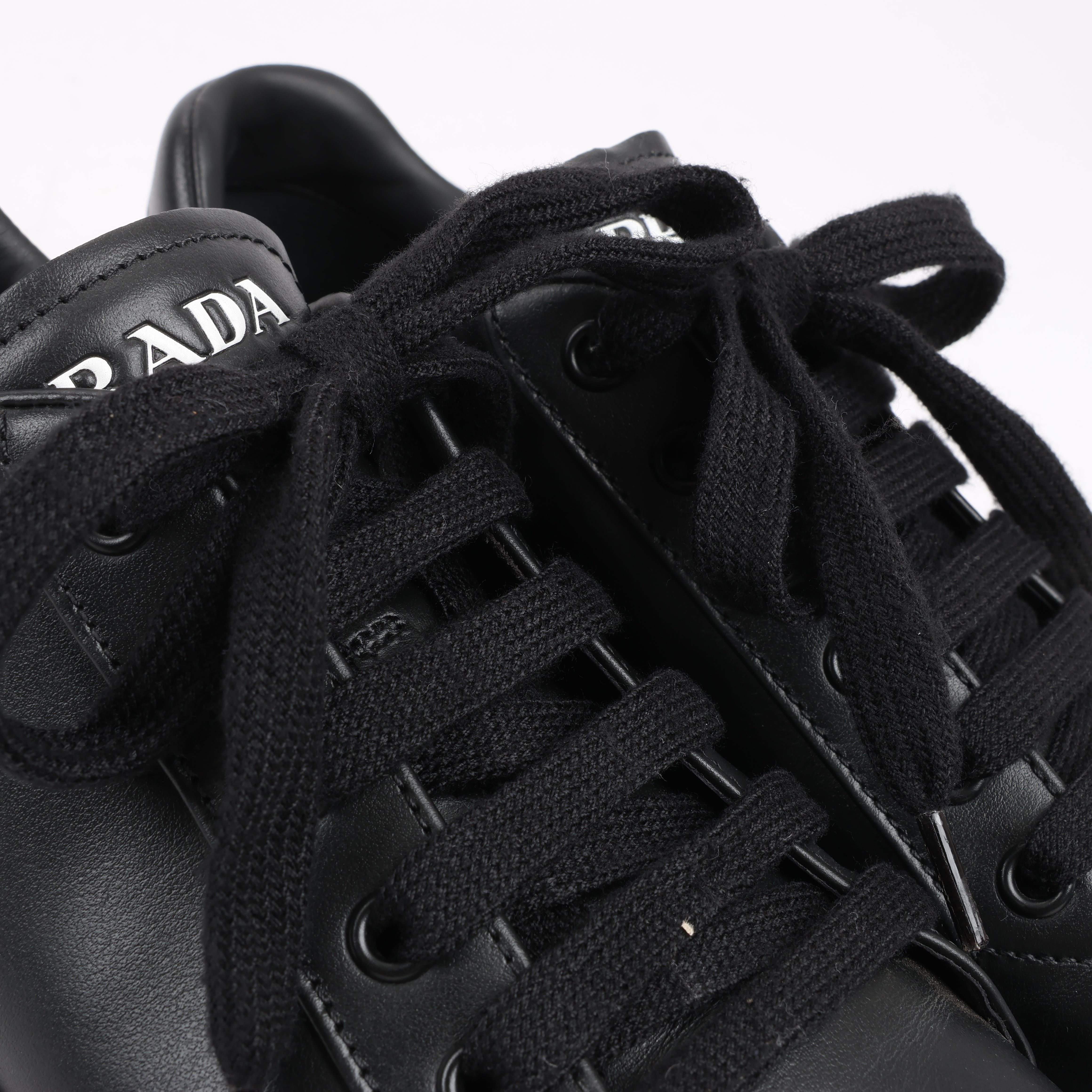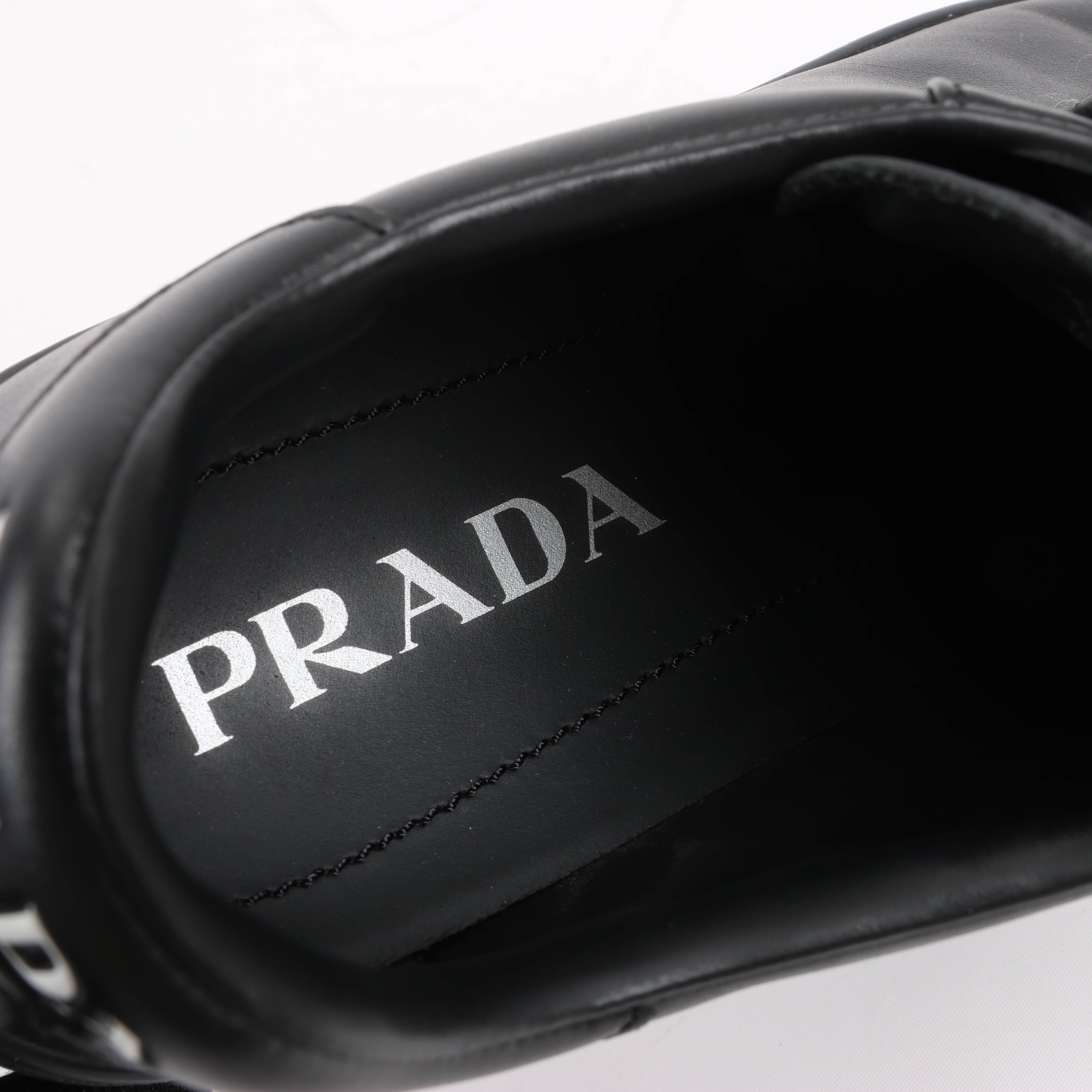 Prada PRADA Logo Leather Sneakers in Black × White 1E282N, Size 37.5 EU