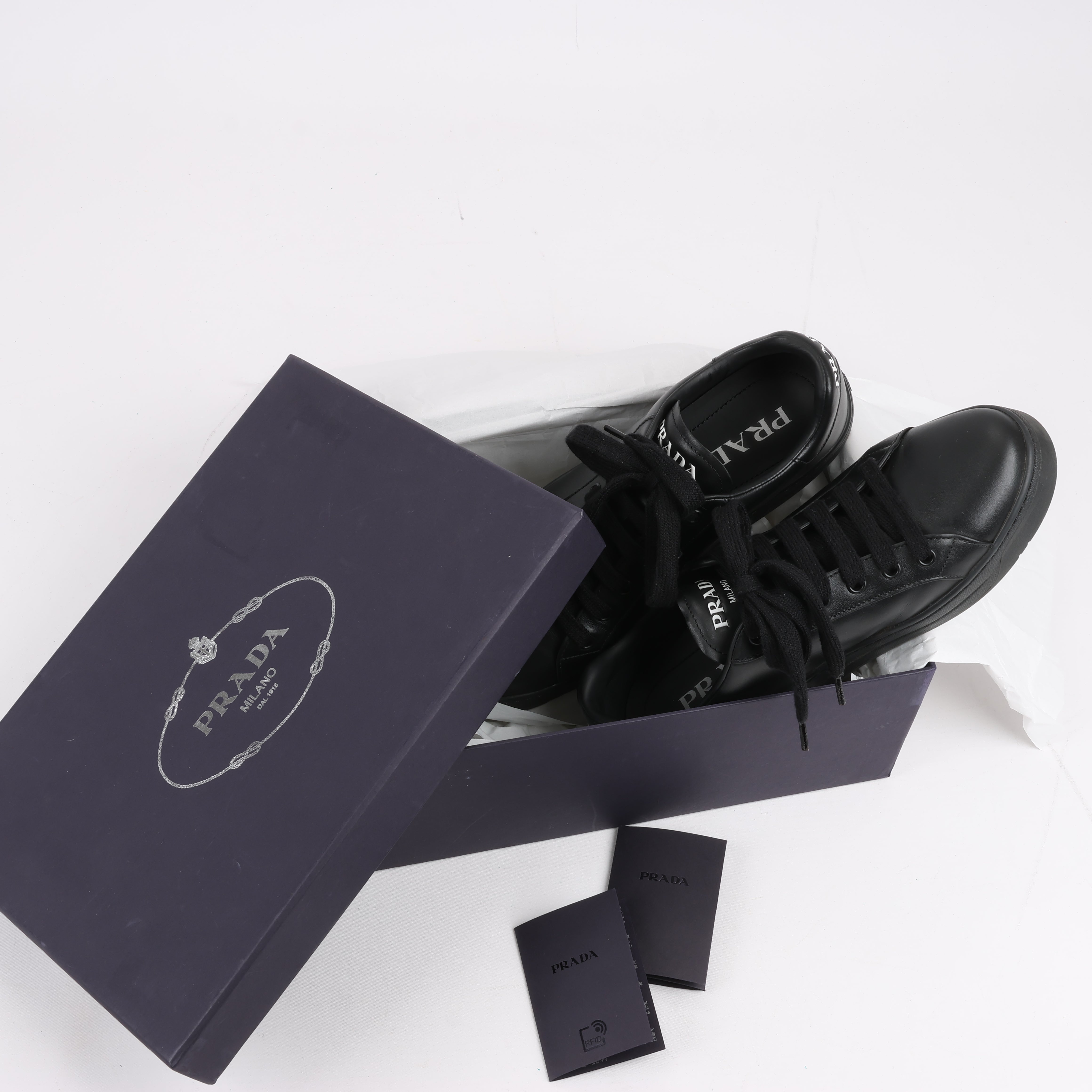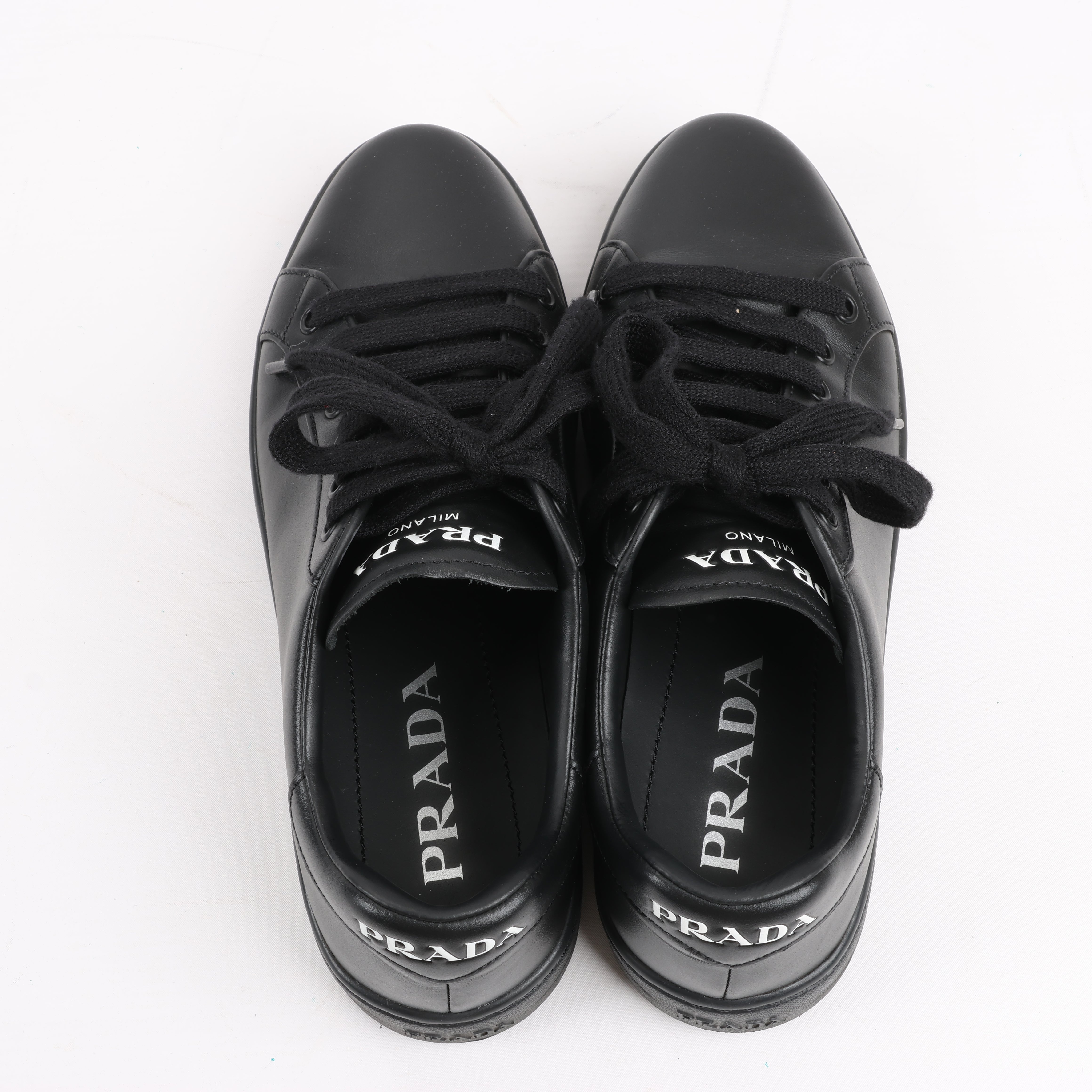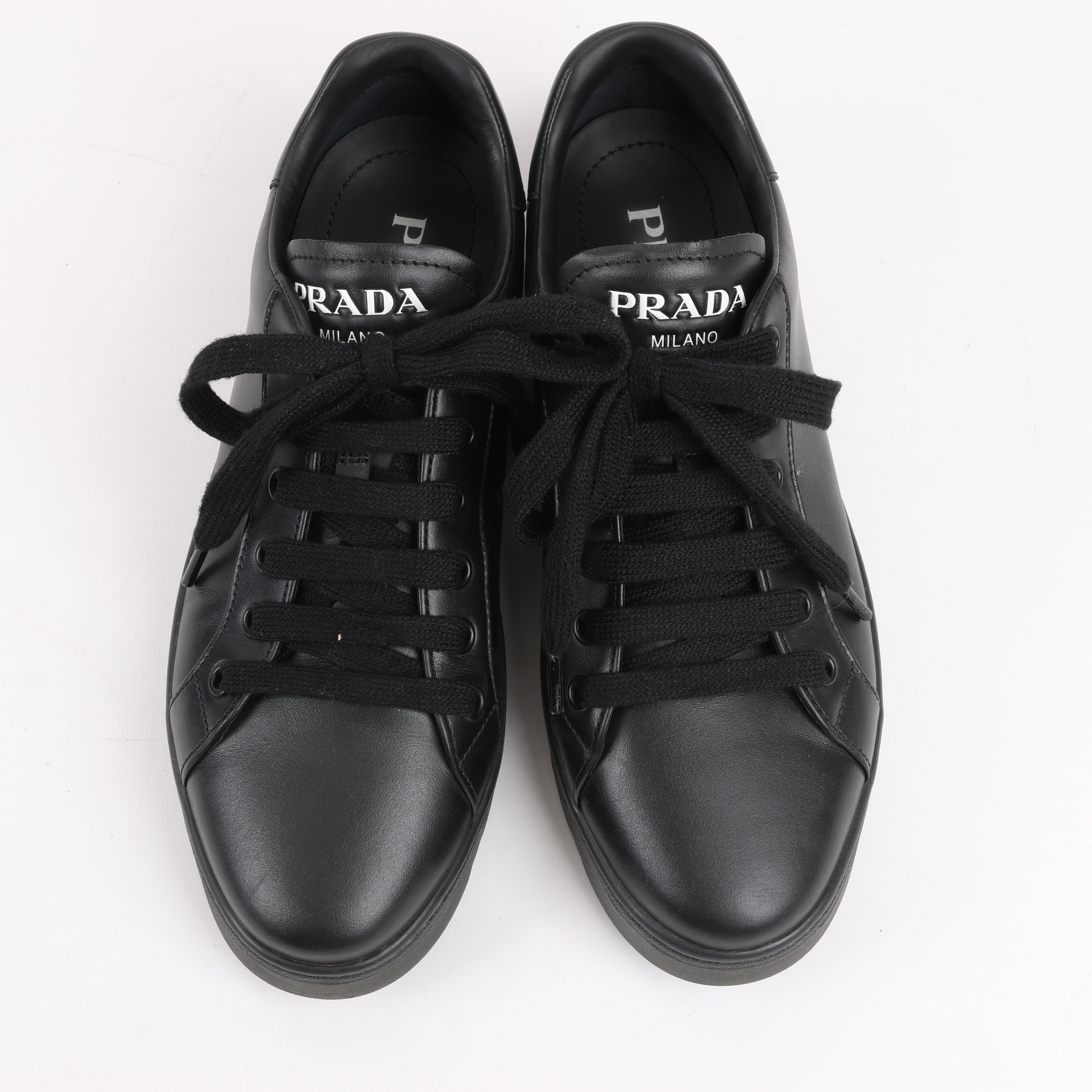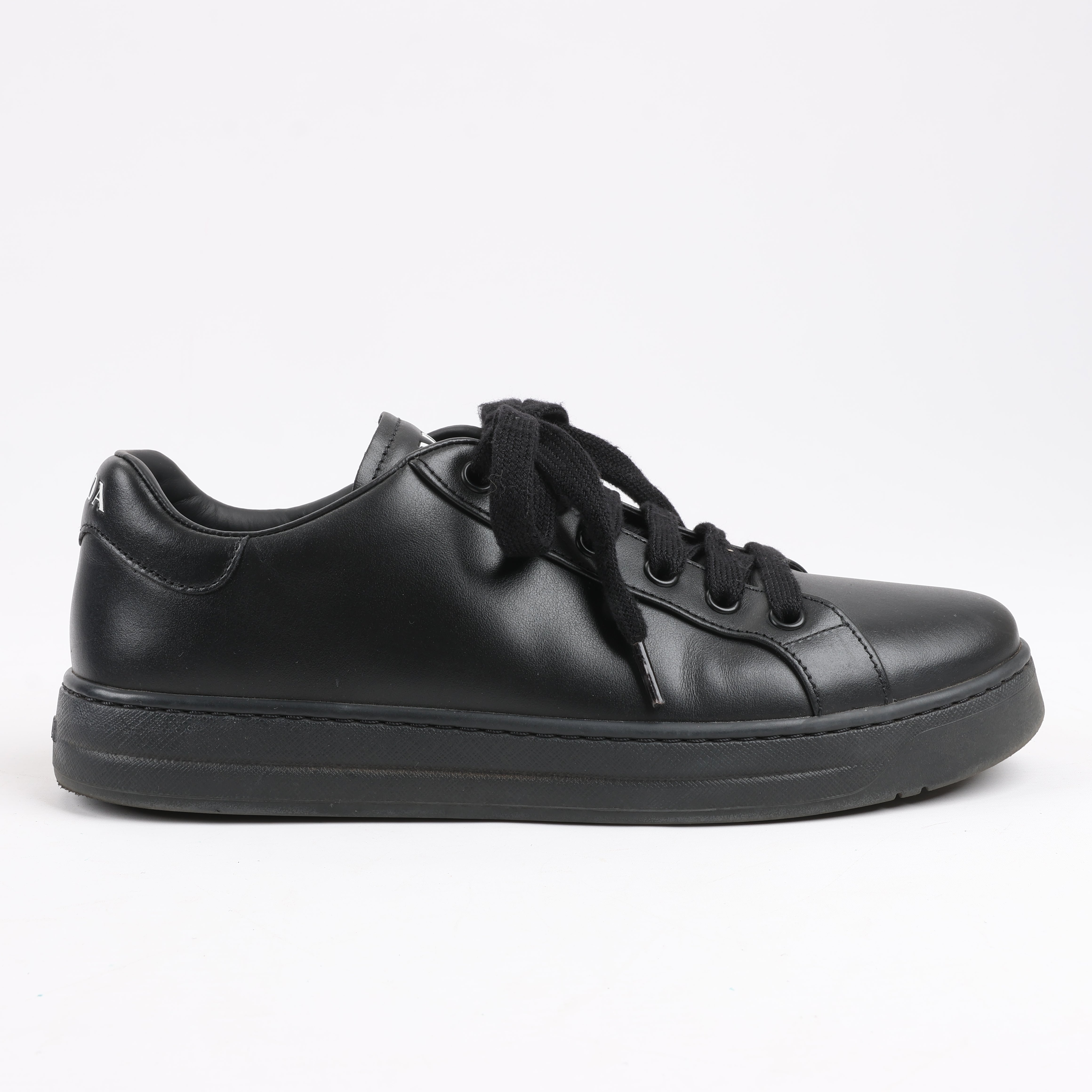 Prada PRADA Logo Leather Sneakers in Black × White 1E282N, Size 37.5 EU