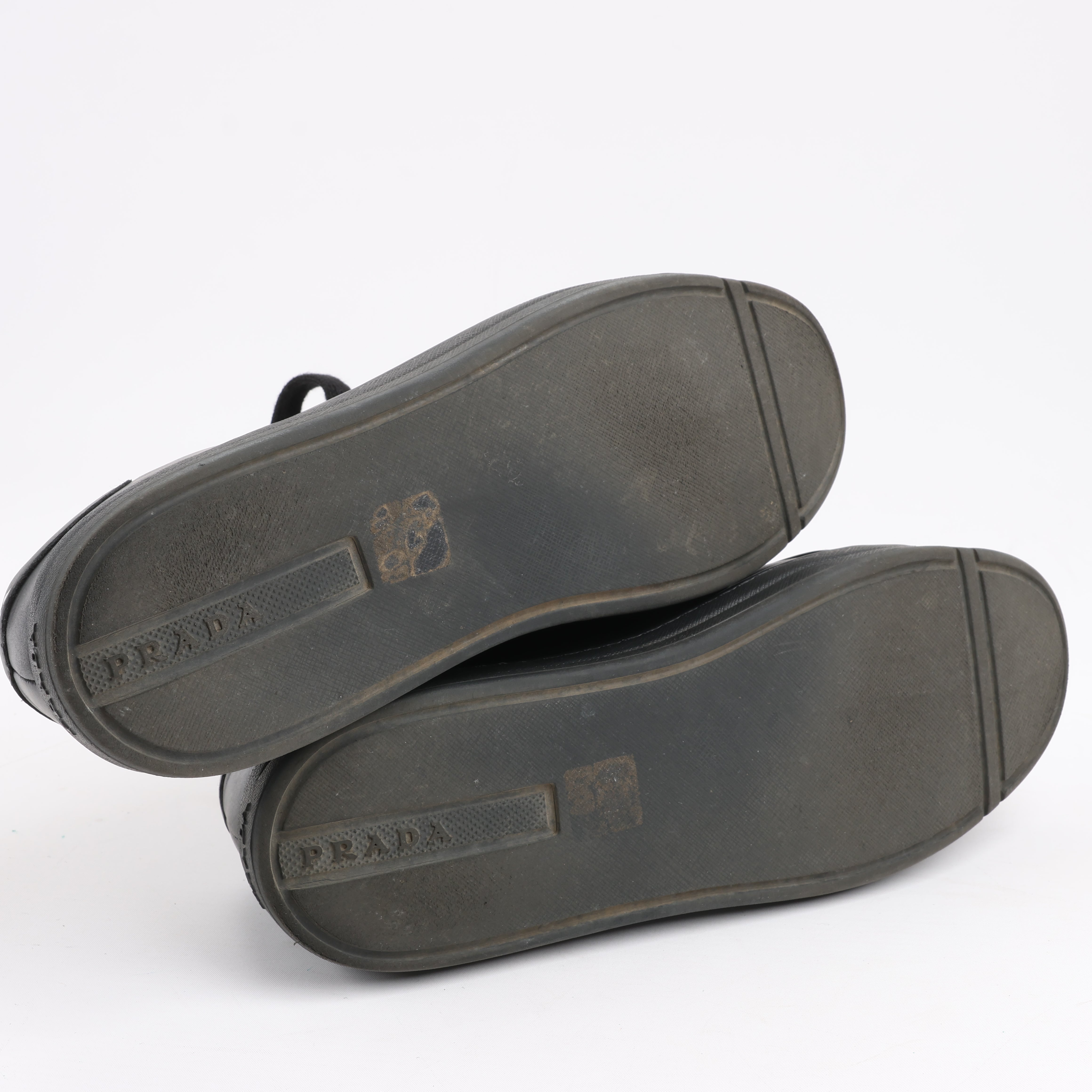 Brand: PradaSize: EU 37.5Platform: 3 cmCondition: ExcellentCondition Details: Almost like new, but has light signs of use on outsole.Main Colour: BlackColours: WhiteMain material: LeatherMaterials: RubberProduct Code: 1E282NManufactured In: VietnamComes With: Box, papers