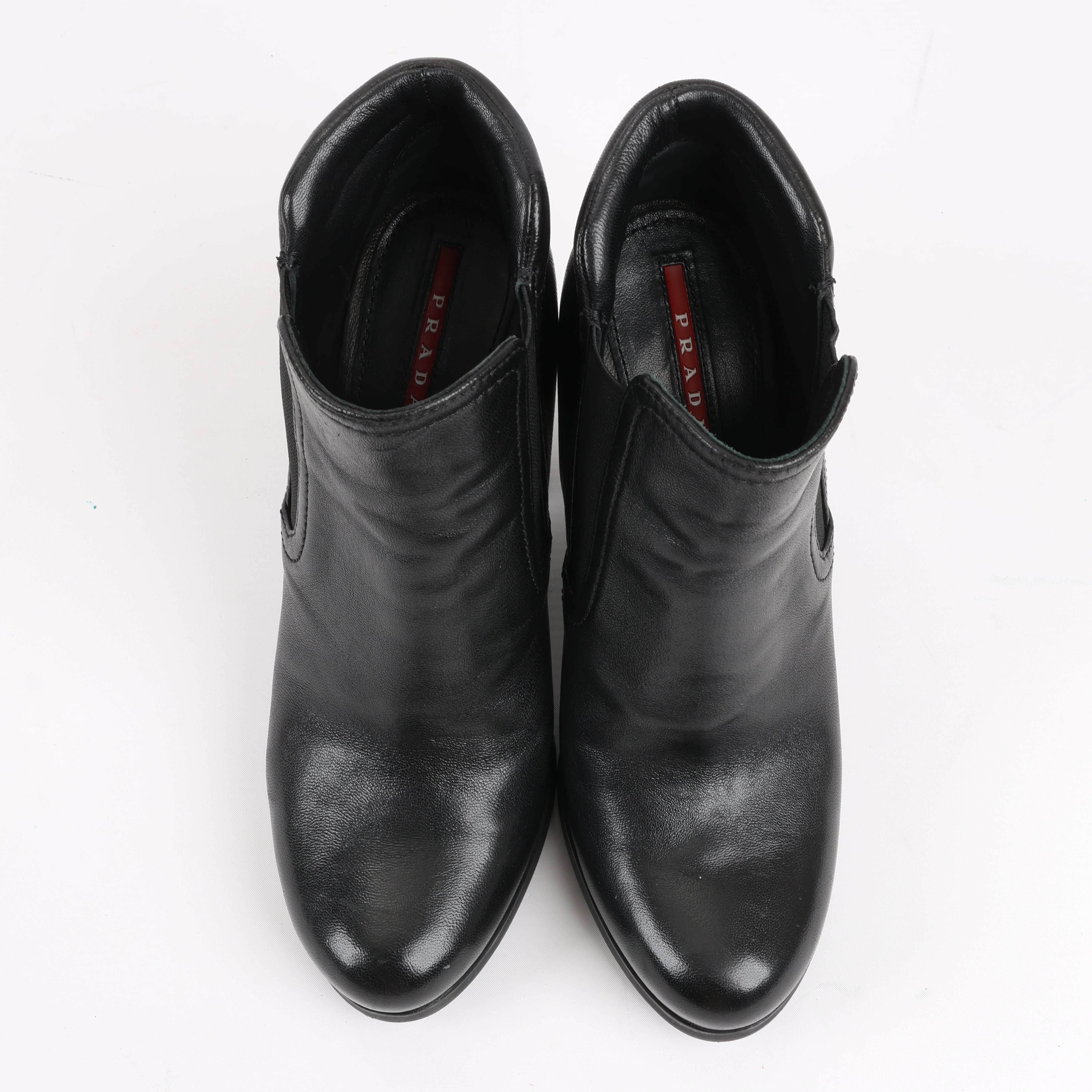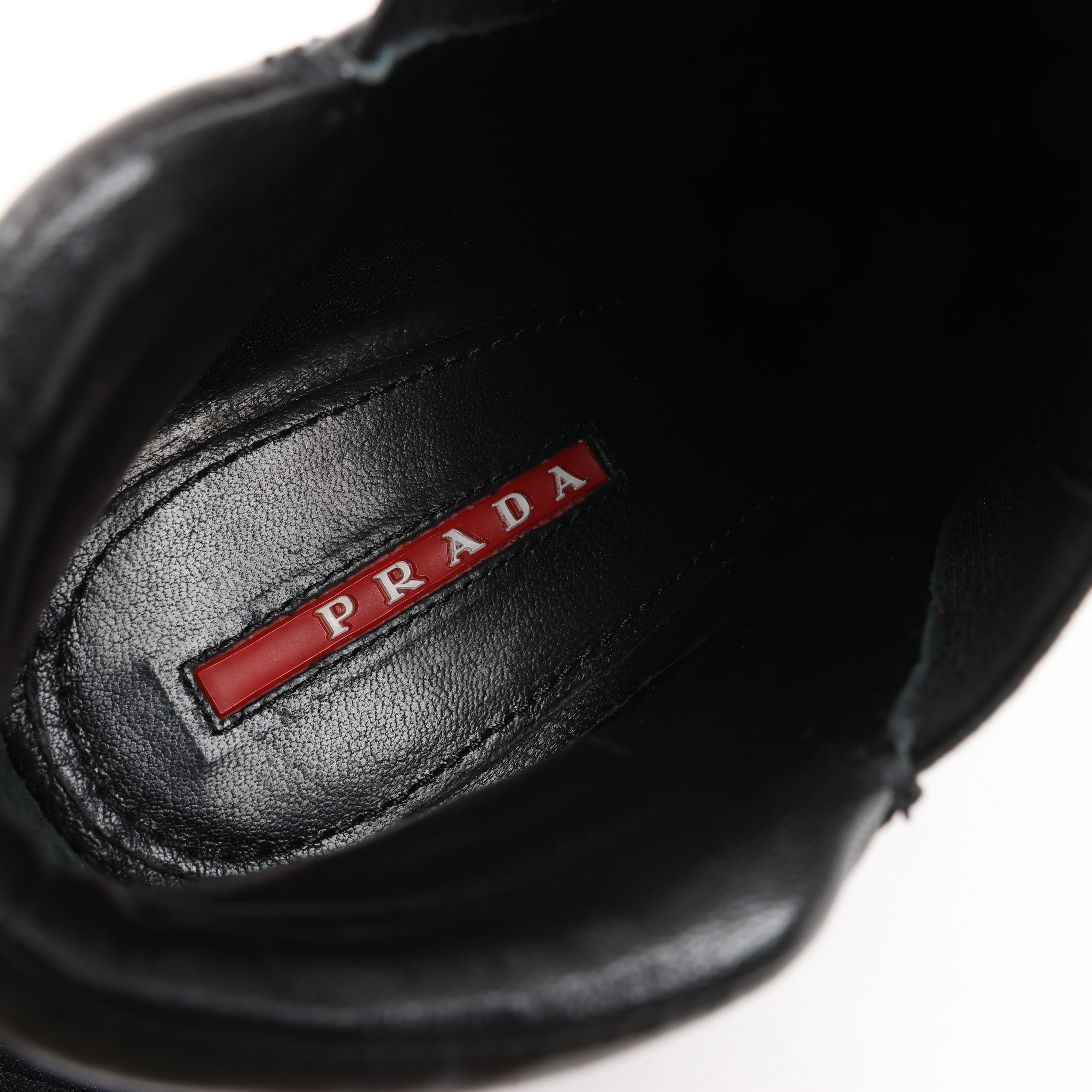 Prada Prada Sport Leather Side Gore Ankle Boots in Black 3TP022, Size 38 EU