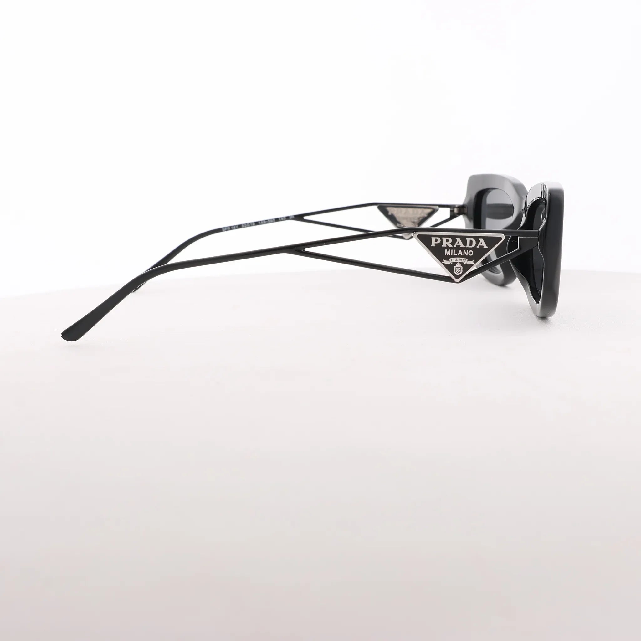 The Prada PR 14YS Sunglasses in Black bring bold minimalism to modern eyewear. Featuring a sleek rectangular frame with dark lenses and signature Prada branding, these shades deliver effortless sophistication and everyday UV protection.