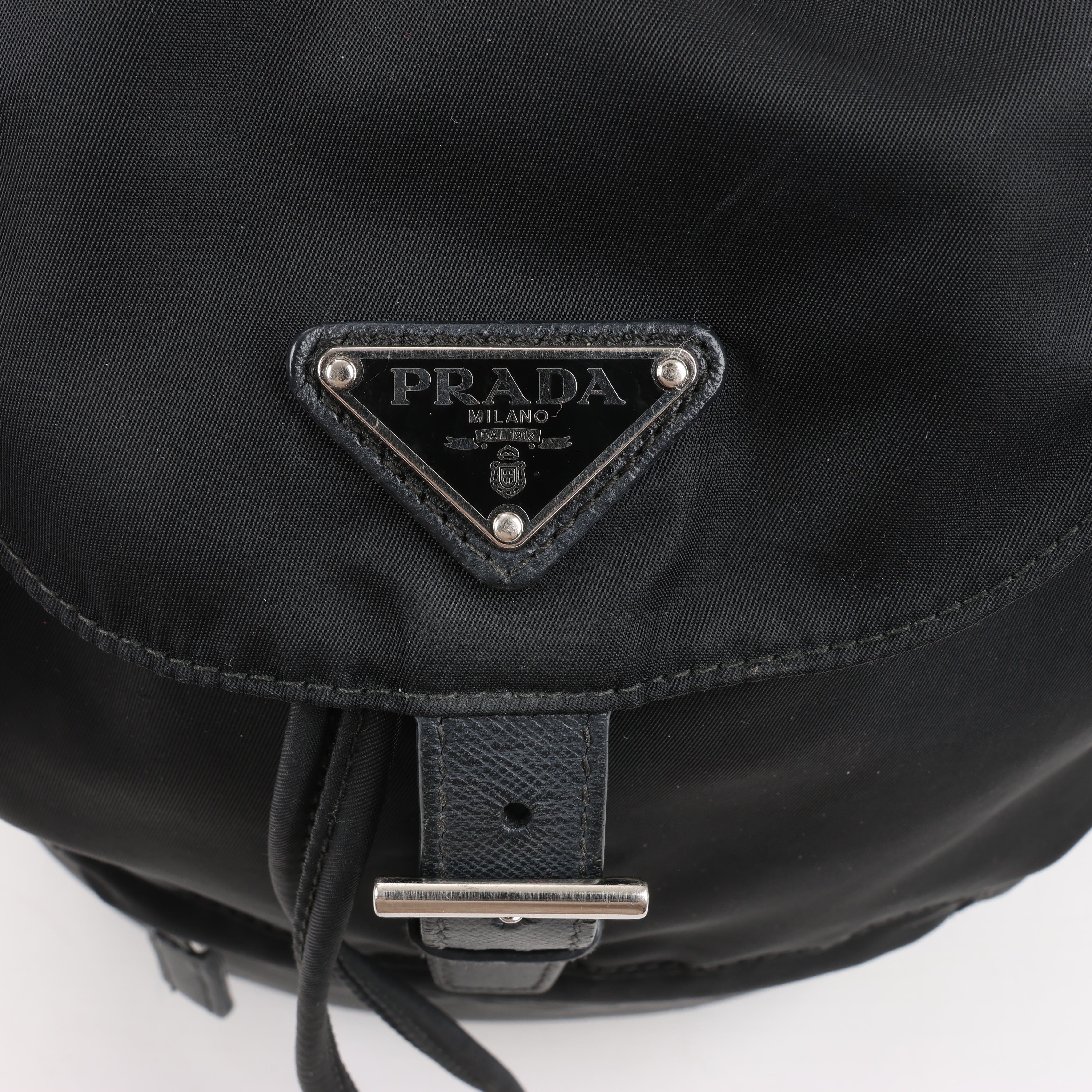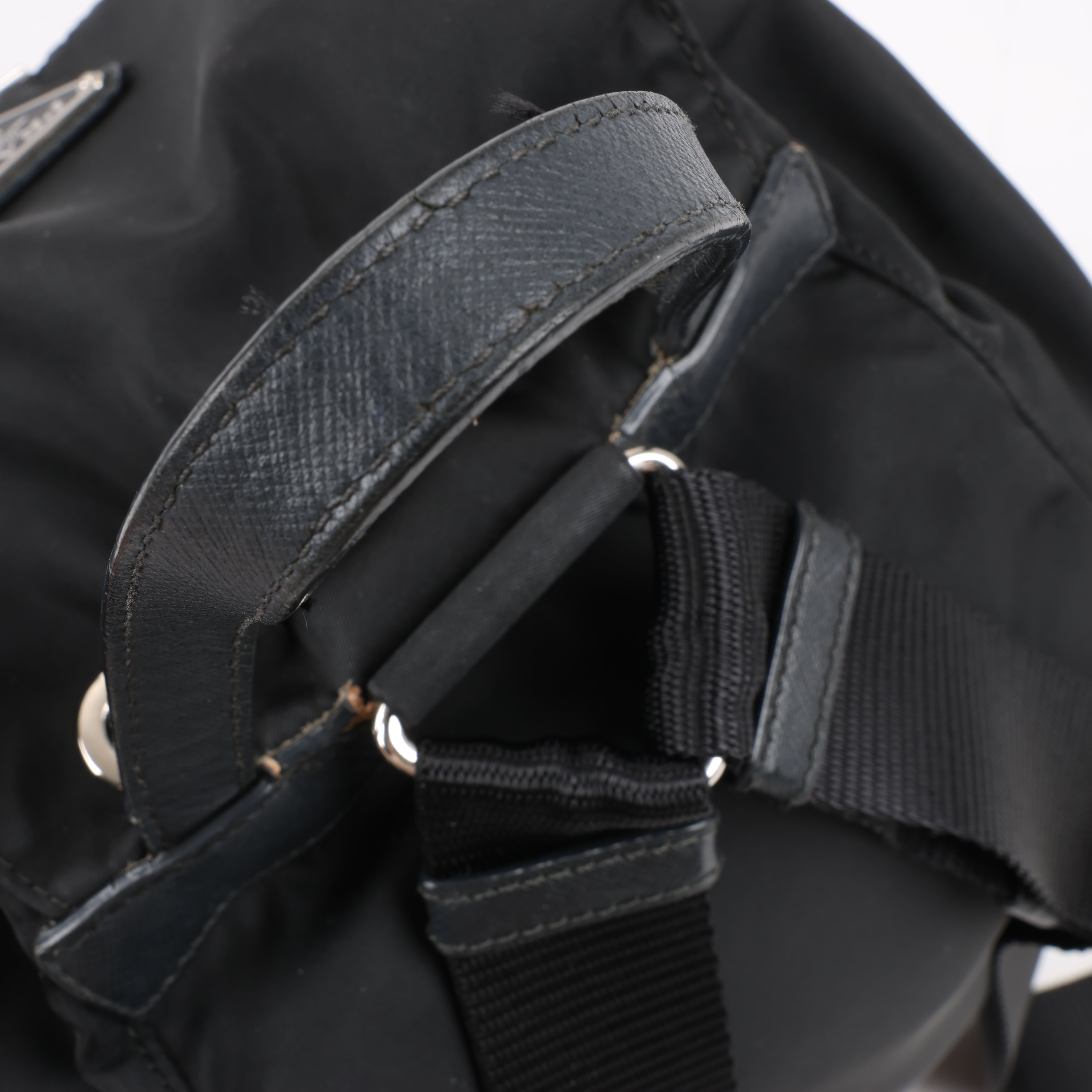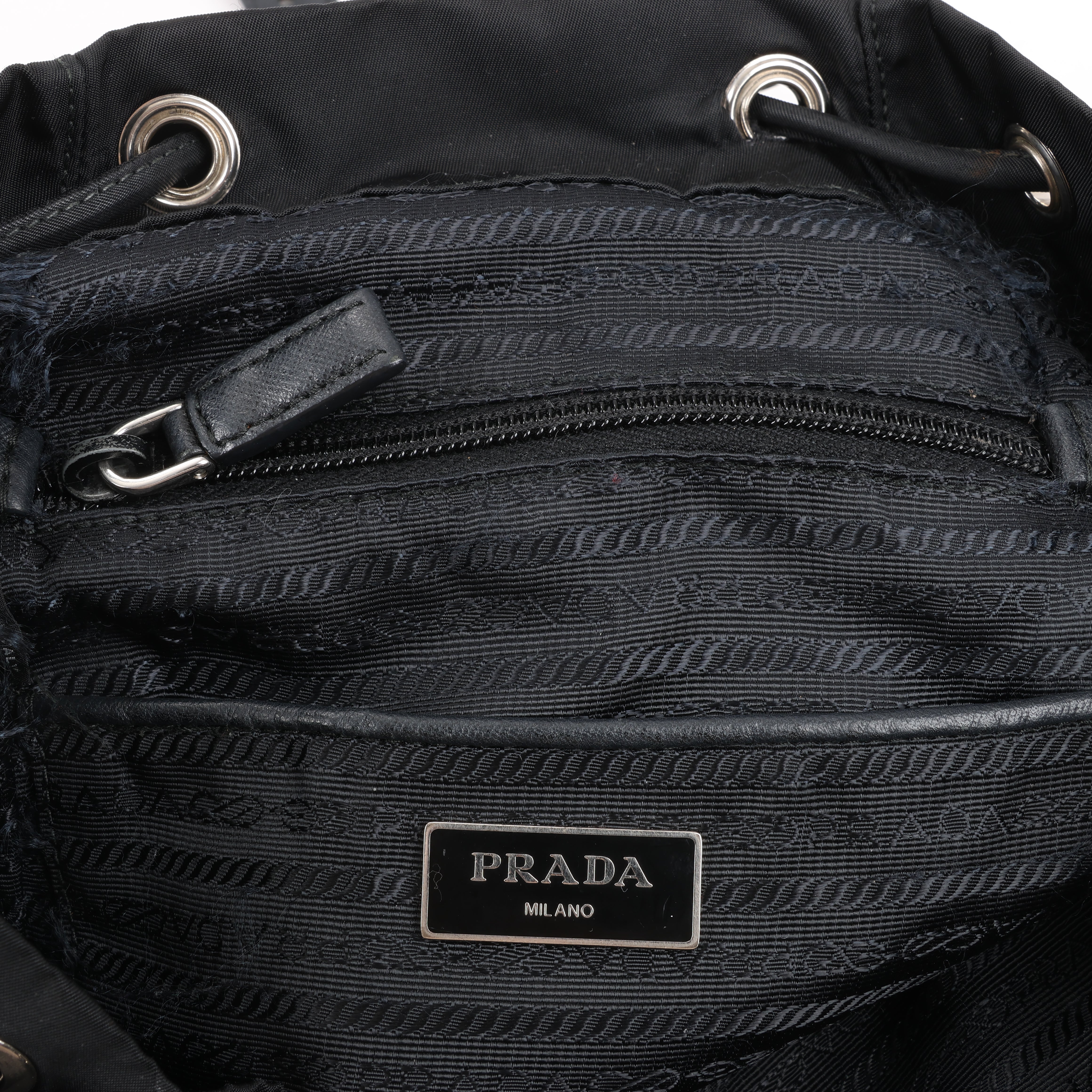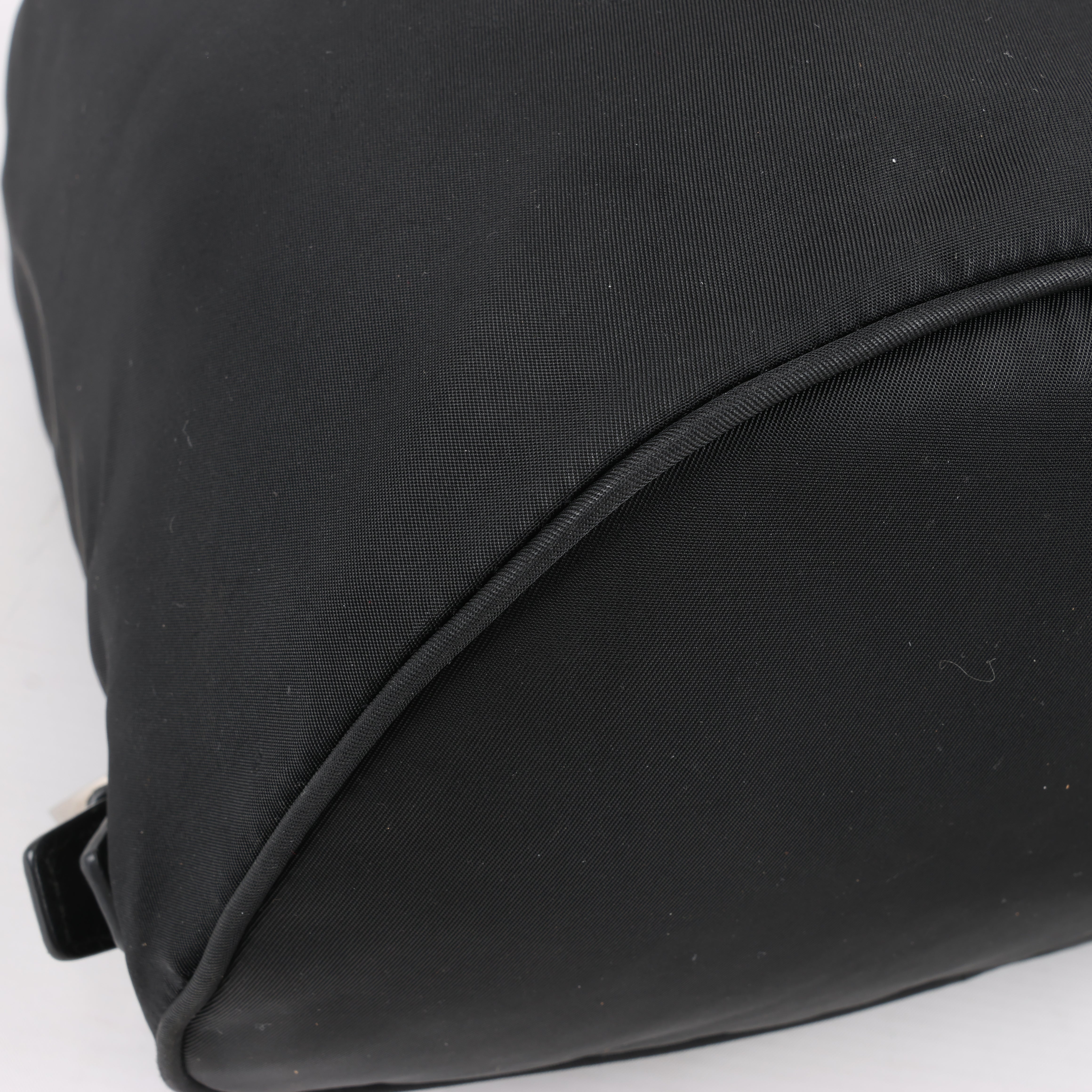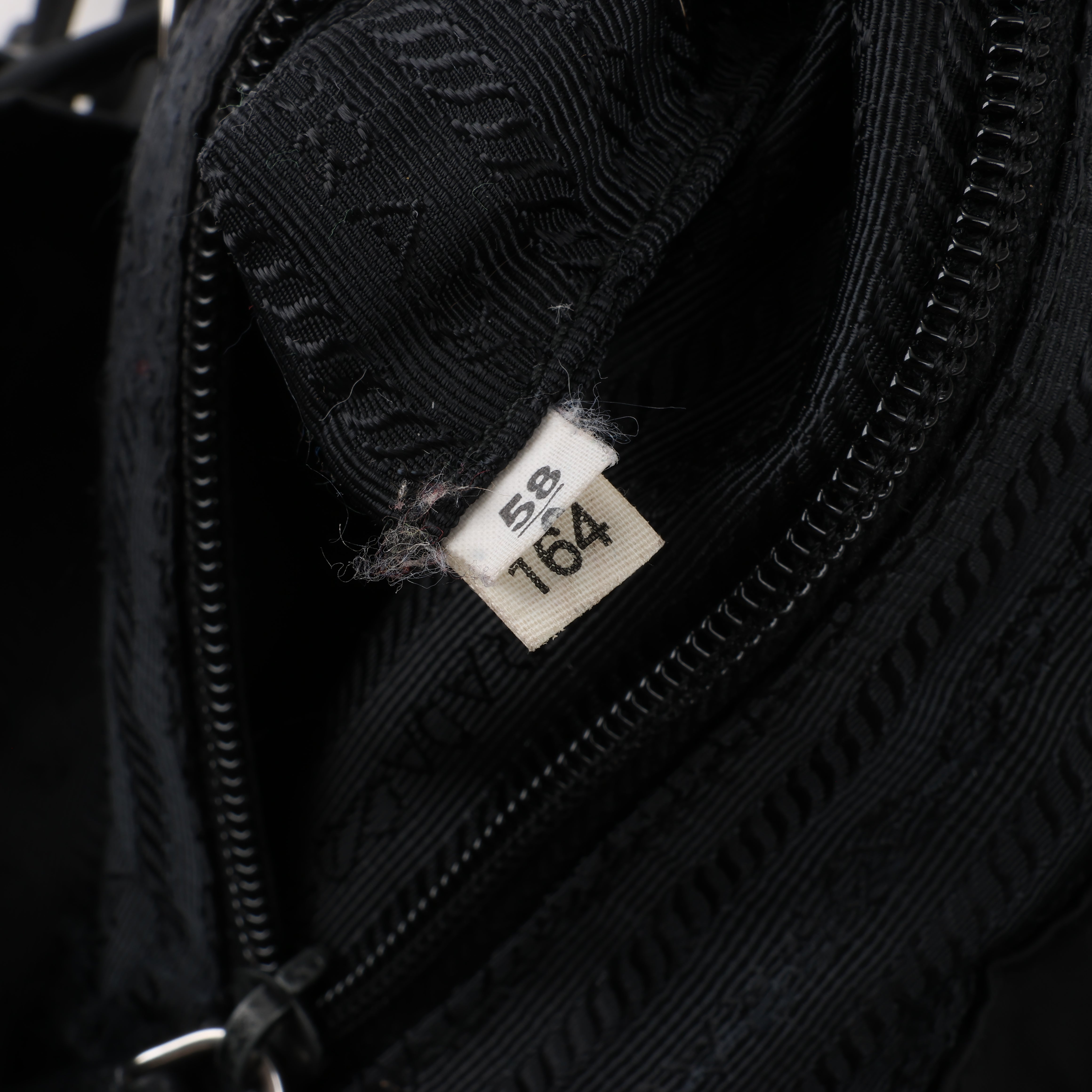 Brand: PradaModel: Tessuto Size: -Width: 26 cmHeight: 36 cmExterior Condition: ExcellentInterior Condition: Very goodCondition Details: The exterior fabric is clean and beautiful. The leather trim has some light crease, cracks. The hardware is bright and crisp with surface scratches. The interior is clean and in good condition, except usage rubbings. Colour: BlackInterior Colour: BlackHardware Colour: SilverMaterial: Cloth, LeatherComes With: -
