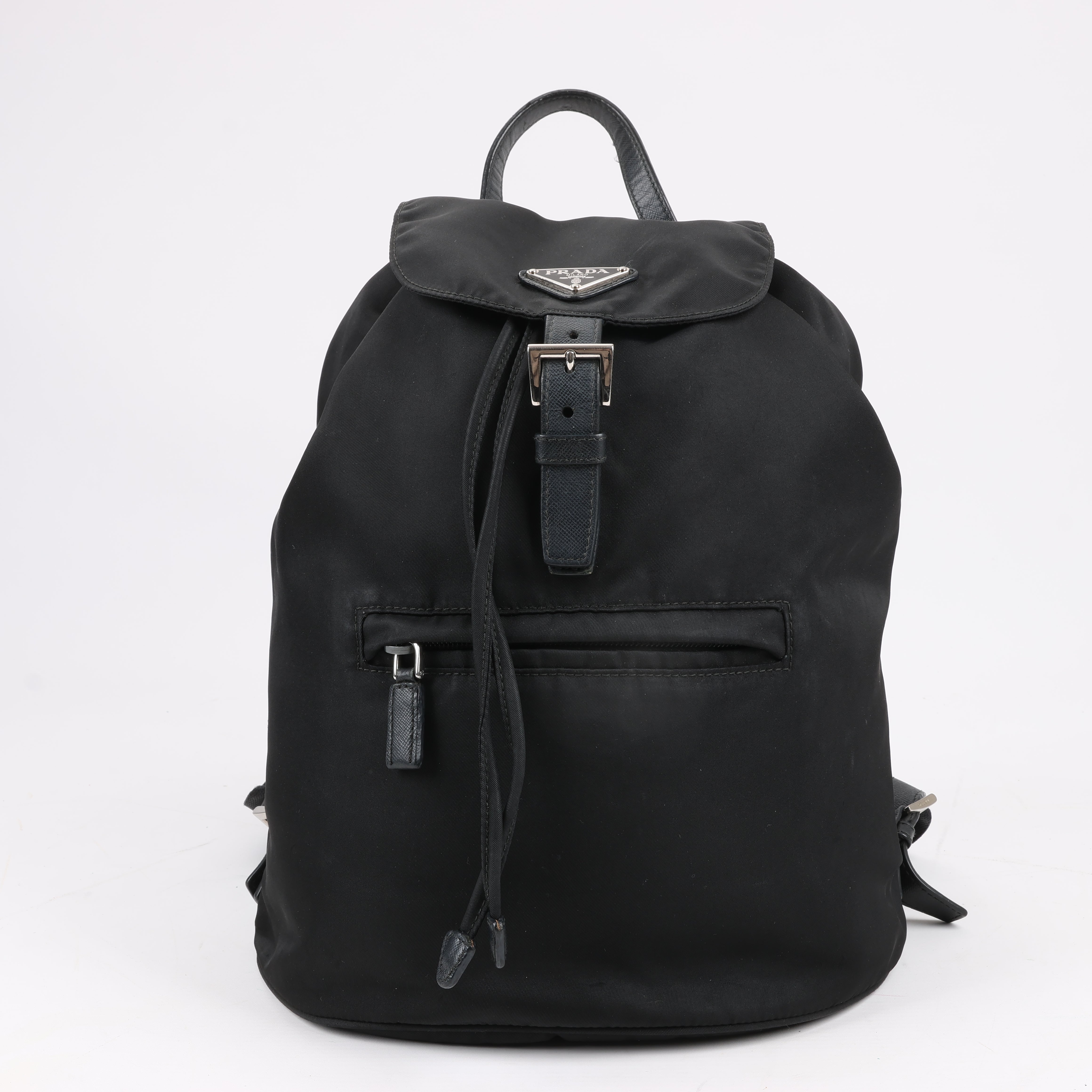 Prada Prada Tessuto Fabric x Leather Backpack in Black