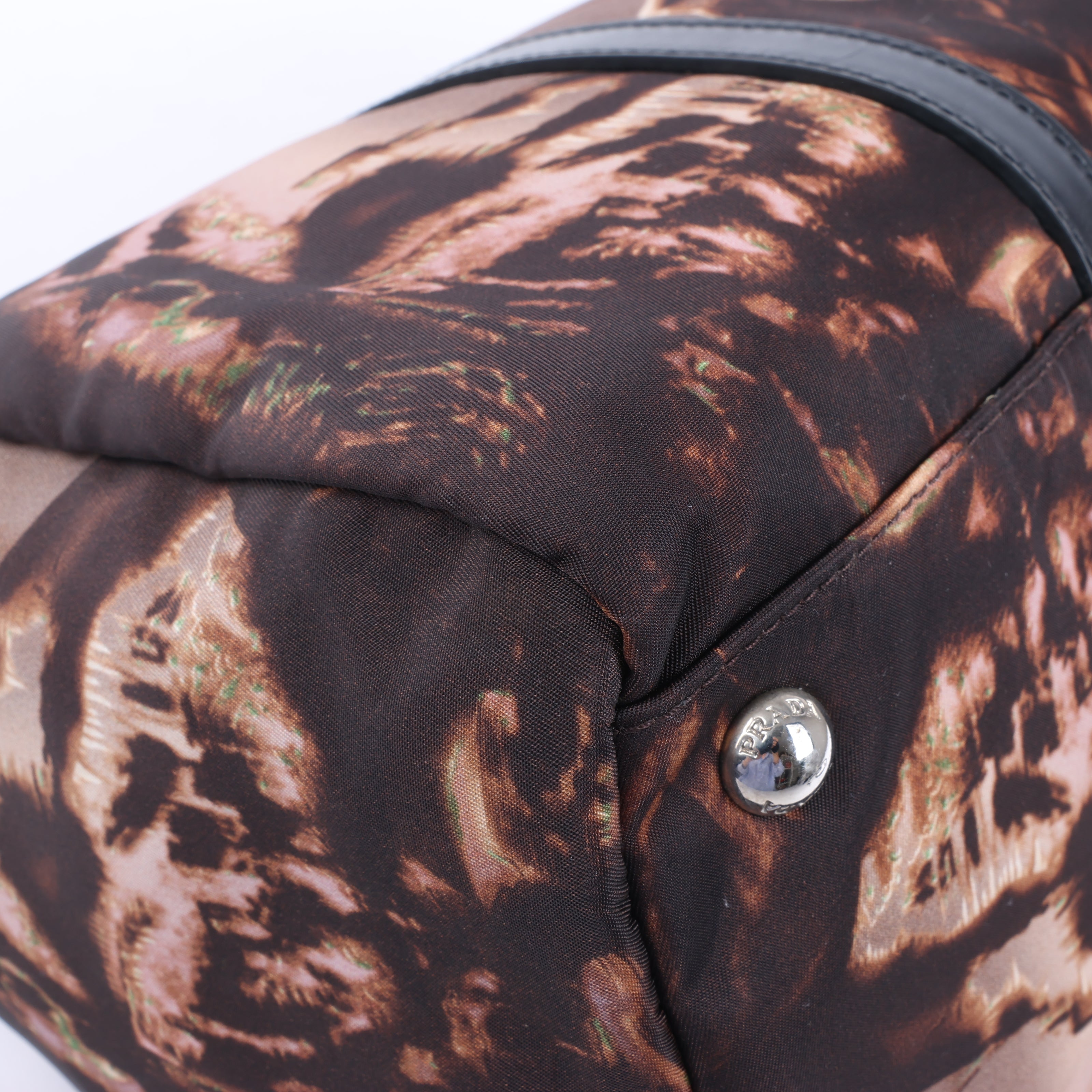 Brand: PradaModel: Tessuto StampatoSize: -Width: 32.5 cmHeight: 24 cmExterior Condition: ExcellentInterior Condition: Excellent Condition Details: Exterior is in excellent condition, clean and beautiful. Leather handles, strap and trim are clean and firm in excellent condition, except some creases. Hardware is bright and crisp with some light hairline scratches. Interior is in great condition - like new!Colour: Purple, BlackInterior Colour: BlackHardware Colour: SilverMaterial: LeatherComes With: Shoulder strap