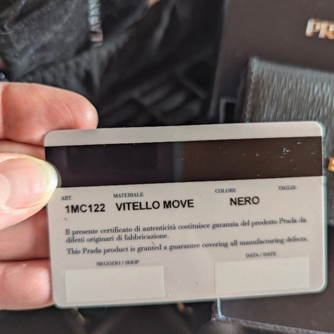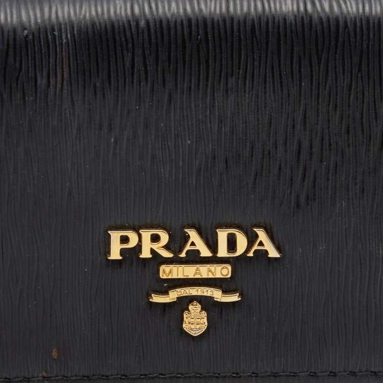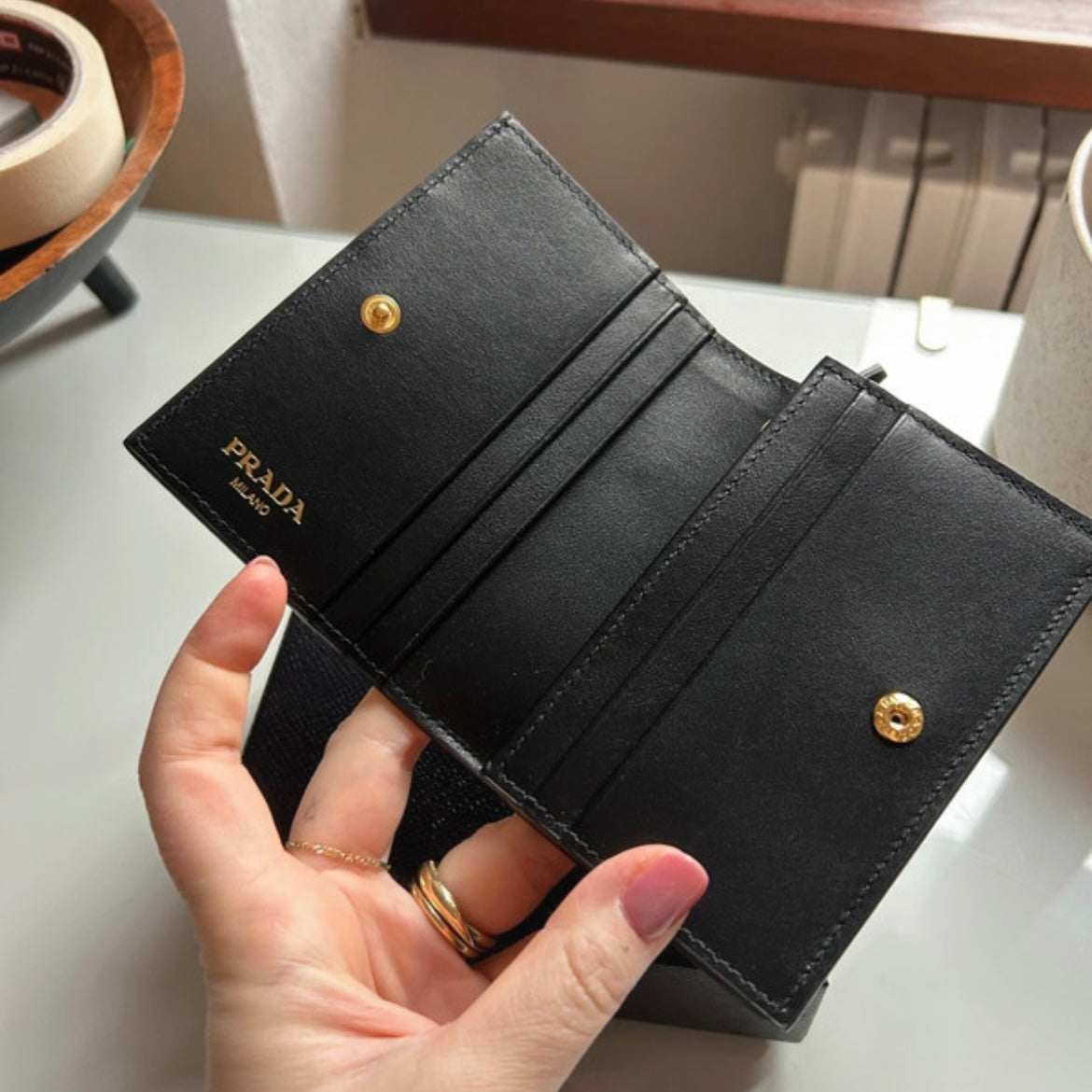 Prada black Saffiano leather purse. Gold logo. never worn with box and authenticity card. dimensions: 11*6.5*2.5cm