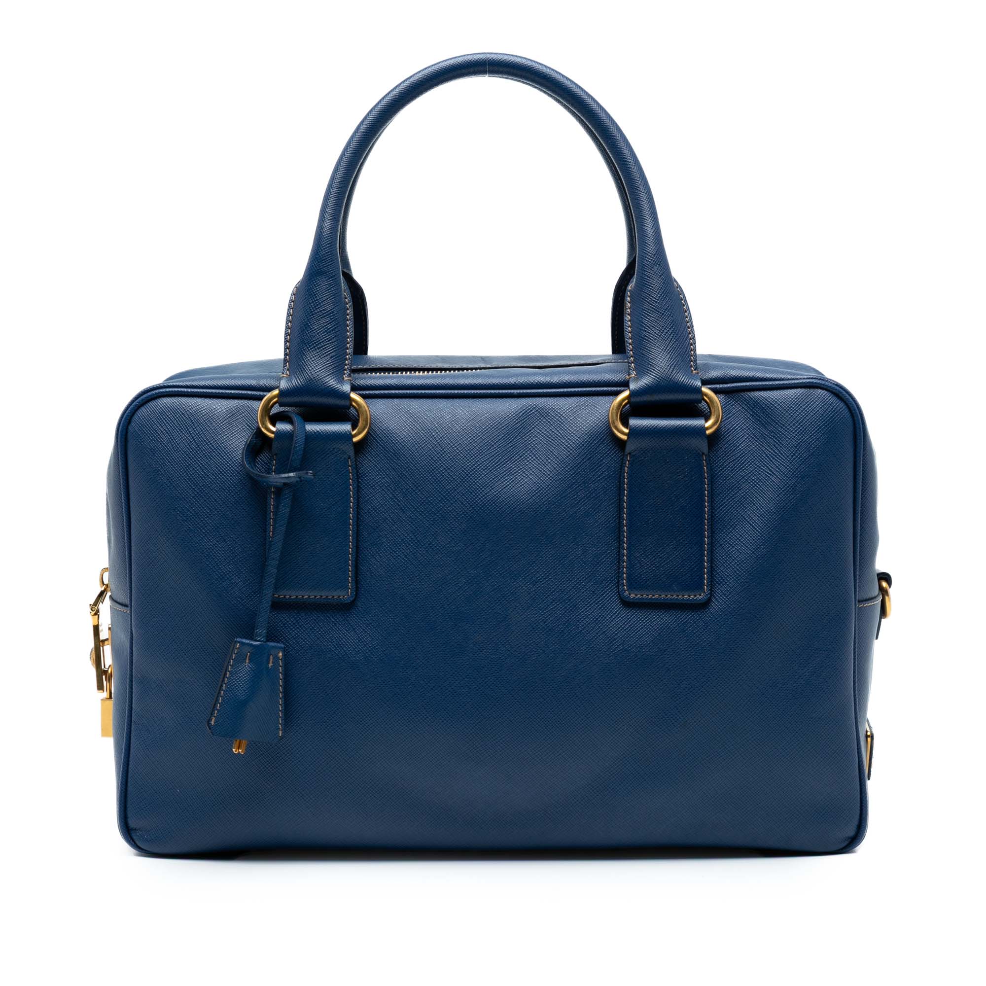 This handbag features a saffiano leather body, rolled leather handles, a top zip closure, and interior zip and slip pockets. Retail Price: 795.00
