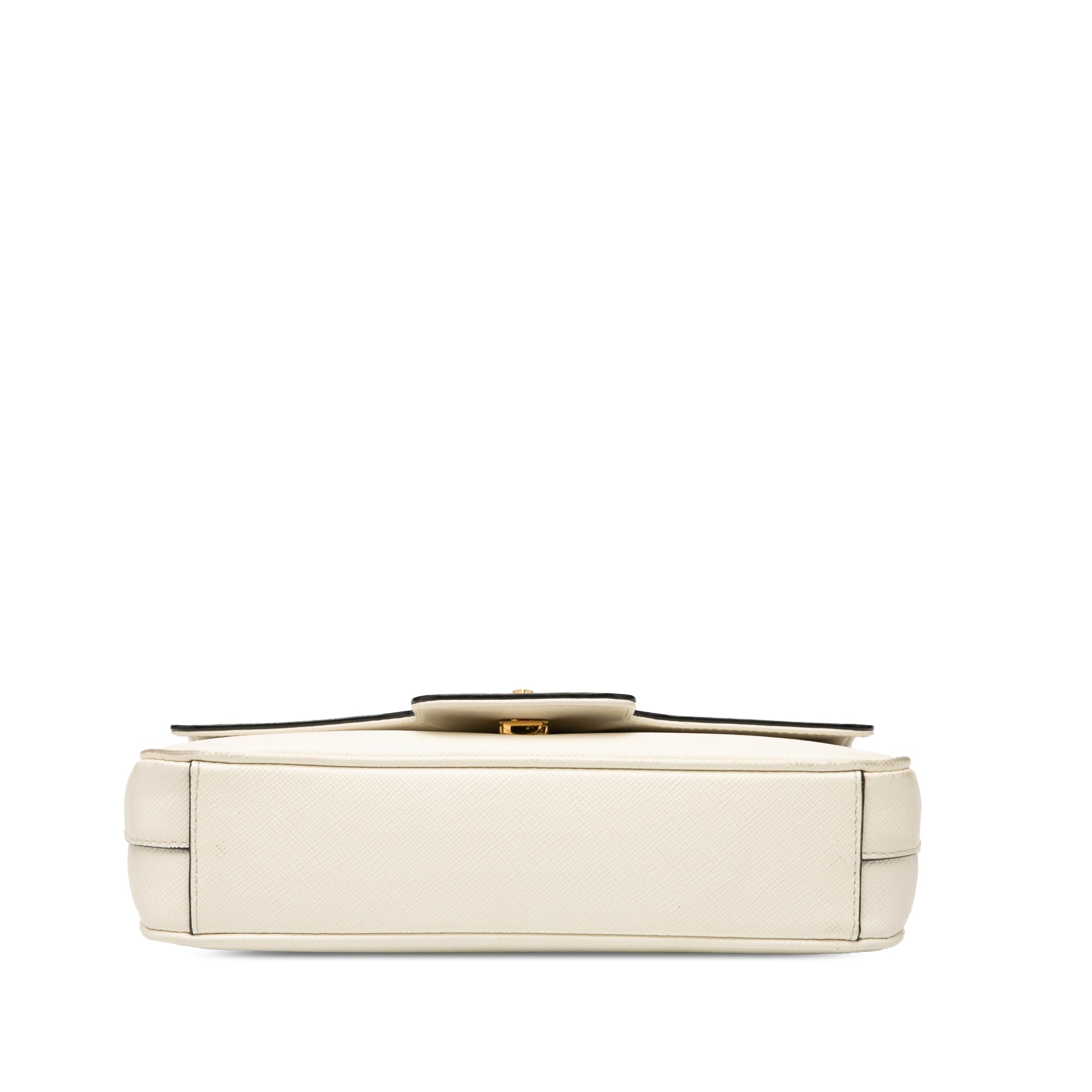 This crossbody bag features a saffiano leather body, a chain link strap with leather guard, a flap with magnetic snap closure, and interior zip and slip pockets. Inclusion: Dust bag. Retail Price: 2190.00