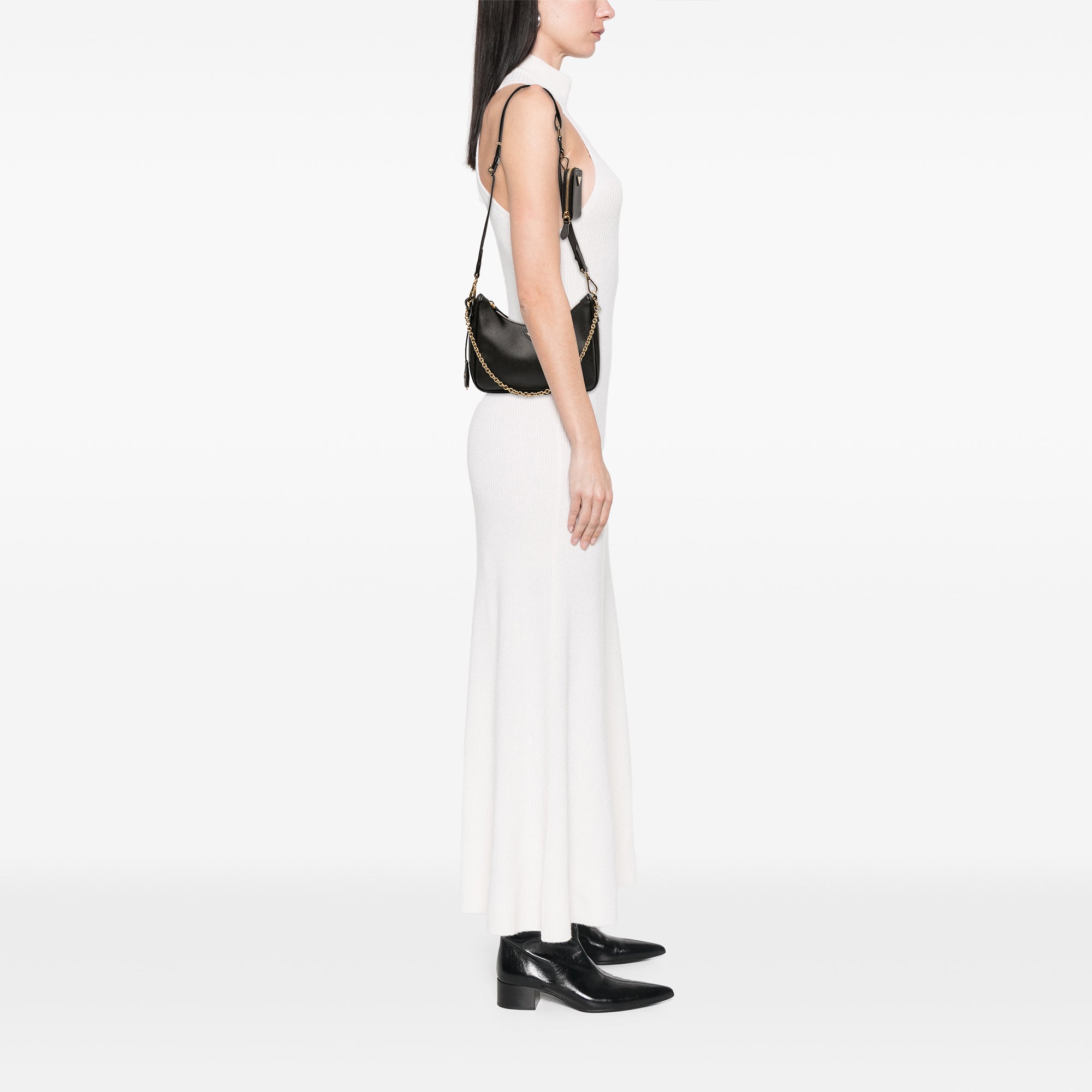 This satchel features a saffiano leather body, a gold-tone chain link strap, a detachable flat strap, a top zip closure, and a pouch inclusion. Inclusion: Dust bag, box, authenticity card. Retail Price: 2550.00