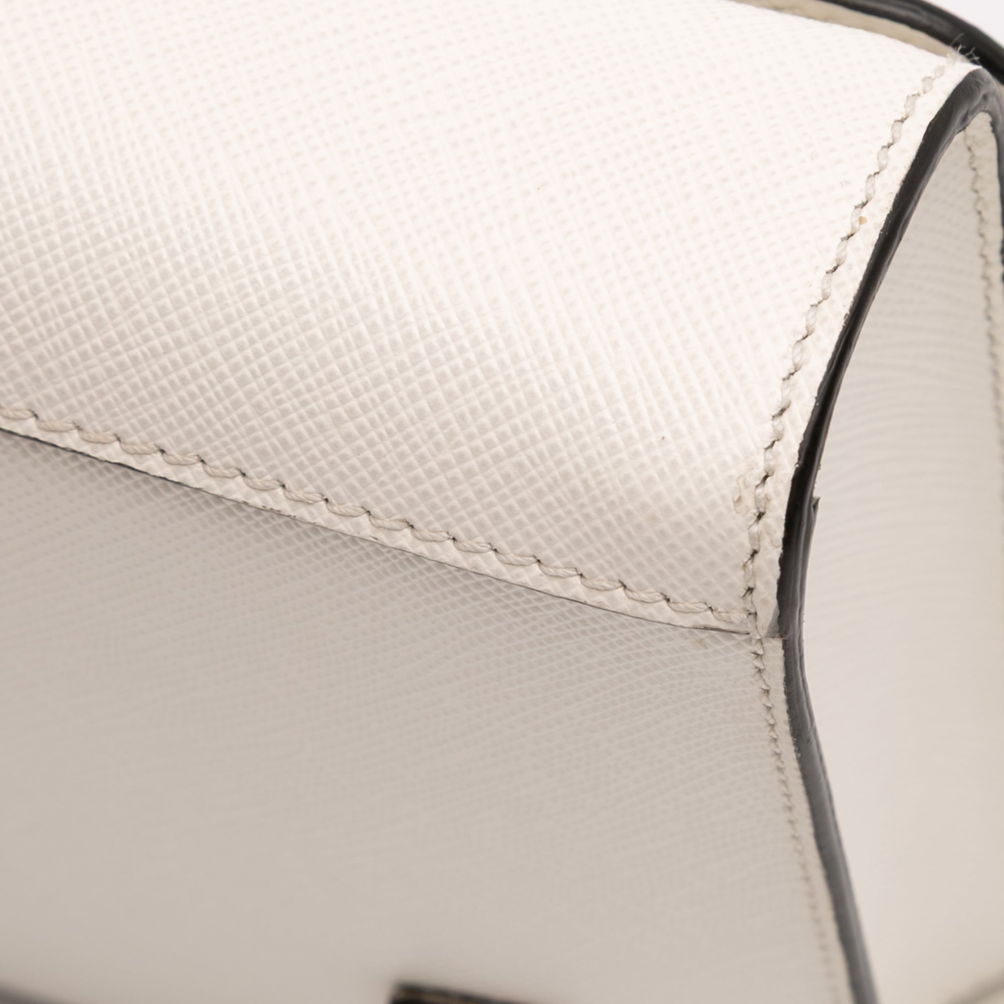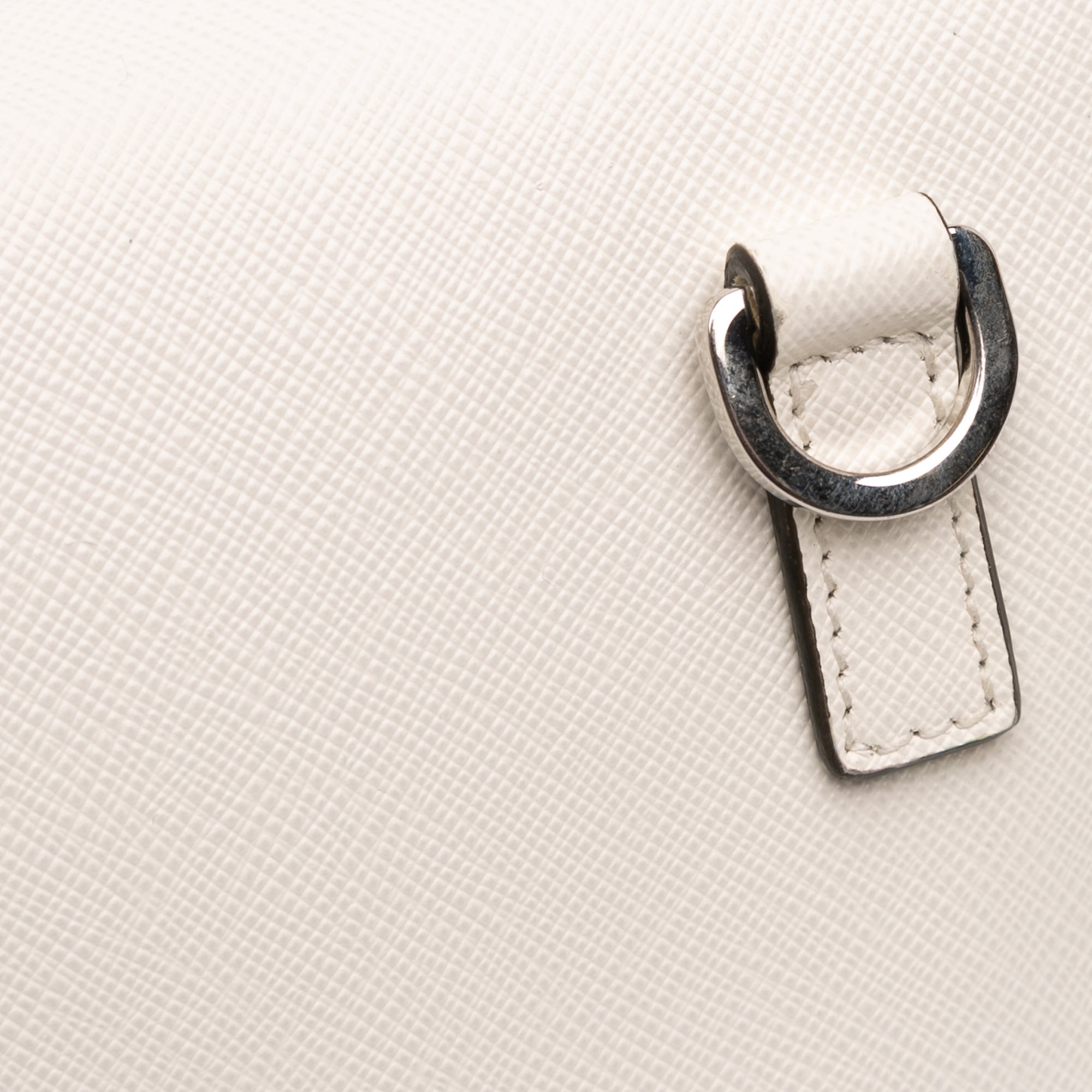This crossbody bag features a saffiano leather body, a detachable flat strap, and front flap with magnetic snap closure. Inclusion: Dust bag. Retail Price: 1500.00