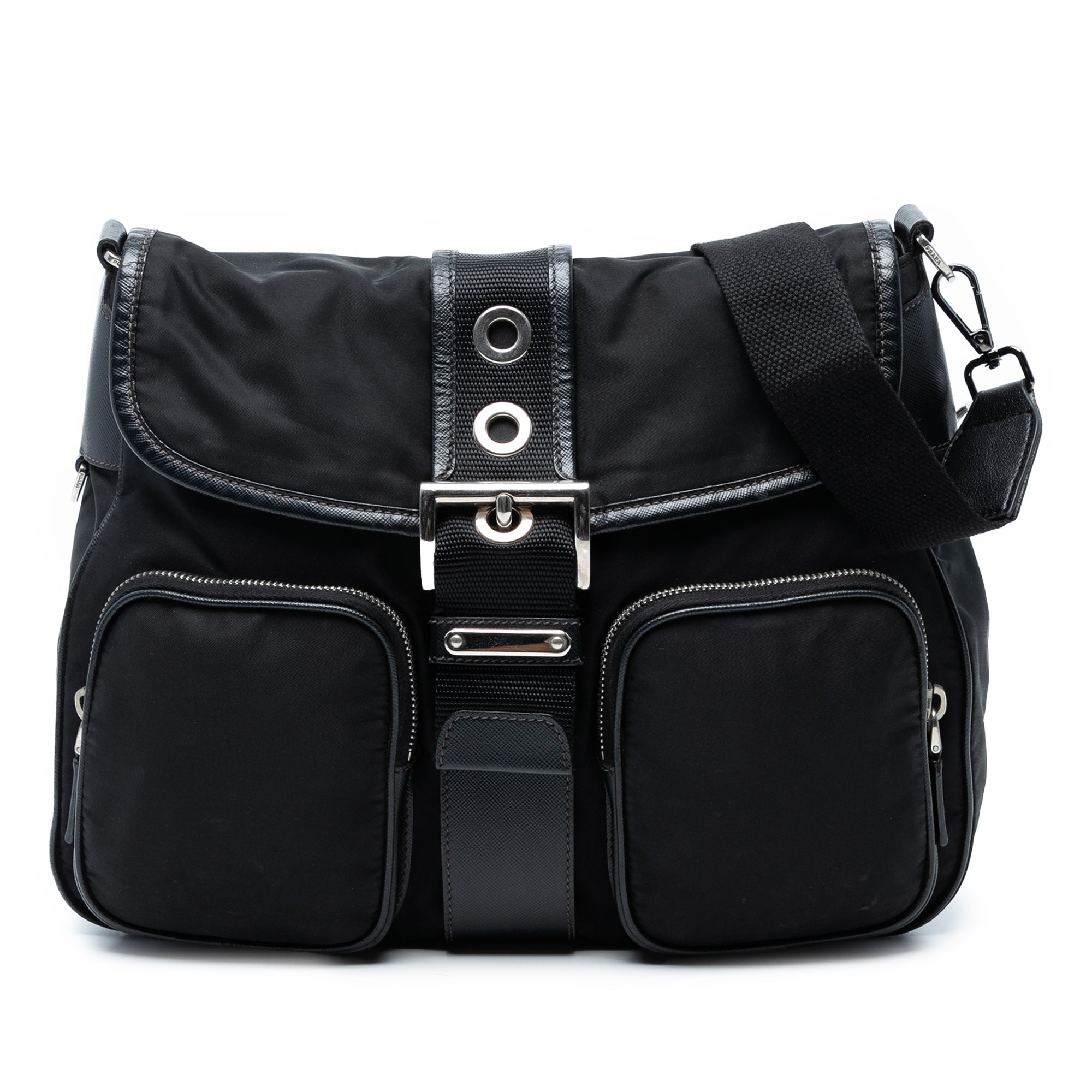 Prada Saffiano Trimmed Tessuto Buckle Messenger Bag