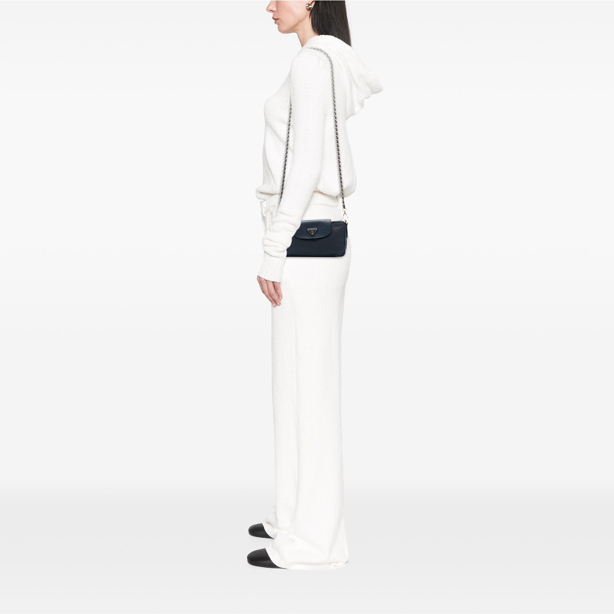 Prada Saffiano Trimmed Tessuto Chain Crossbody