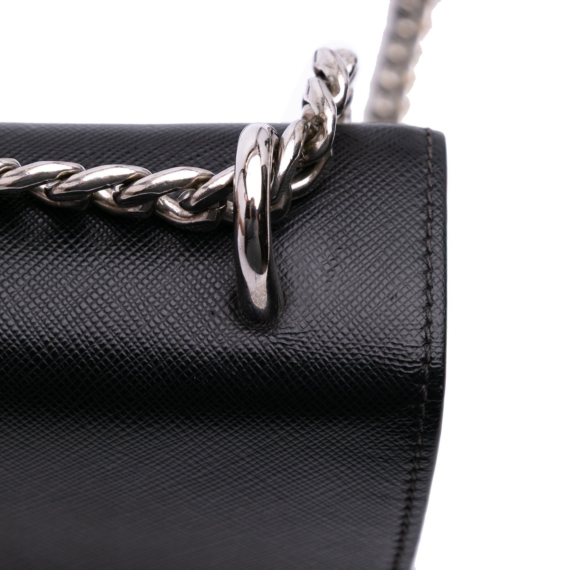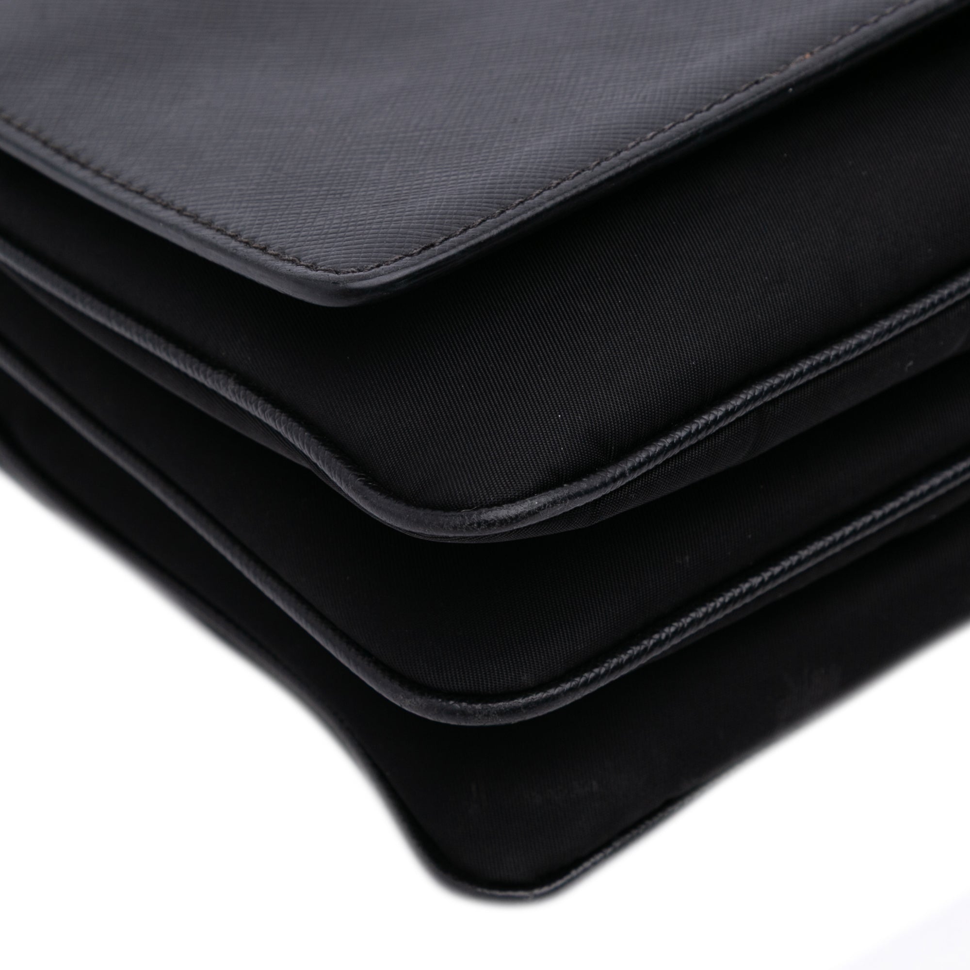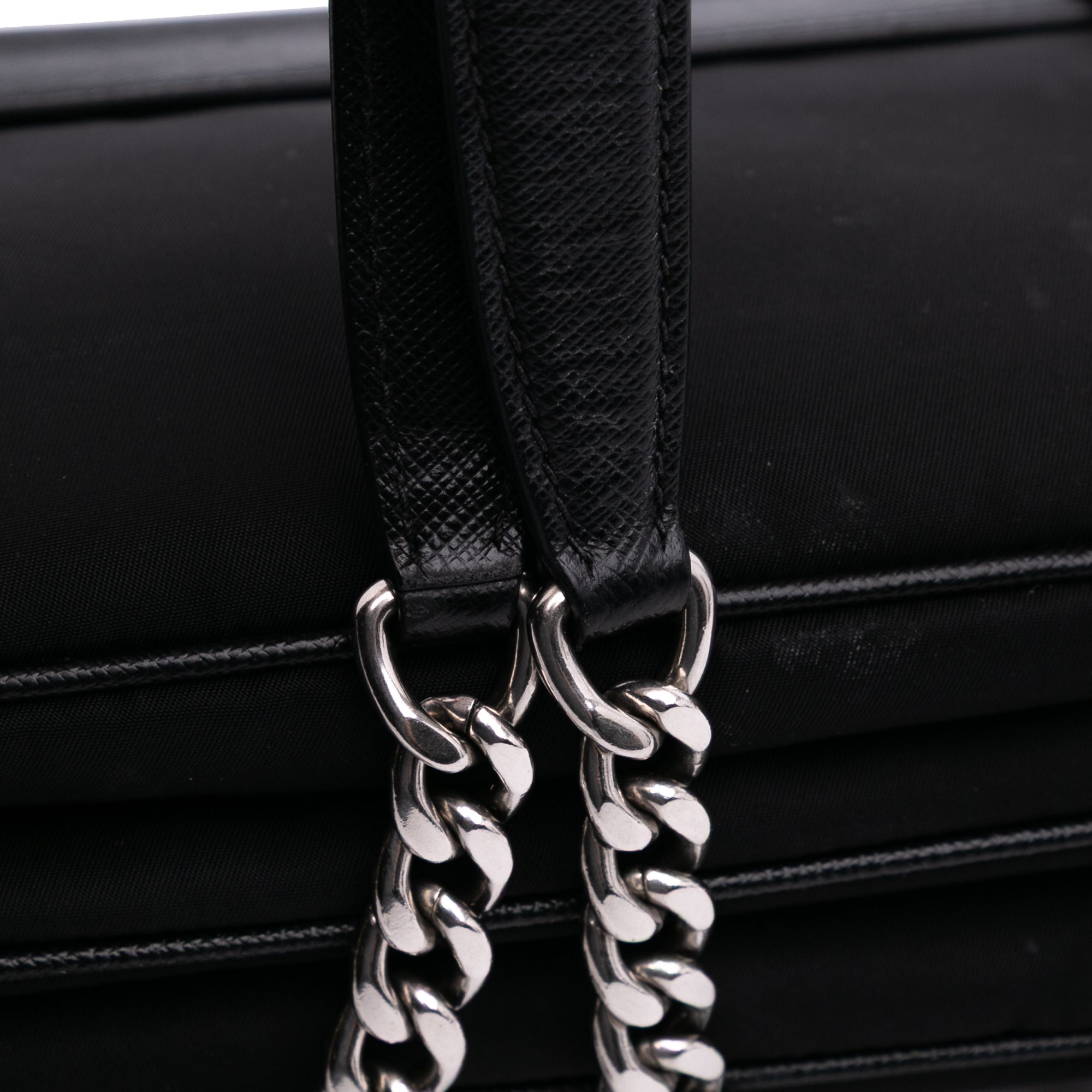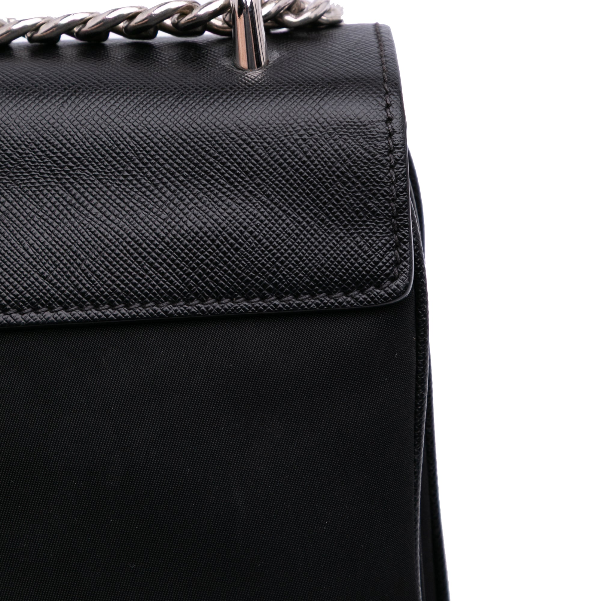 Prada Saffiano Trimmed Tessuto Chain Crossbody