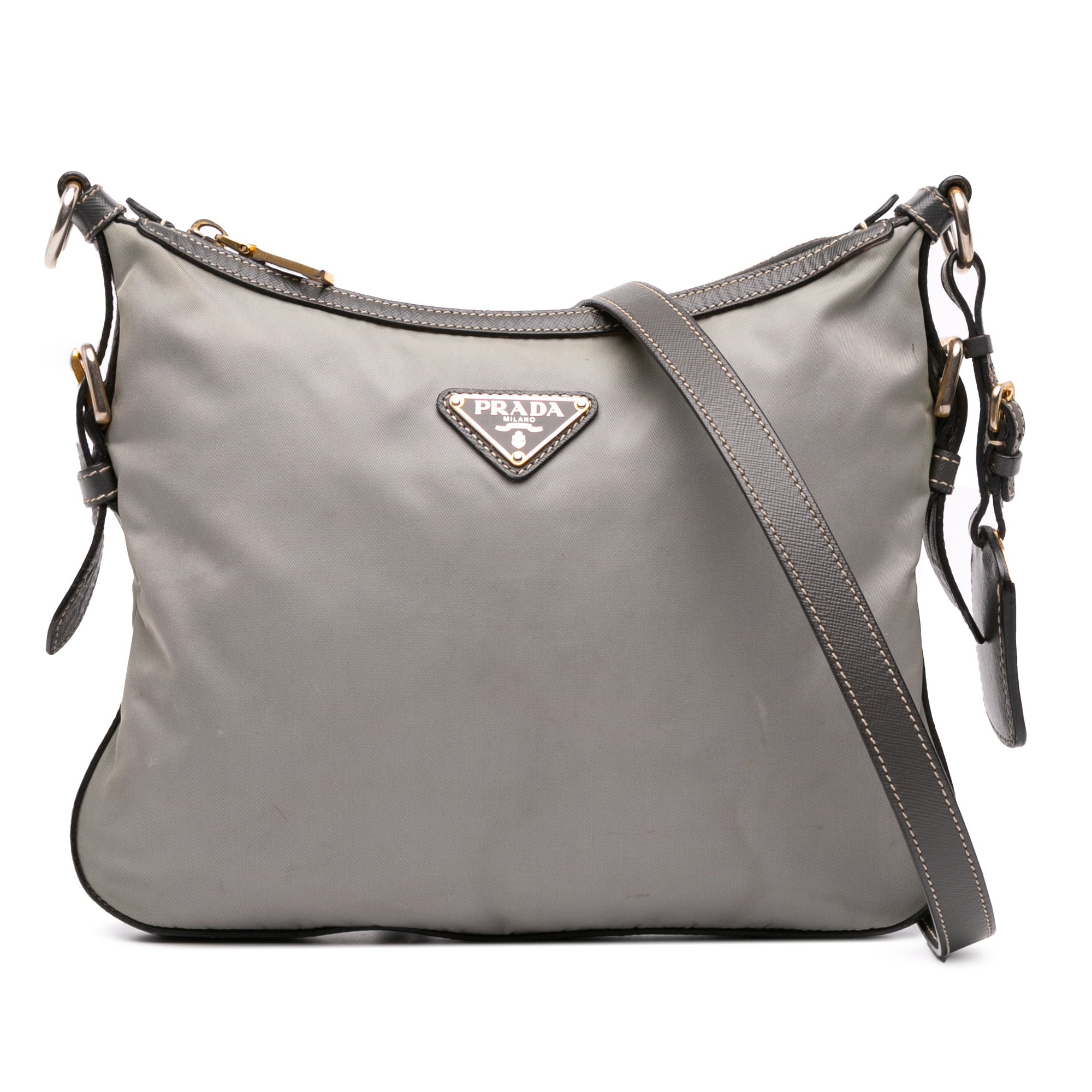 This crossbody bag features a nylon body, a flat shoulder strap, a top zip closure, and an interior zip pocket. Retail Price: 700.00