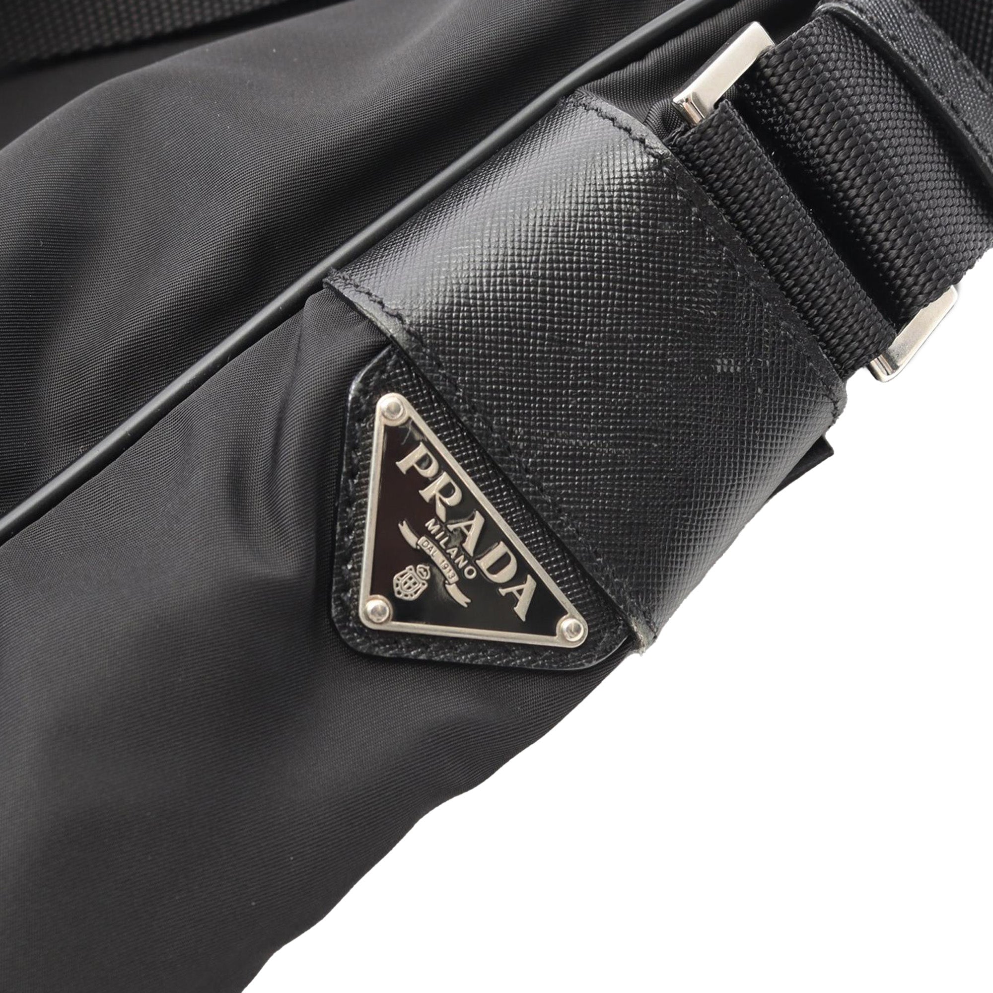 Prada Saffiano Trimmed Tessuto Zip Top Crossbody