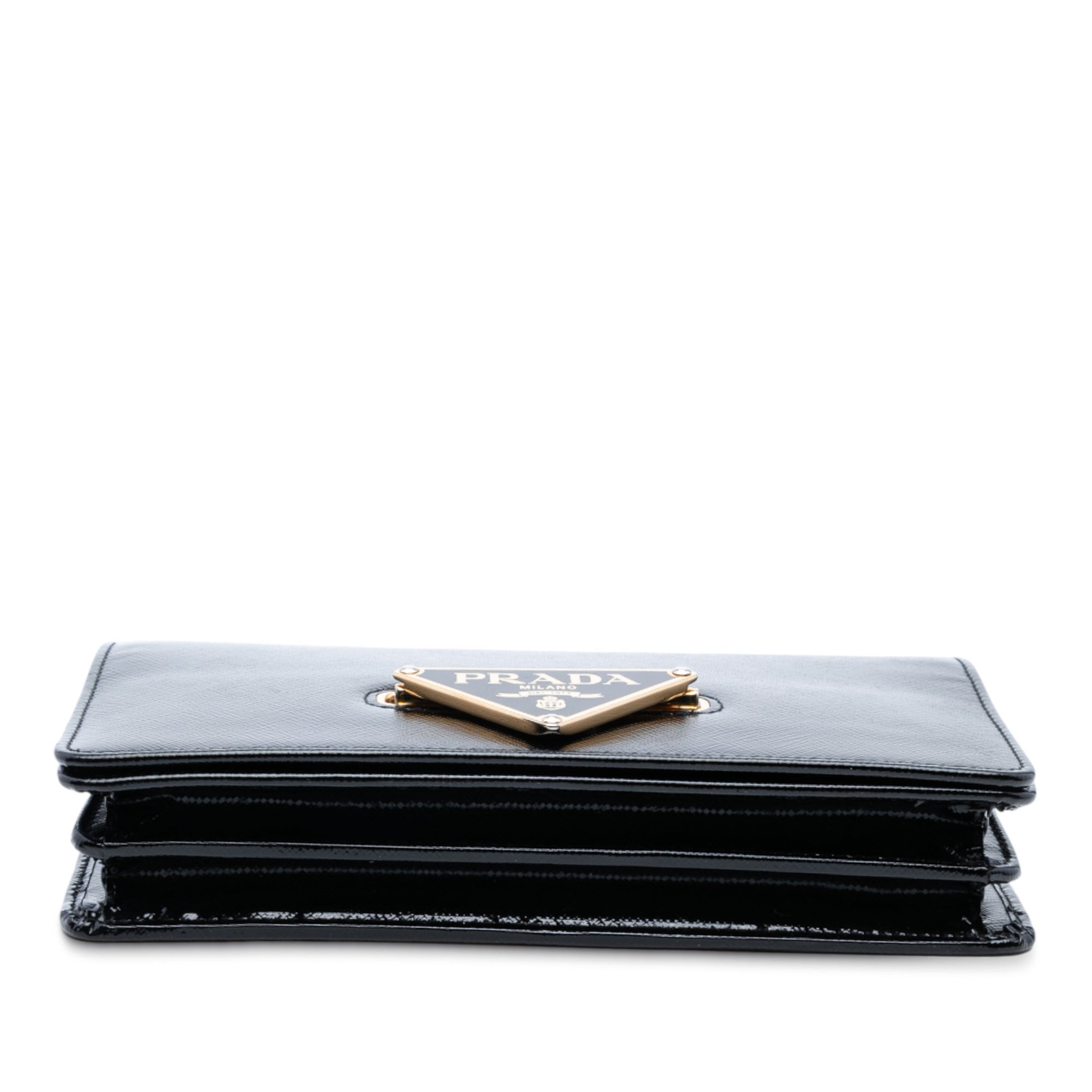 Prada Saffiano Vernice Flip Lock Wallet on Chain Clutch