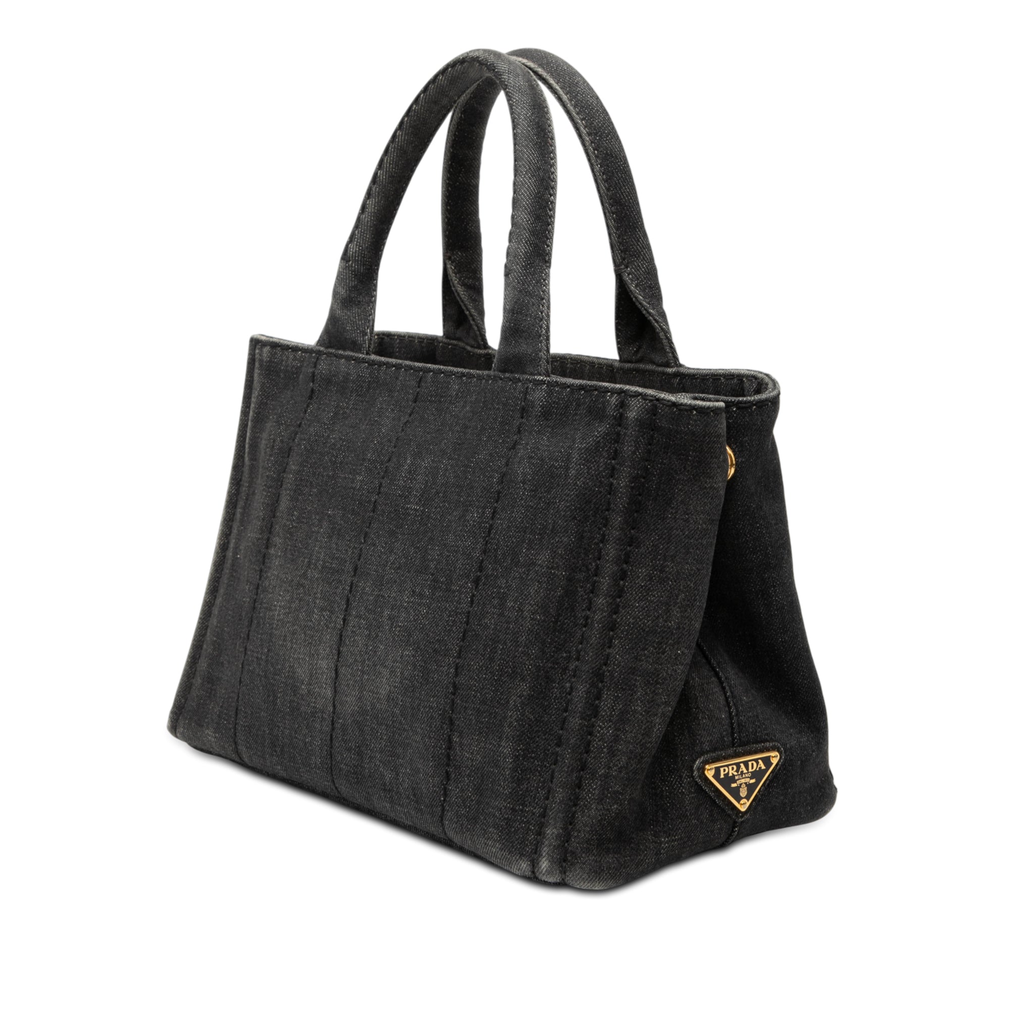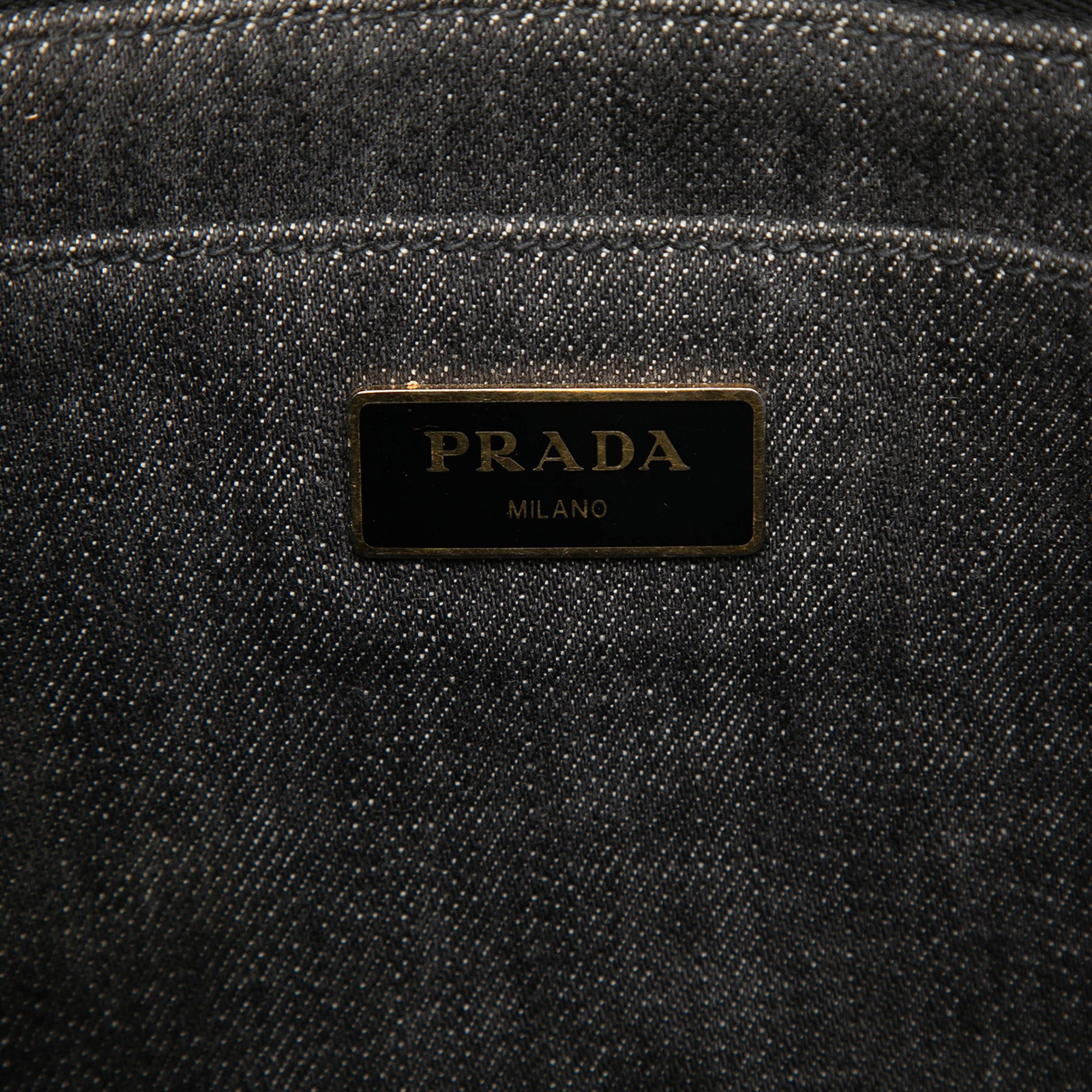 This satchel features a denim body, rolled handles, detachable flat strap, an open top, and interior zip and slip pockets. Retail Price: 1235.00