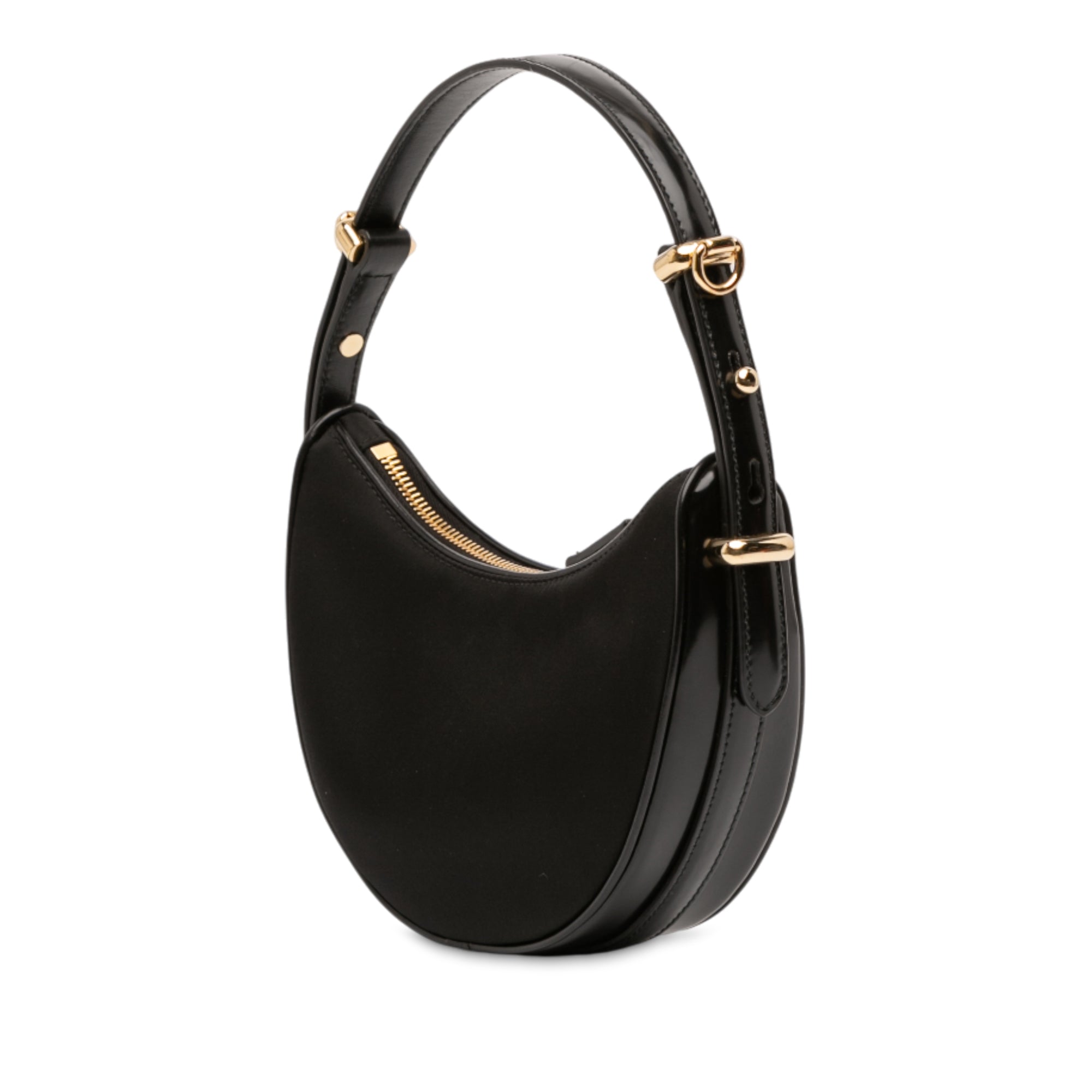 This satchel features a nylon and leather body, an adjustable flat leather shoulder strap, a detachable flat leather strap, a top zip closure, and an interior slip pocket. Inclusion: Dust bag. Retail Price: 2850.00