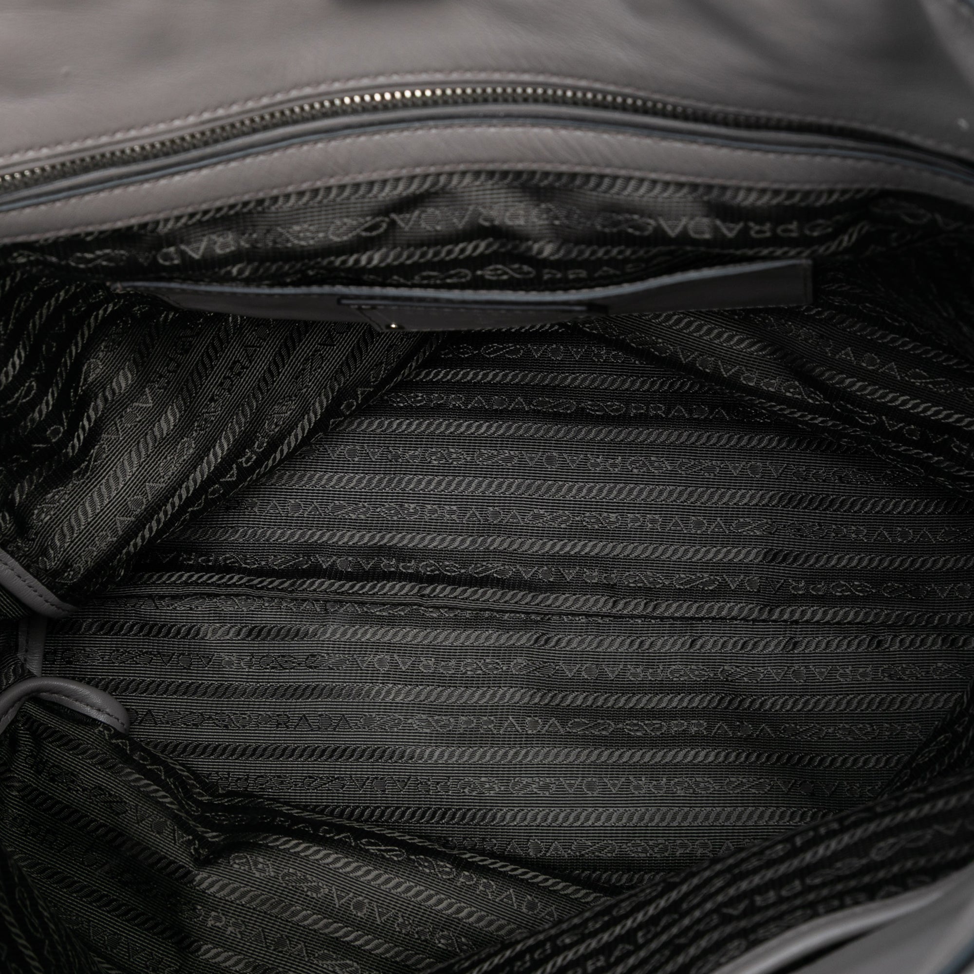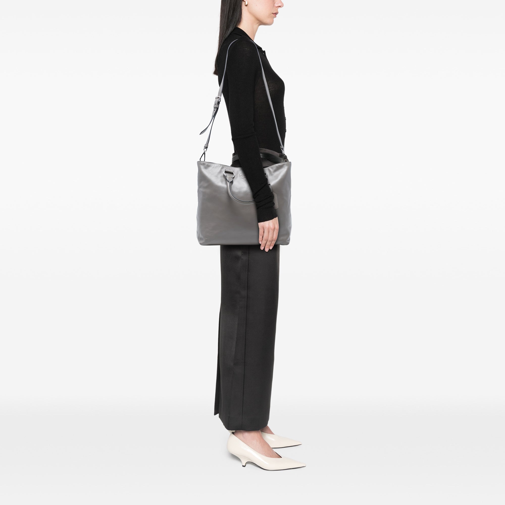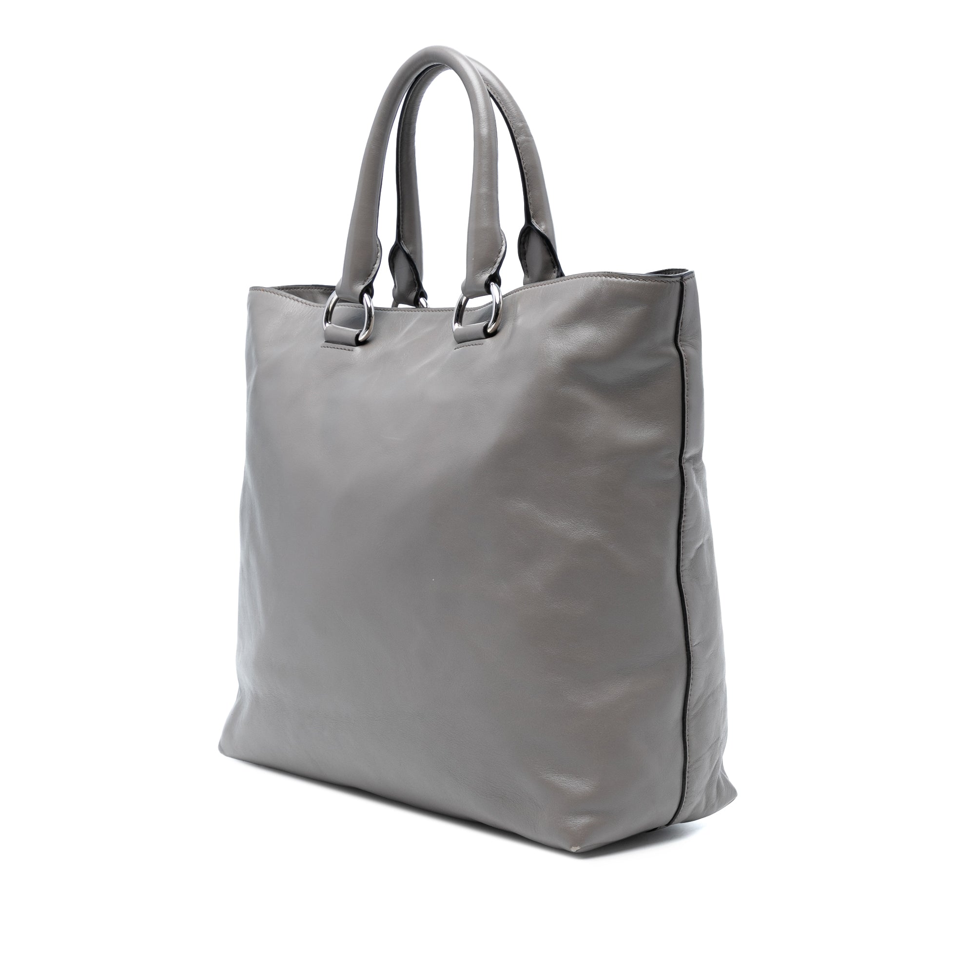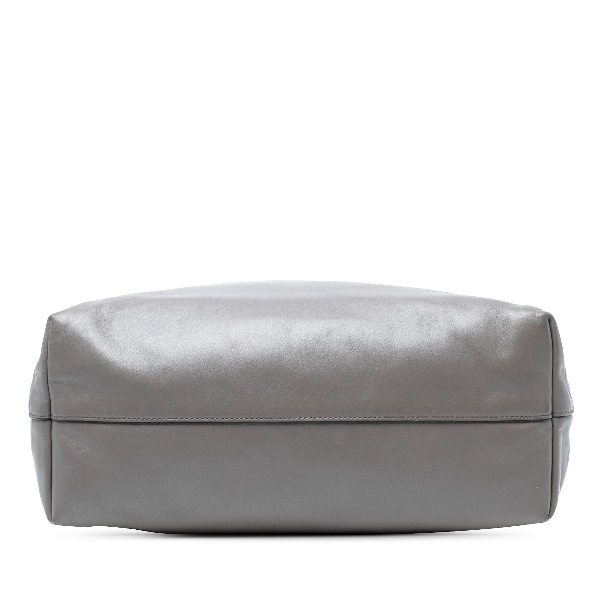 This satchel features a leather body, rolled leather top handles, a detachable and adjustable flat leather shoulder strap, an open top with magnetic snap closure, and interior zip and slip pockets. Retail Price: 1150.00