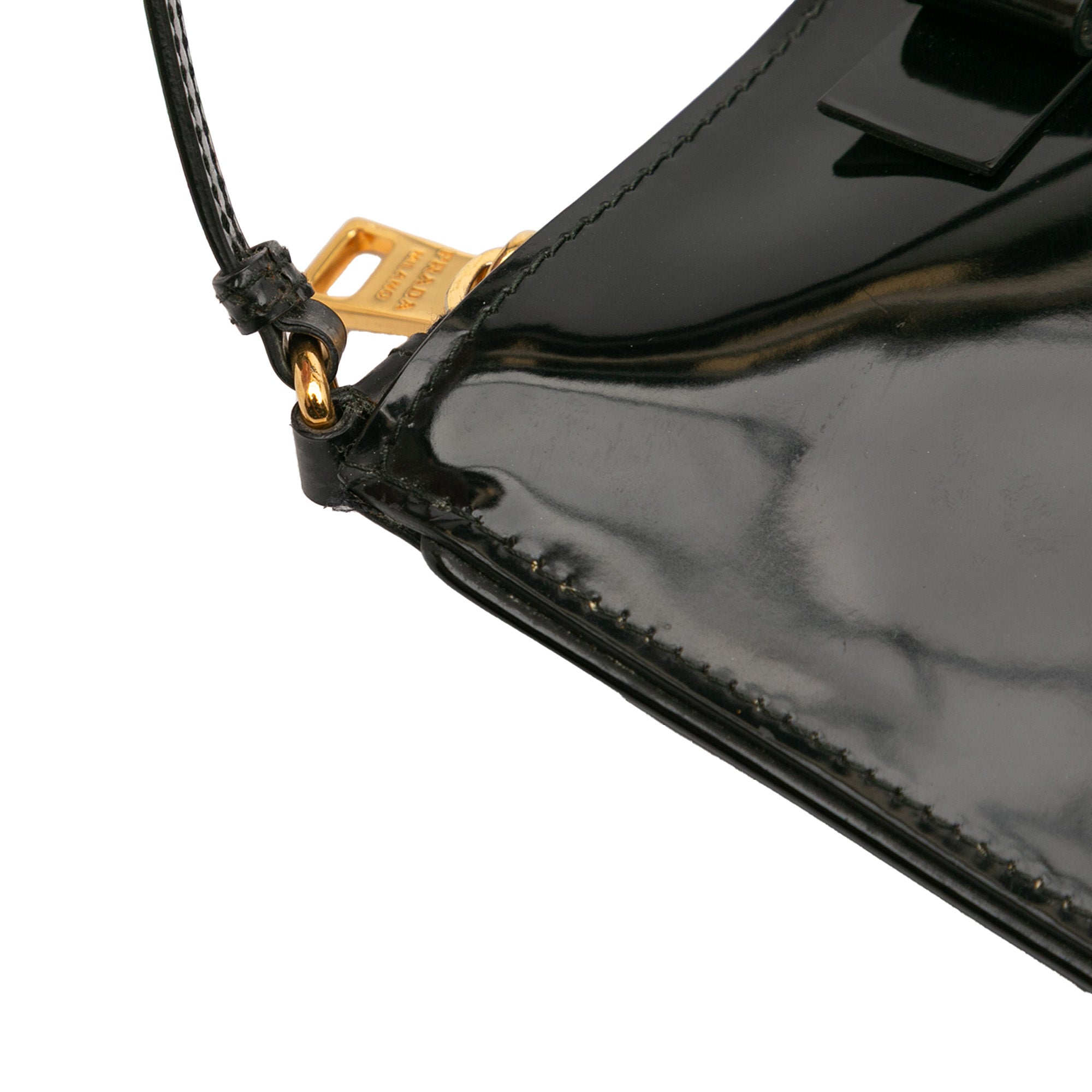 This shoulder bag features a patent leather body with bow detail, a flat leather strap, and a top zip closure. Retail Price: 2520.00