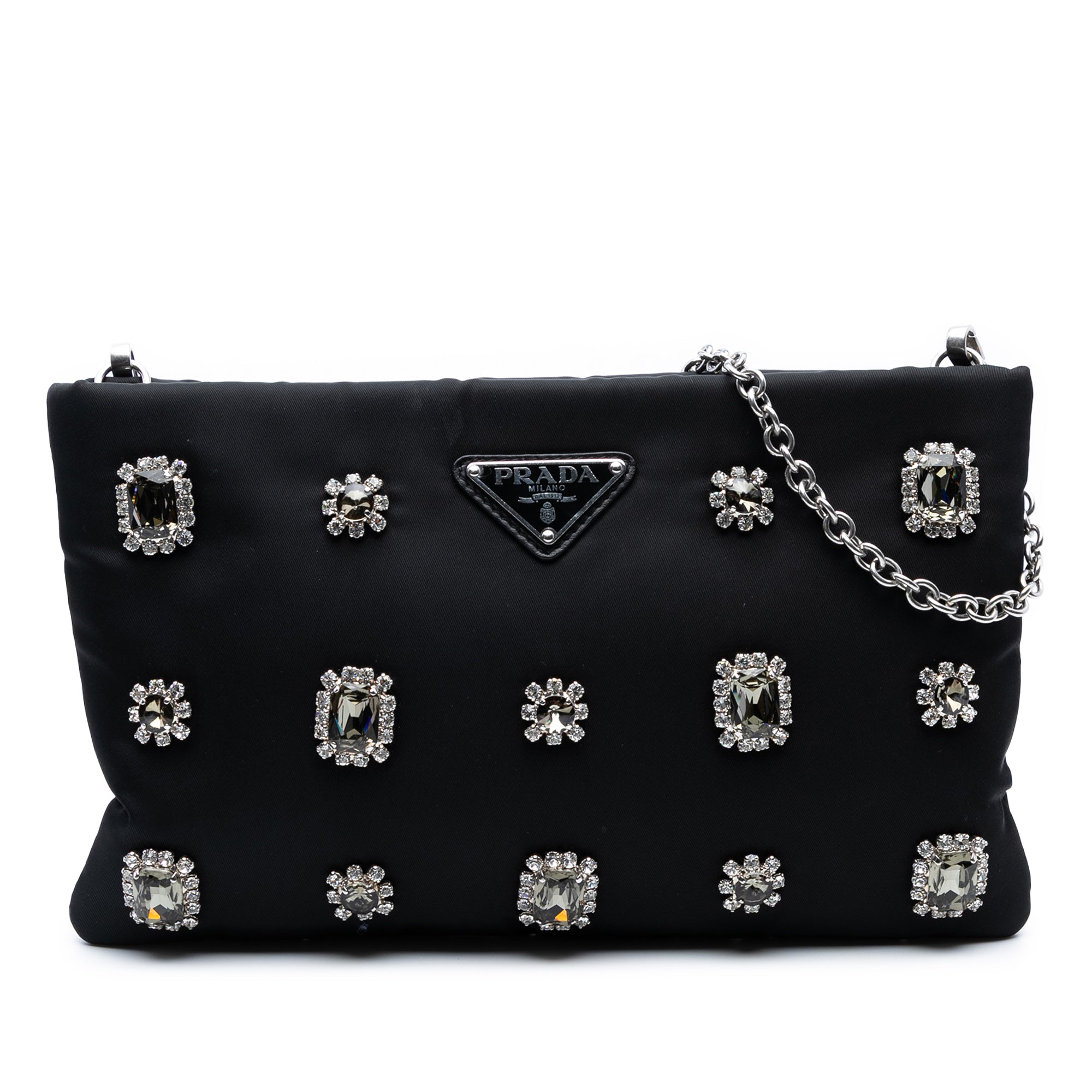 Prada Tessuto Catene Crystal Embellished Chain Crossbody