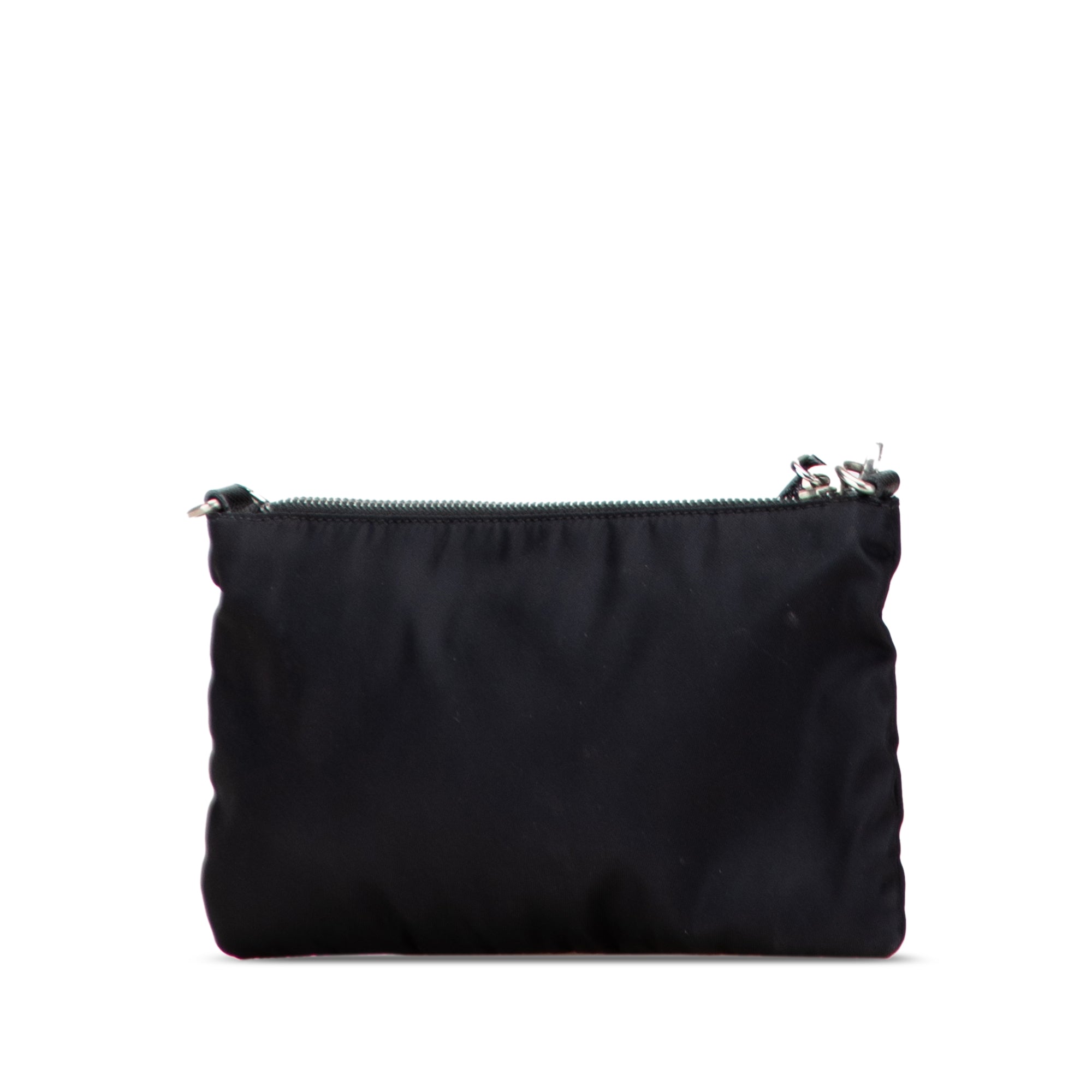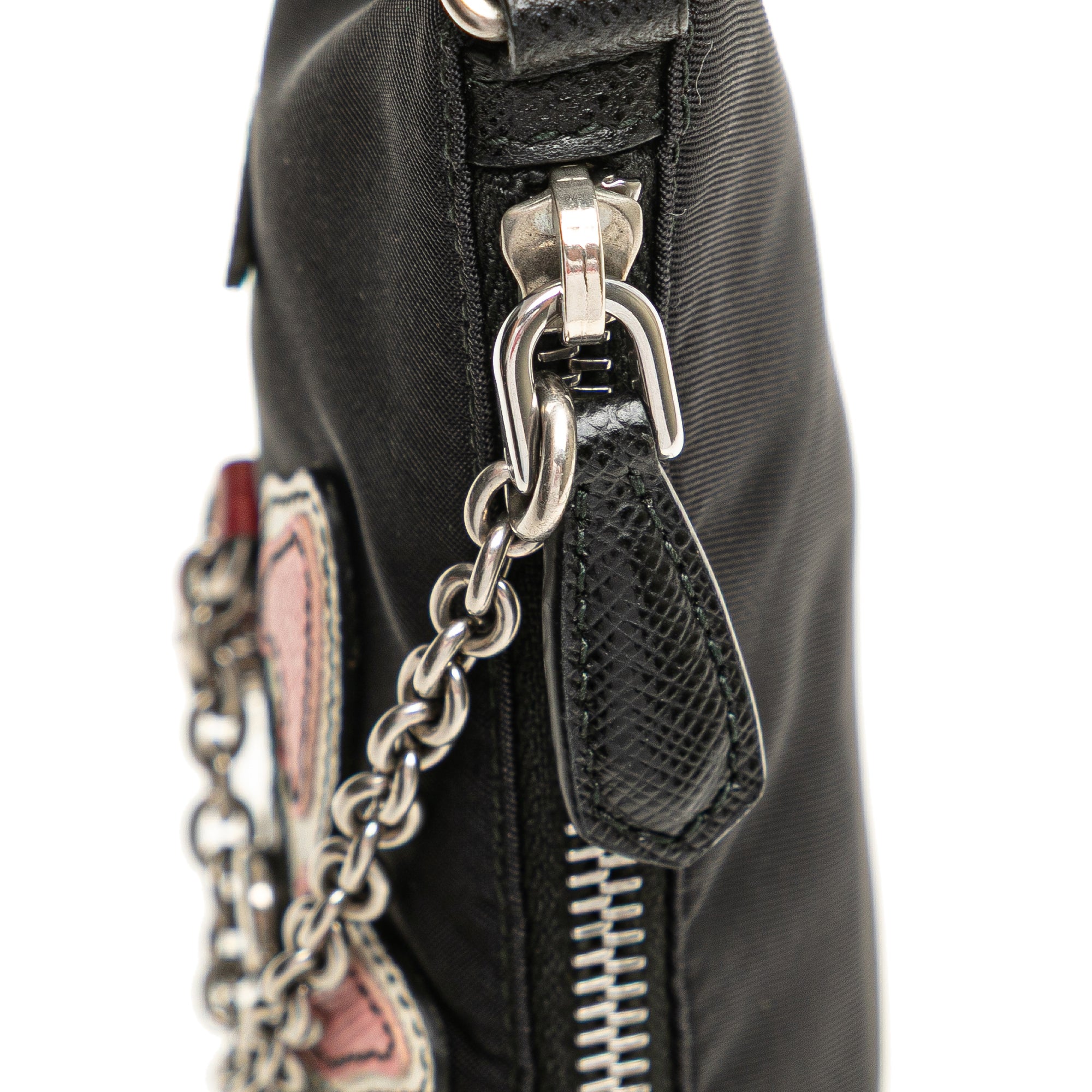 This shoulder bag features a nylon body, a chain shoulder strap, and a top zip closure. Retail Price: 889.00