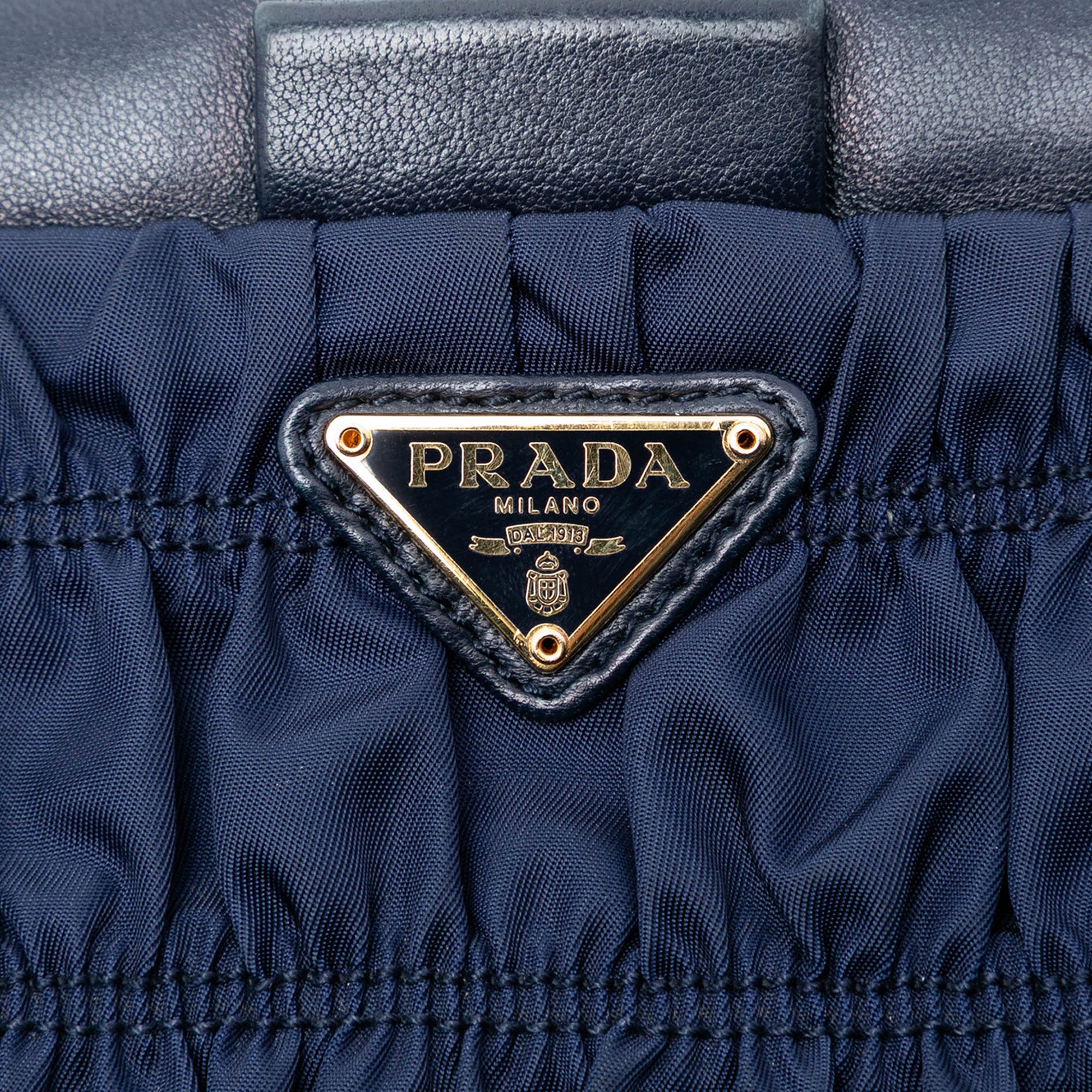 This crossbody bag features a nylon body with leather trim, flat leather strap, a top zip closure, and interior zip and slip pockets. Retail Price: 1665.00