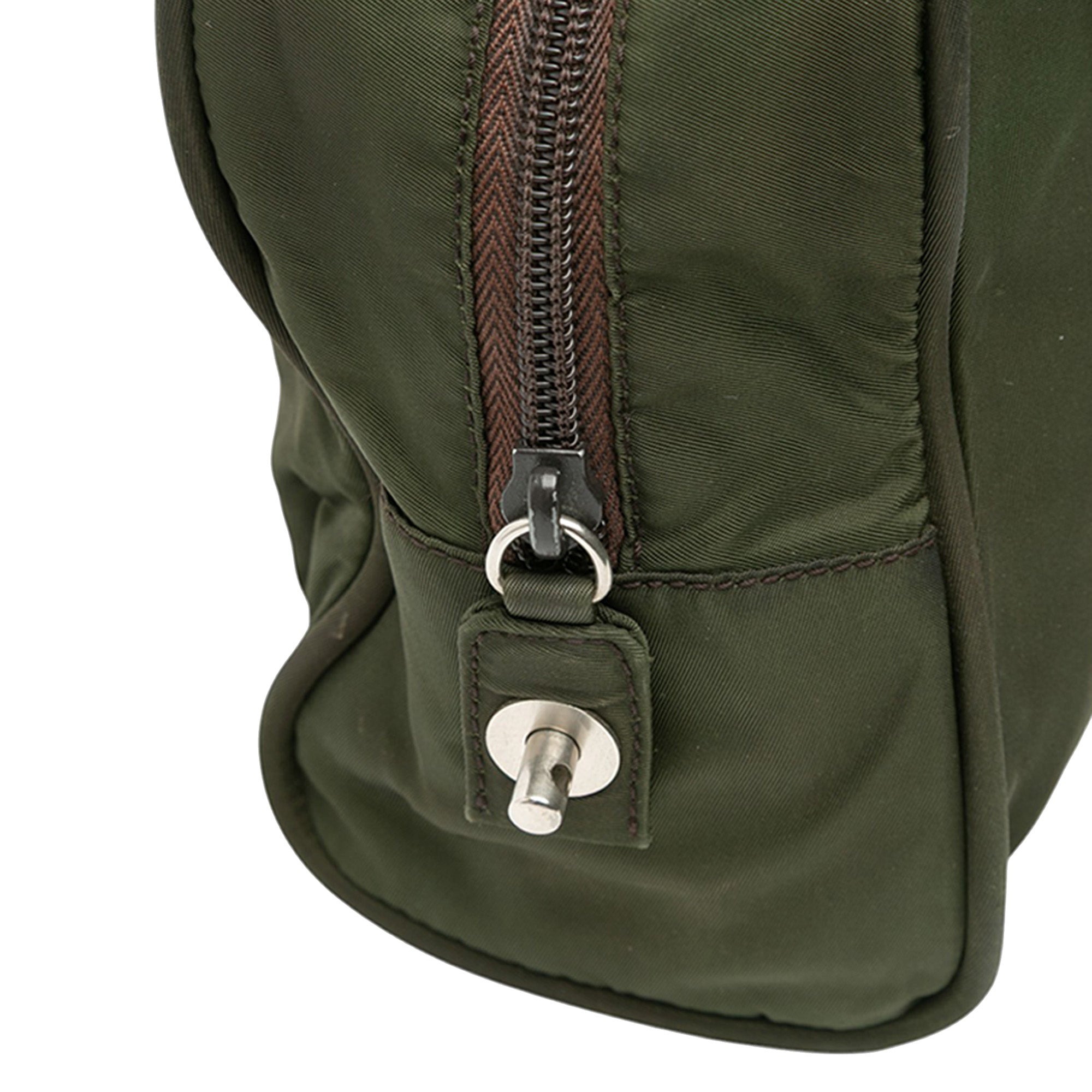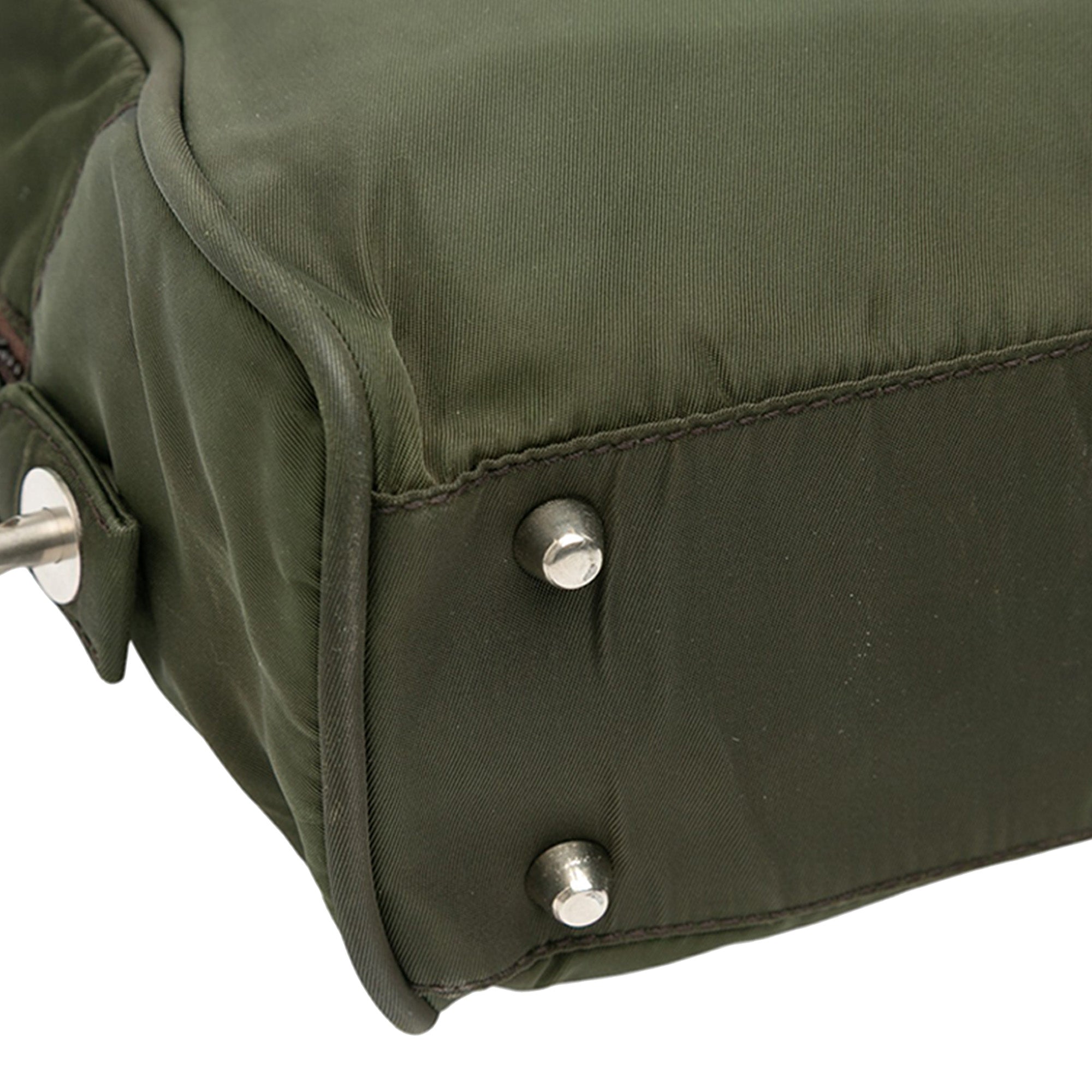 This handbag features a nylon body, flat handles, a top zip closure, and an interior zip pocket. Retail Price: 700.00