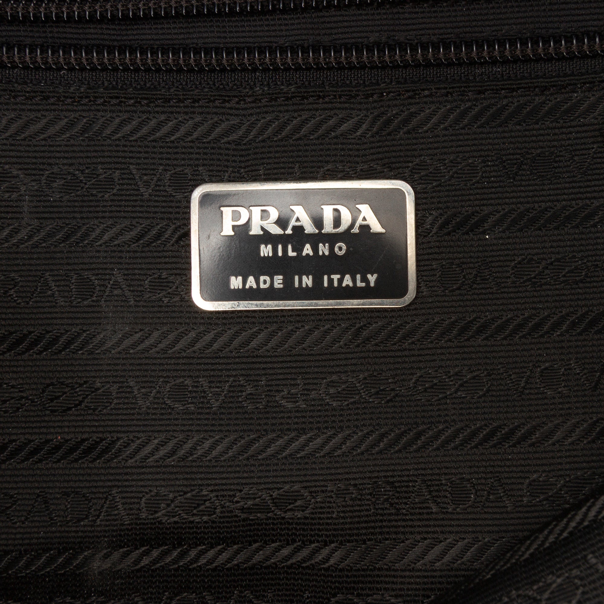 This handbag features a nylon body, flat nylon handles, a top zip closure, a zip around compartment, and an interior zip pocket. Retail Price: 680.00