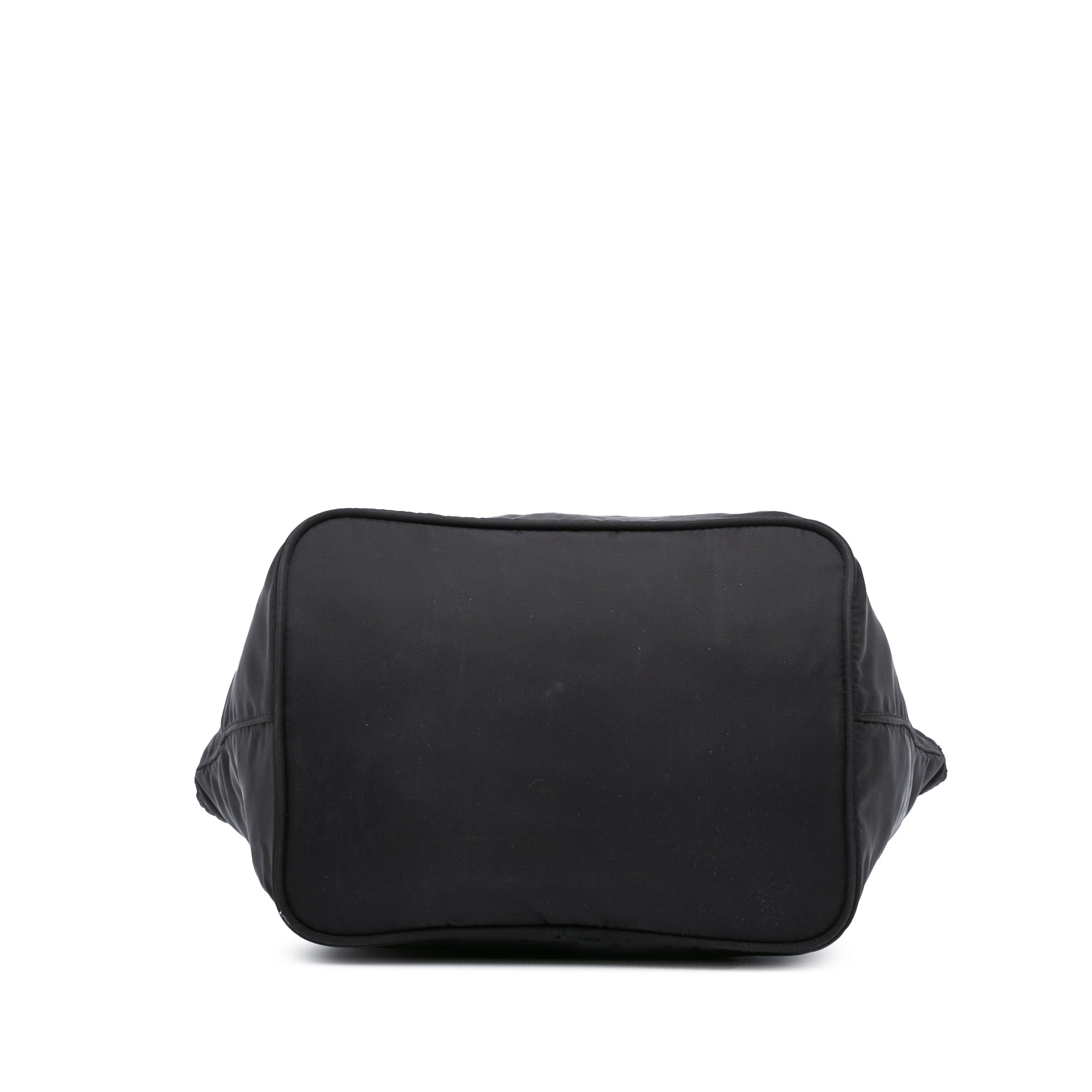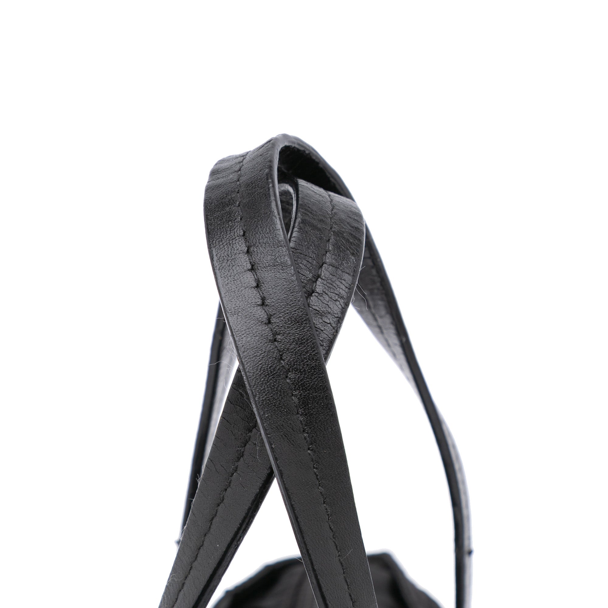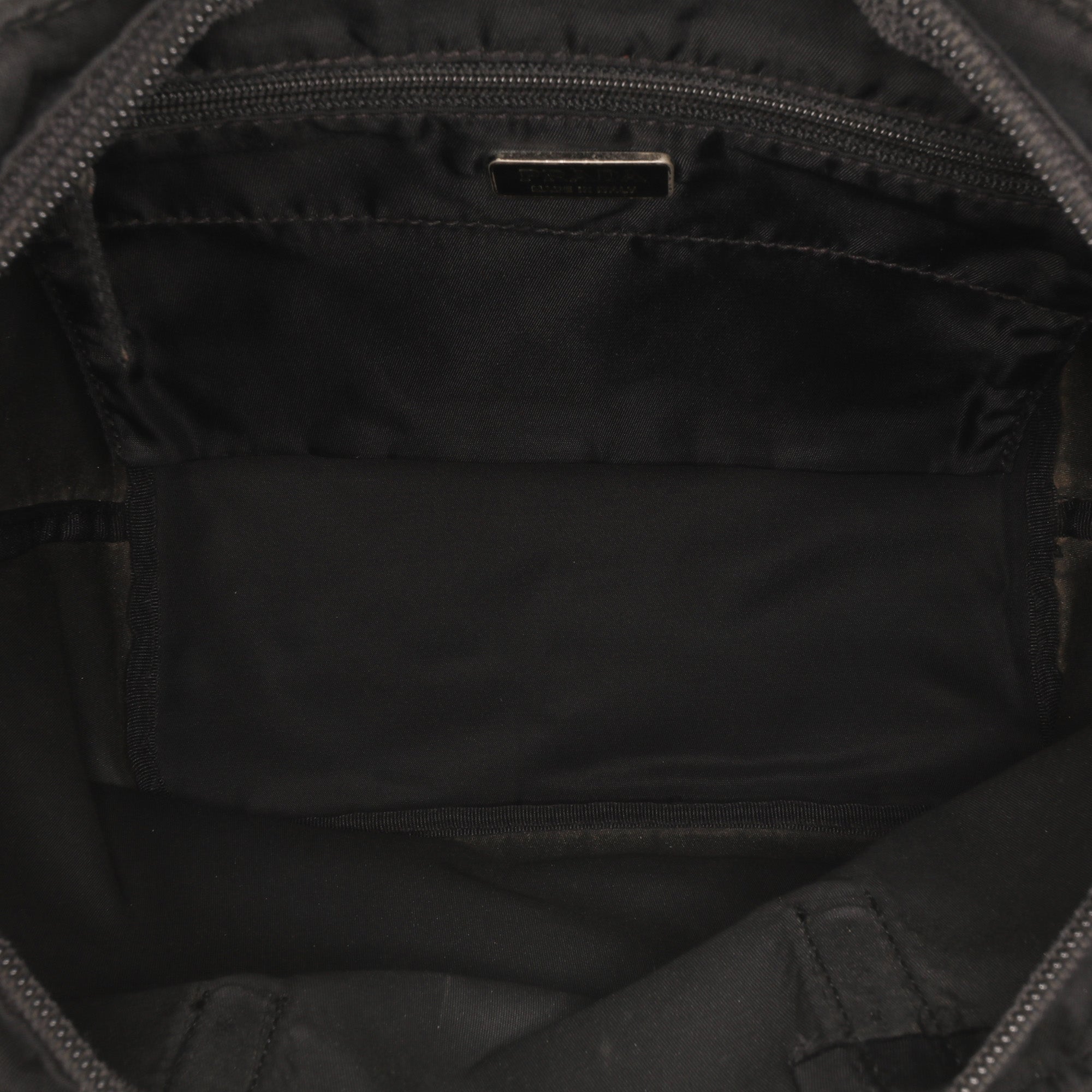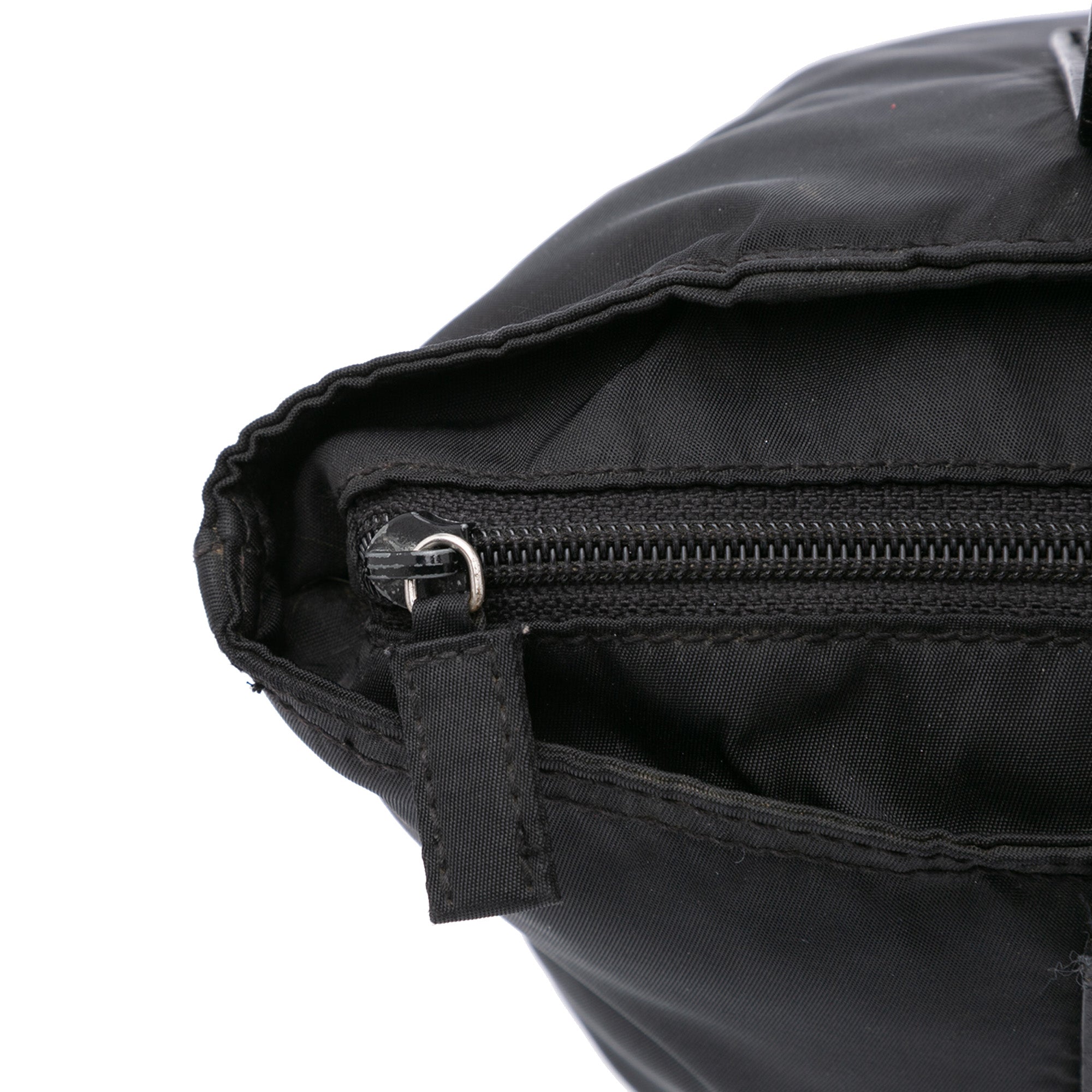 This handbag features a nylon body, flat leather handles, a top zip closure, and an interior zip pocket. Retail Price: 450.00