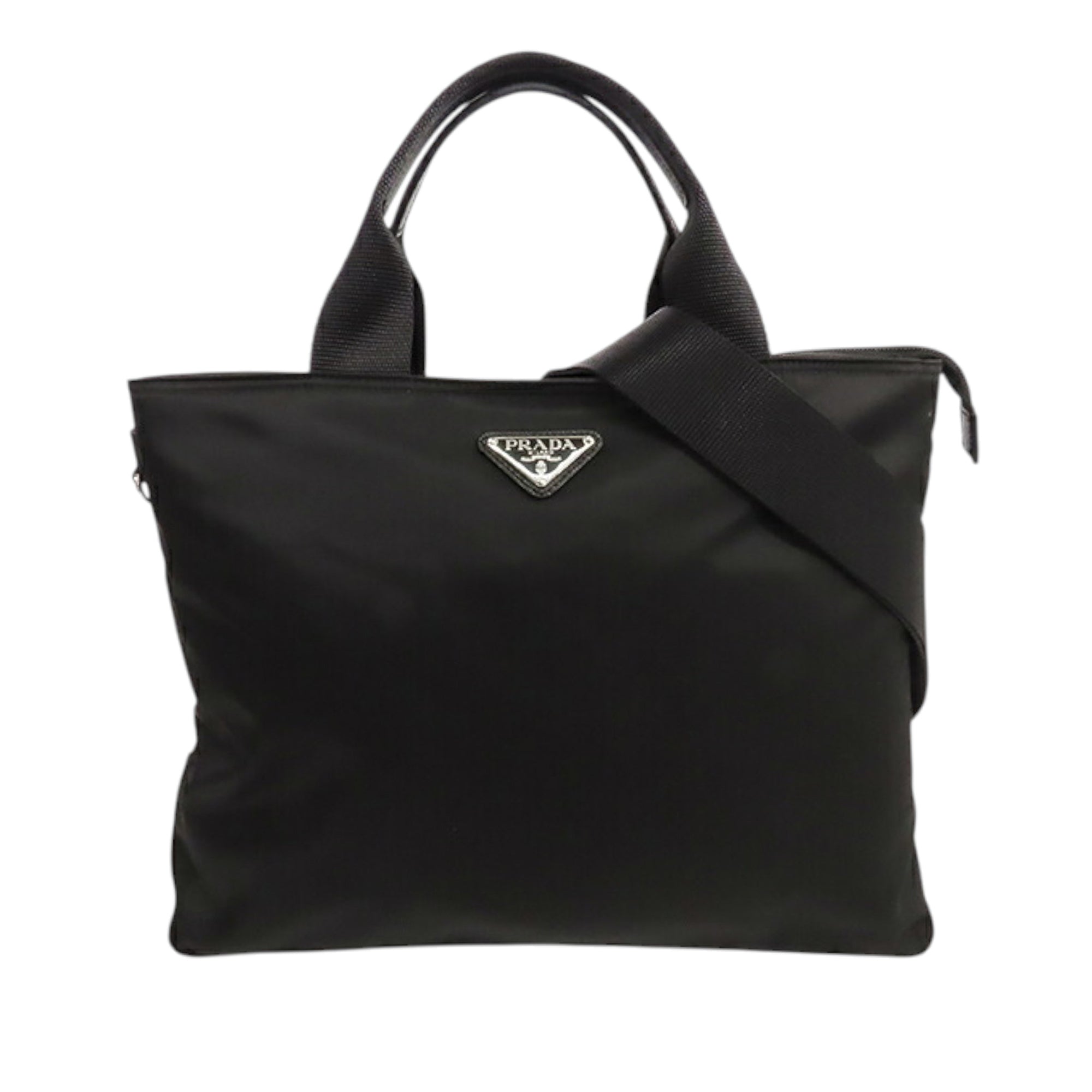 This satchel features a nylon body, flat handles, detachable flat strap, a top zip closure, and an interior slip pocket. Retail Price: 1525.00