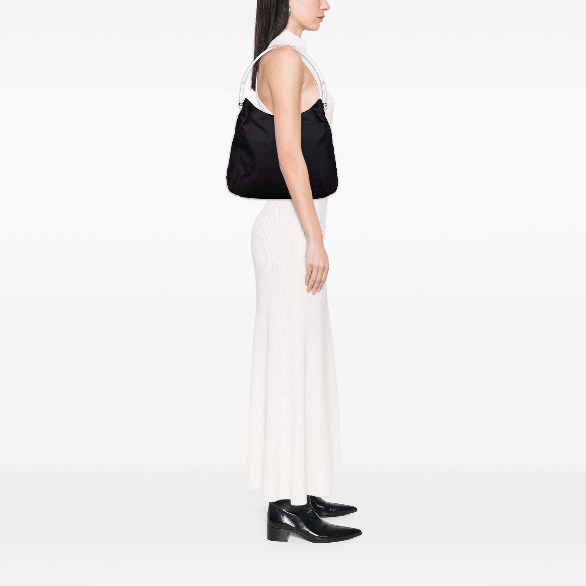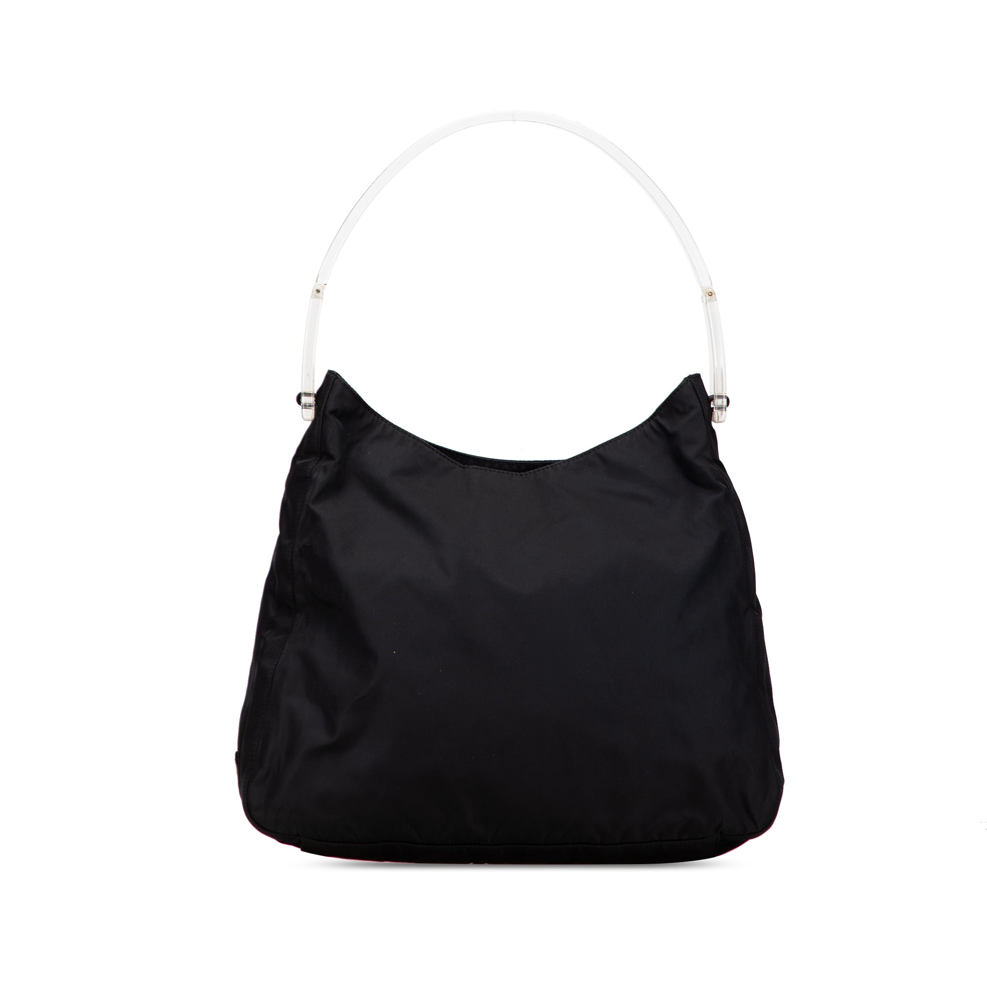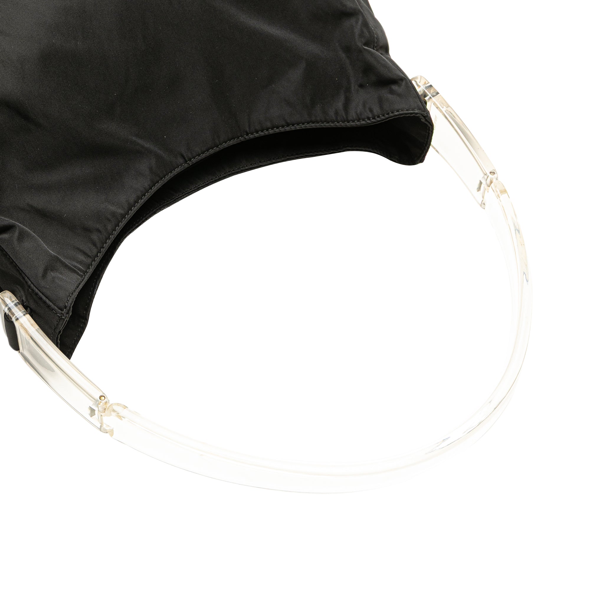 This tote features a nylon body, an acrylic handle, an open top with touch fasteners, and an interior zip pocket. Retail Price: 500.00