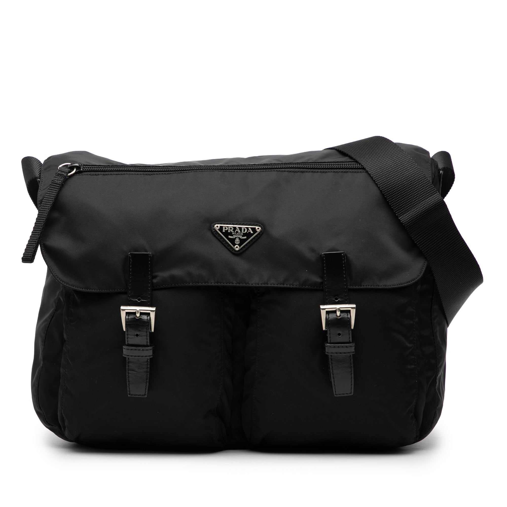 Prada Tessuto Zip Double Buckle Messenger Bag