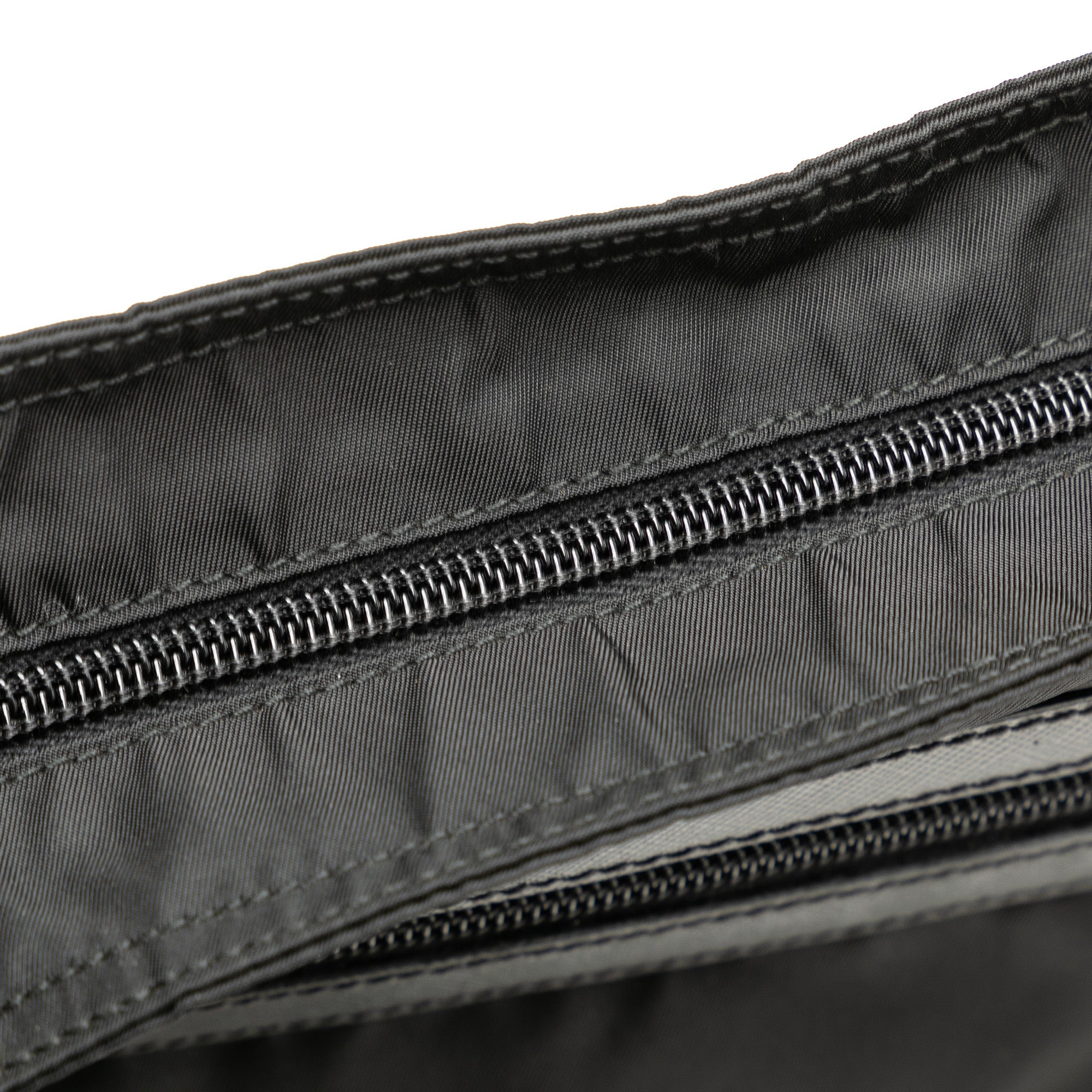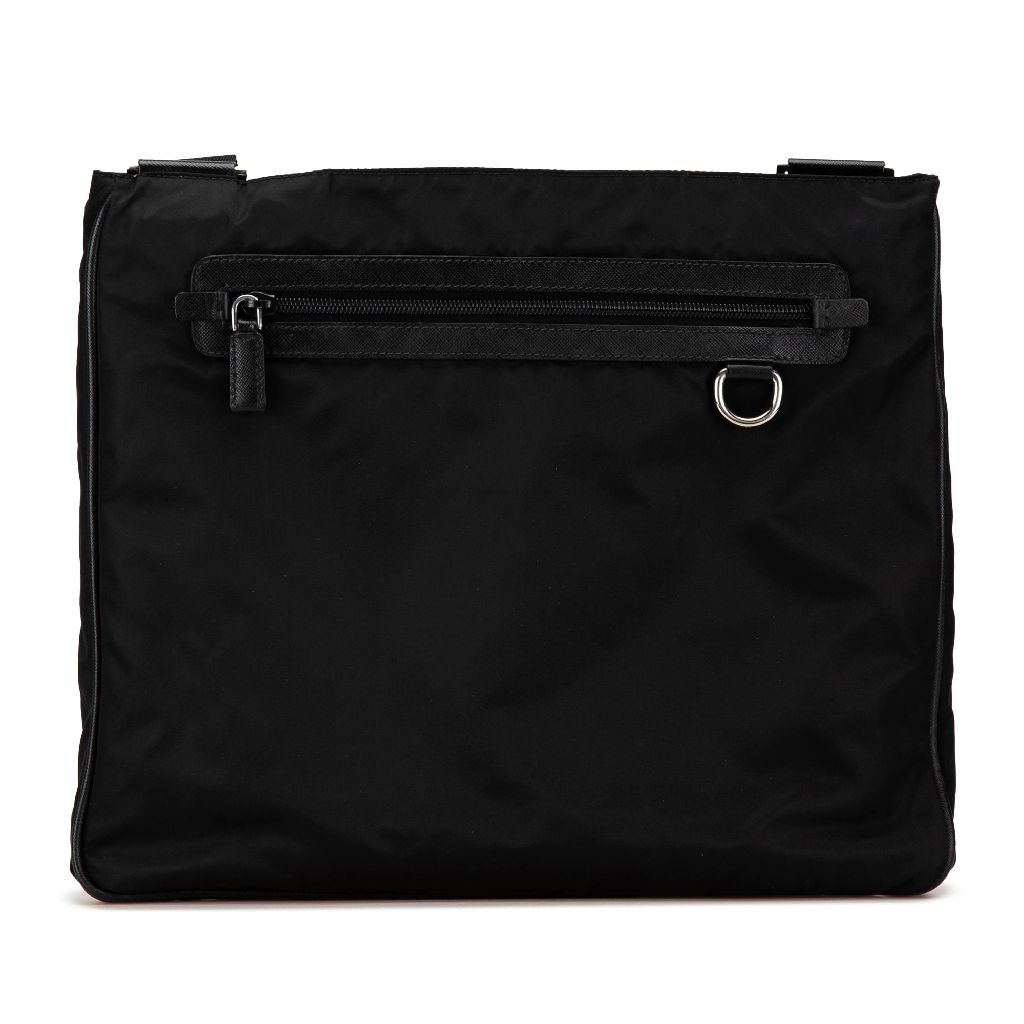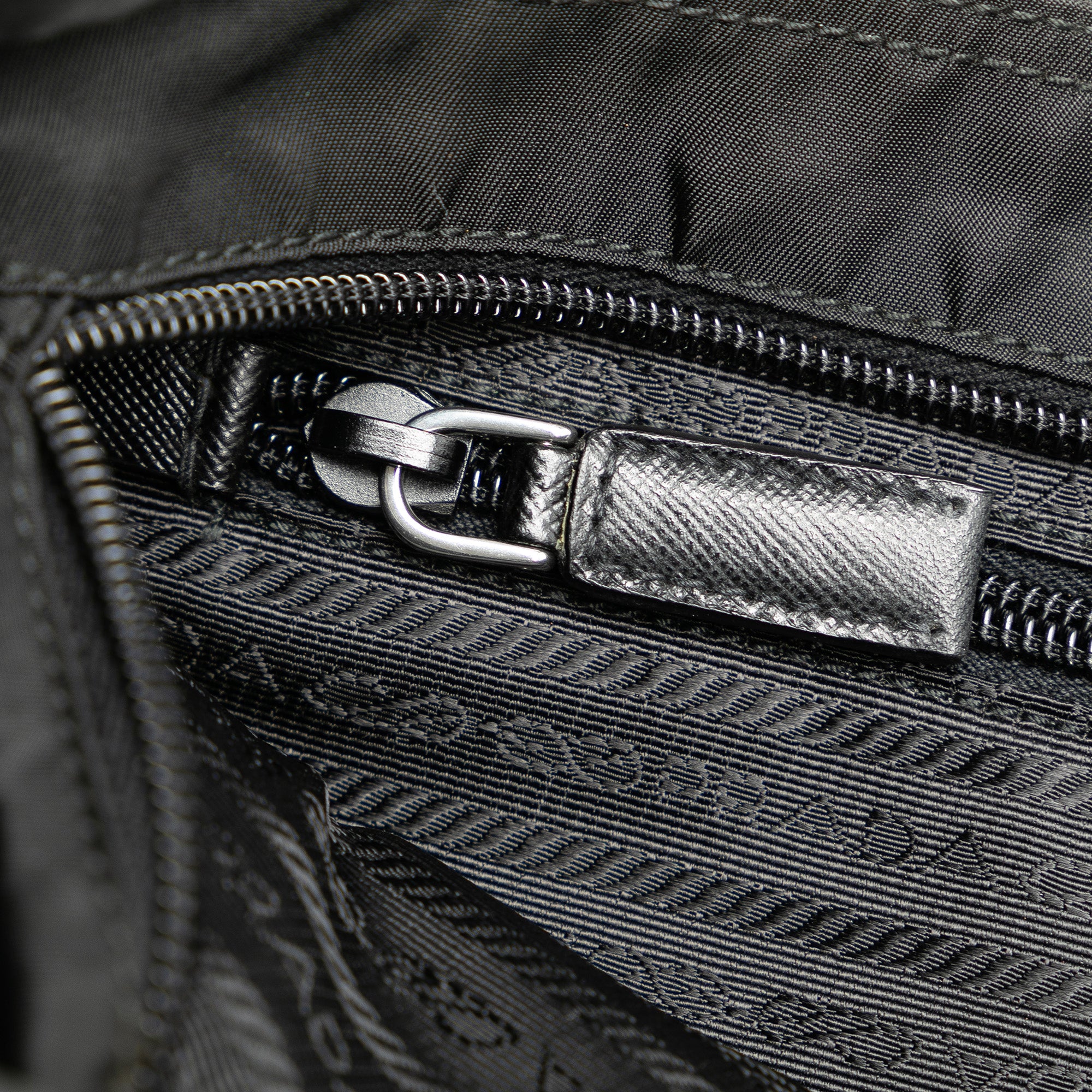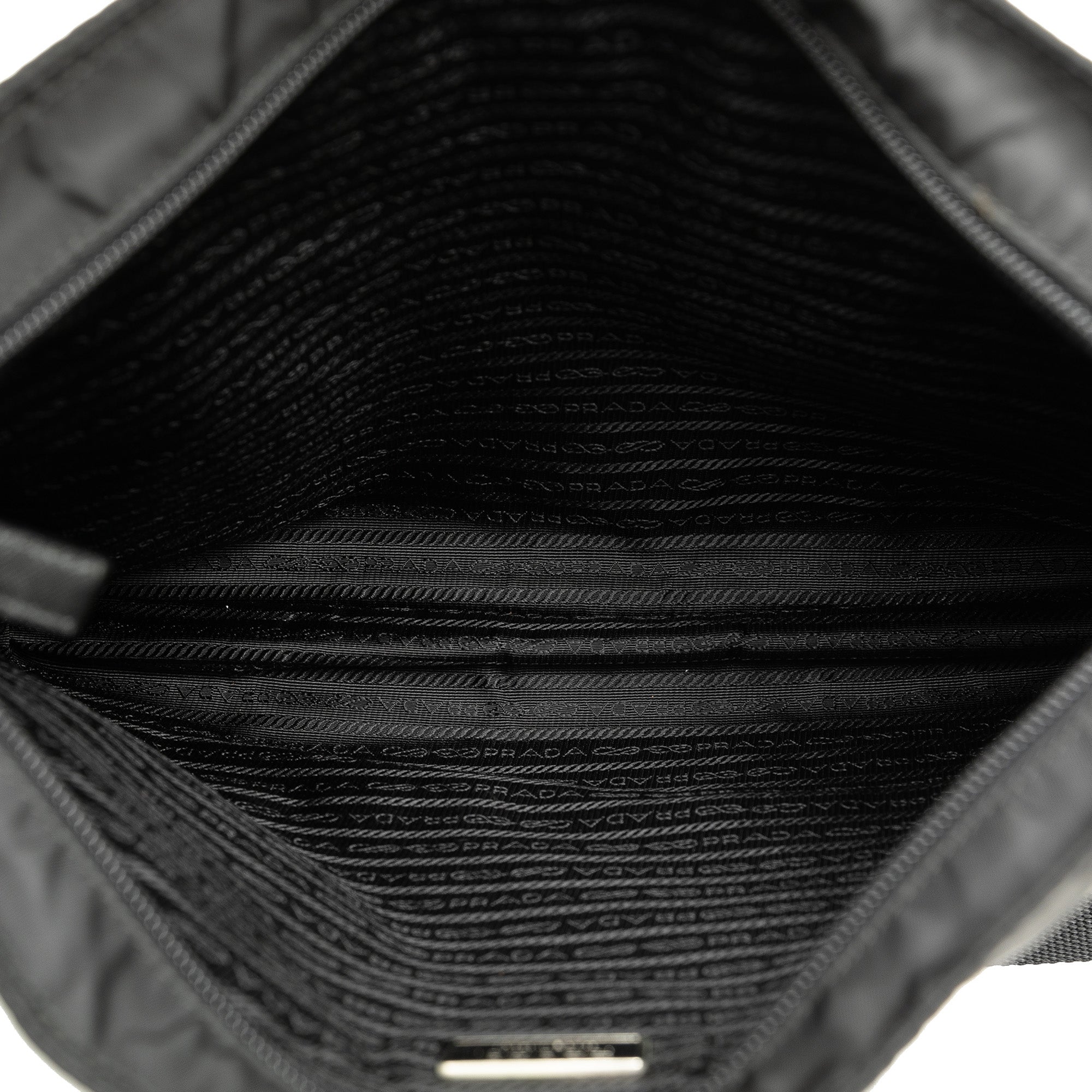 This crossbody bag features a nylon body with leather trim, a flat shoulder strap, an exterior zip pocket, a top zip closure, and an interior zip pocket. Retail Price: 1000.00